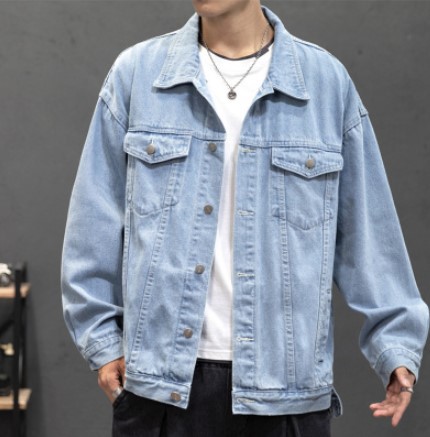 재킷 남자의 2023 대외 무역 봄 남자의 데님 옷 커플 단색 느슨한 재킷 남자와 여자의 캐주얼 데님 재킷스토어 가기