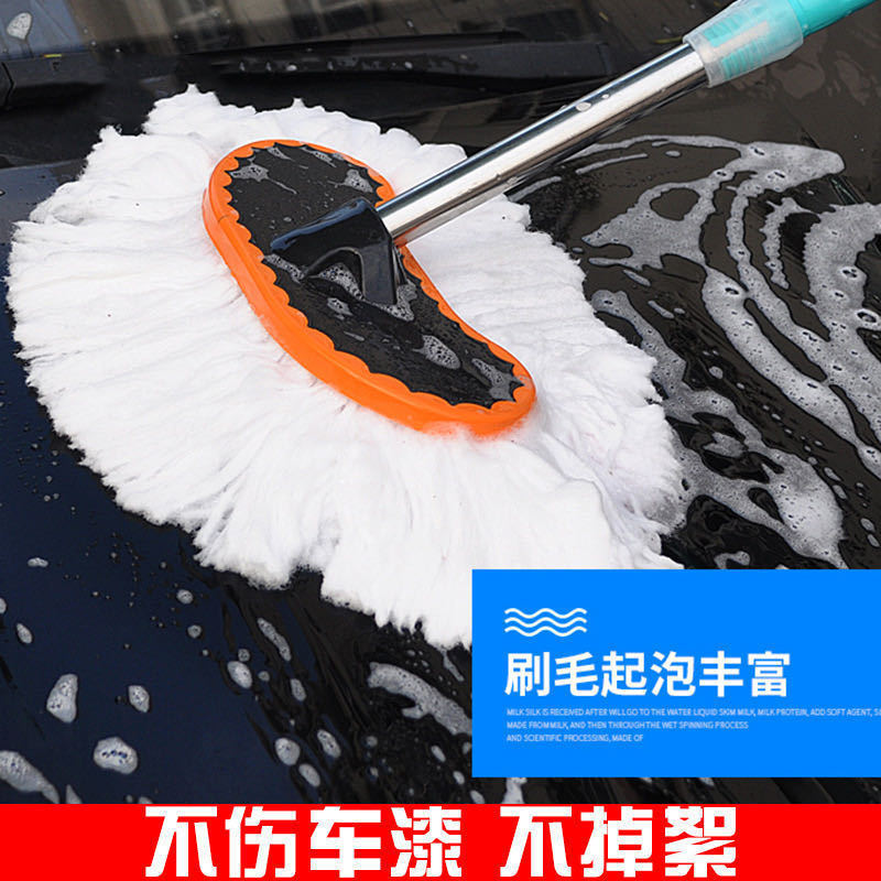 우유 실크 세차 브러시 긴 손잡이 걸레 긴 막대 왁스 드래그 워터 브러시 자동차 청소 도구 천 텔레스코픽 브러시