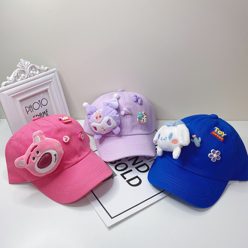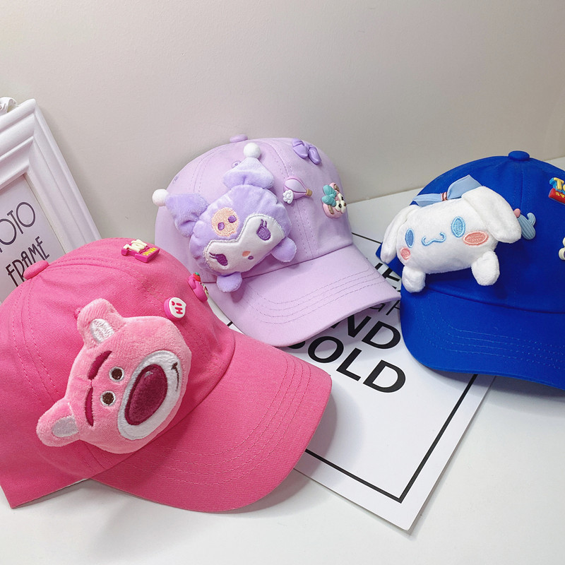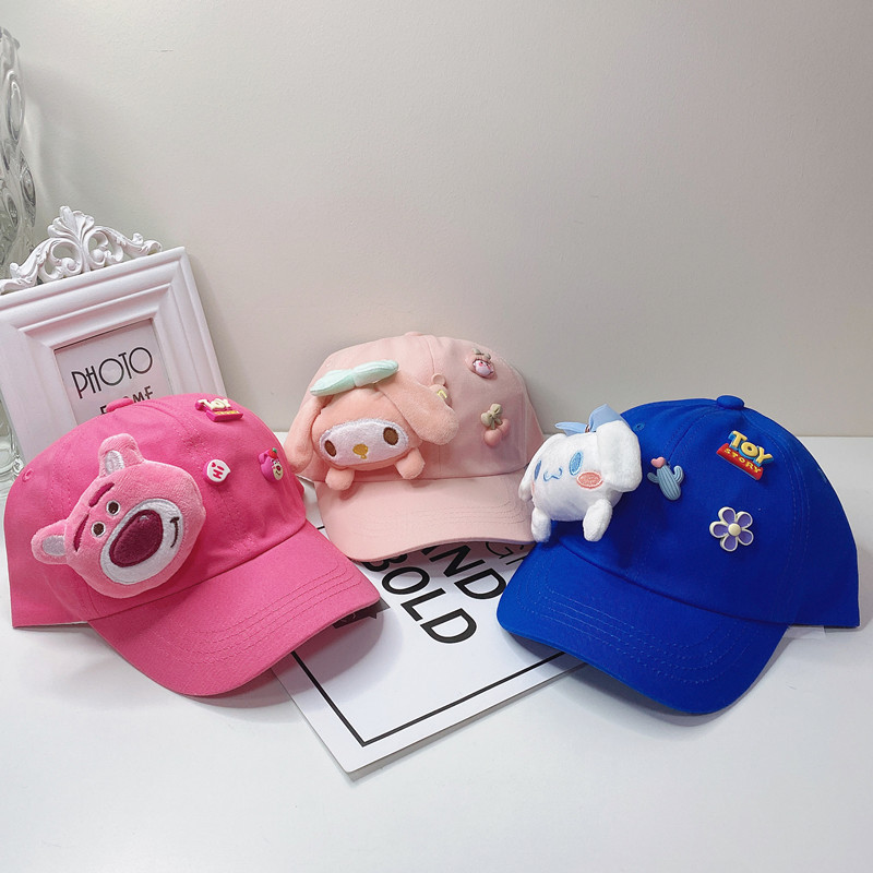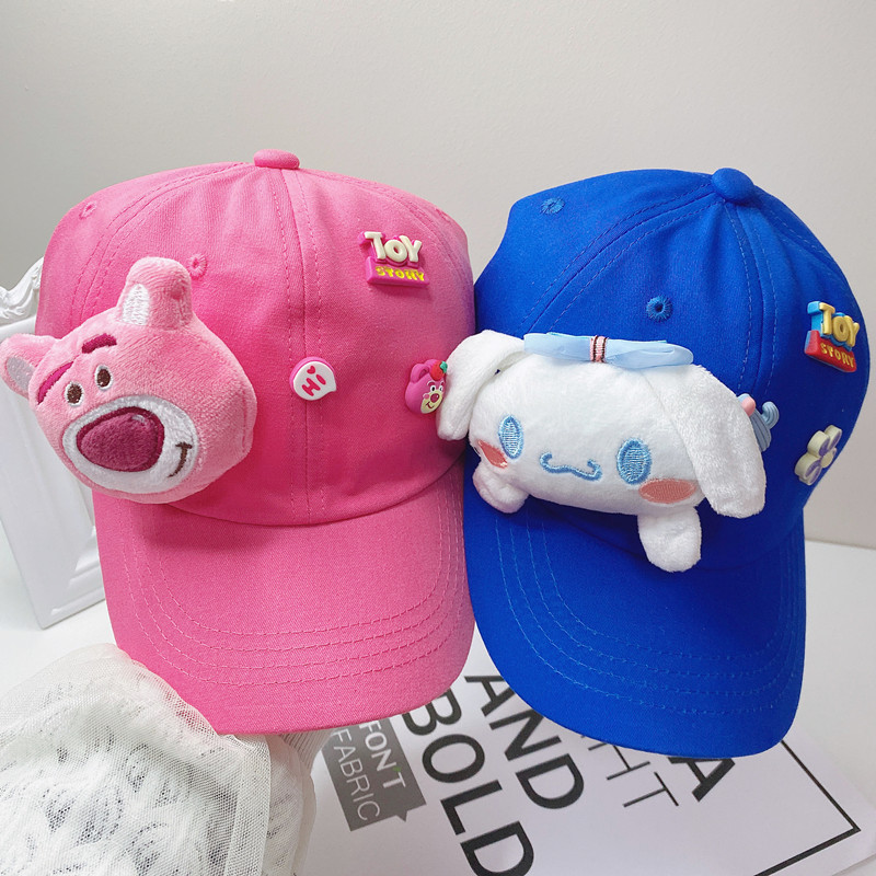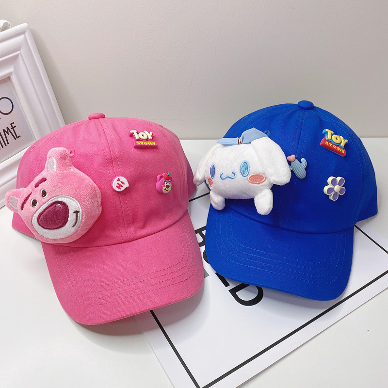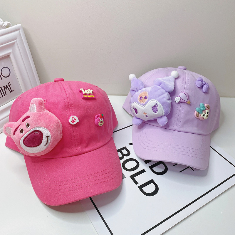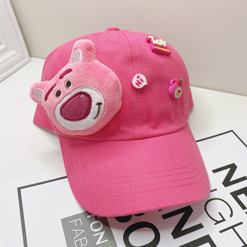 새로운 만화 어린이 모자 한국식 봄 귀여운 만화 딸기 곰 넓은 챙 그늘 캐주얼 야구 모자 여름스토어 가기