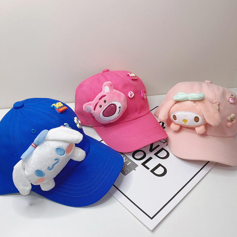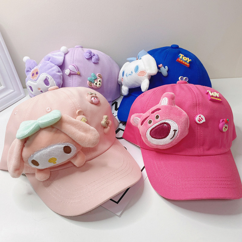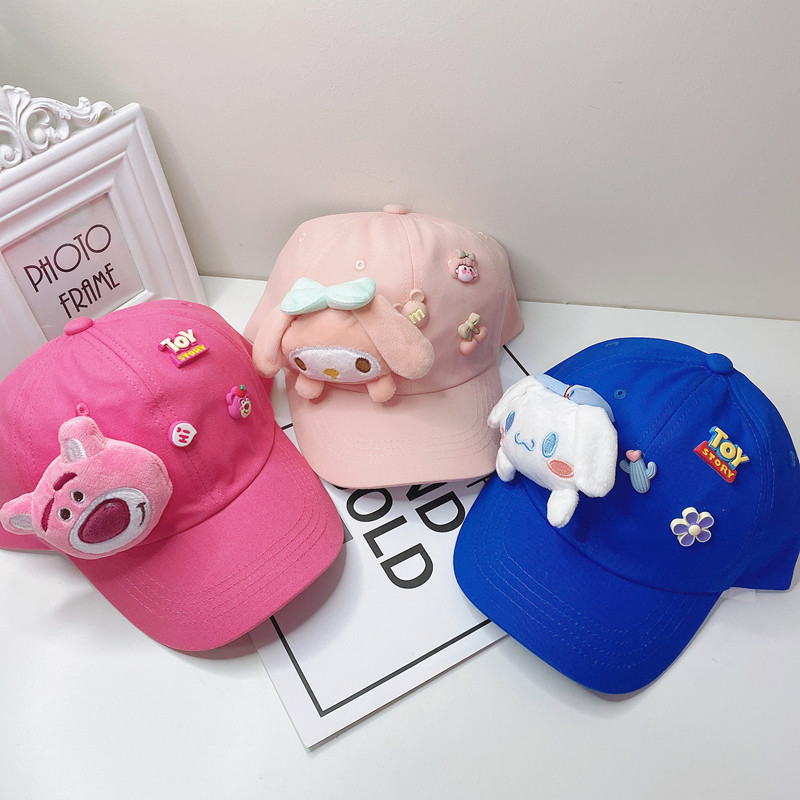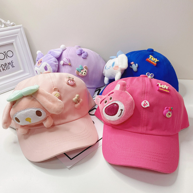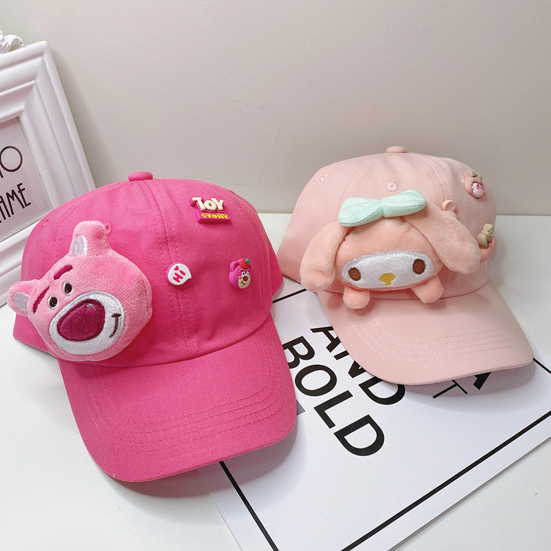 새로운 만화 어린이 모자 한국식 봄 귀여운 만화 딸기 곰 넓은 챙 그늘 캐주얼 야구 모자 여름