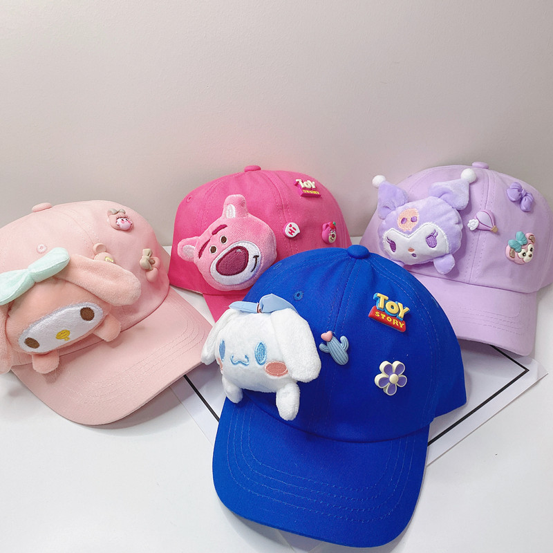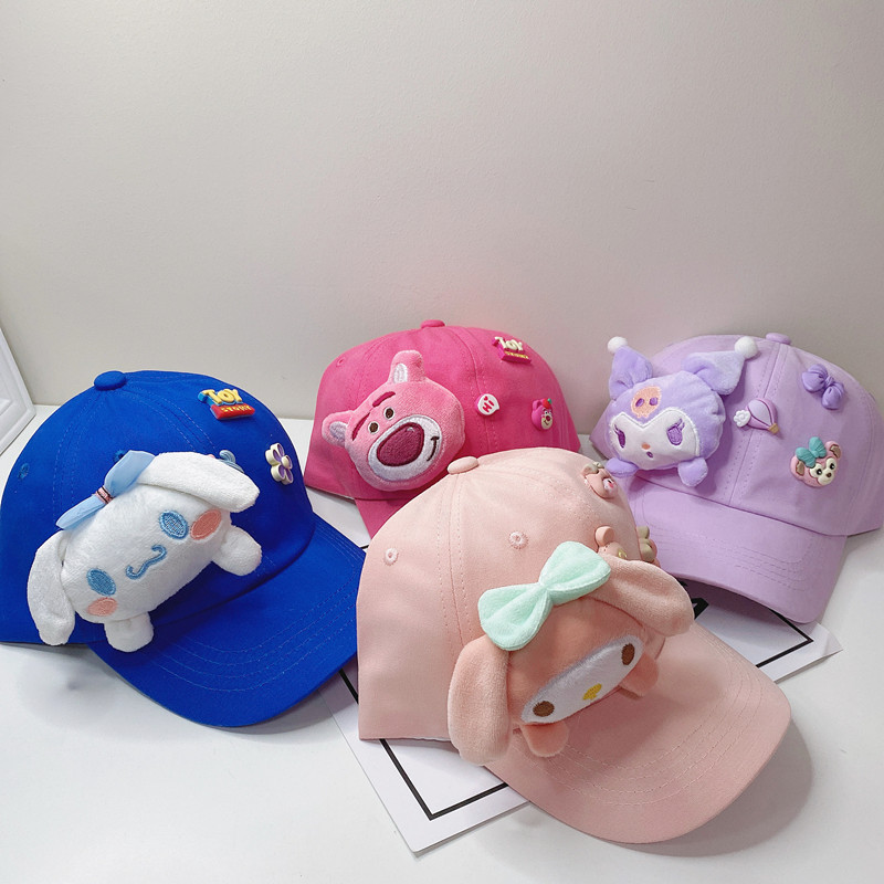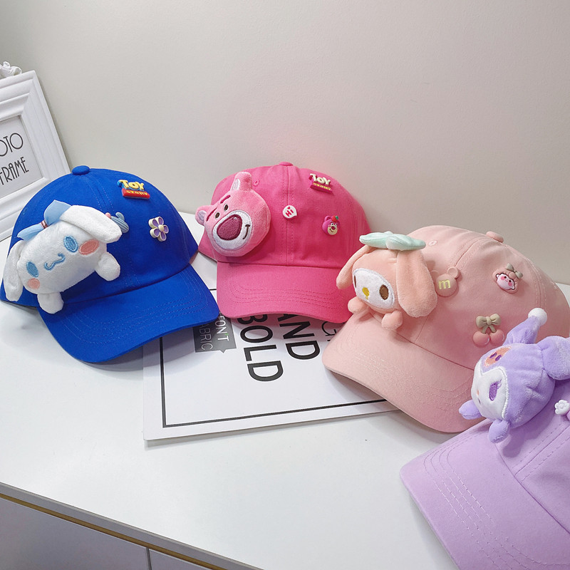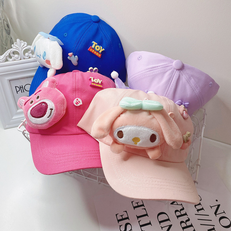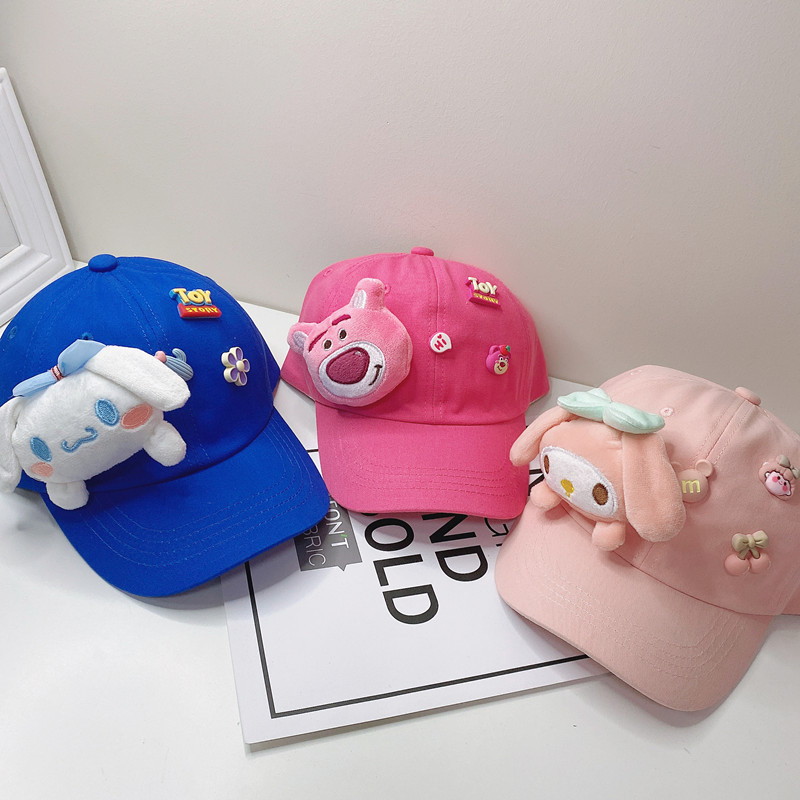 새로운 만화 어린이 모자 한국식 봄 귀여운 만화 딸기 곰 넓은 챙 그늘 캐주얼 야구 모자 여름