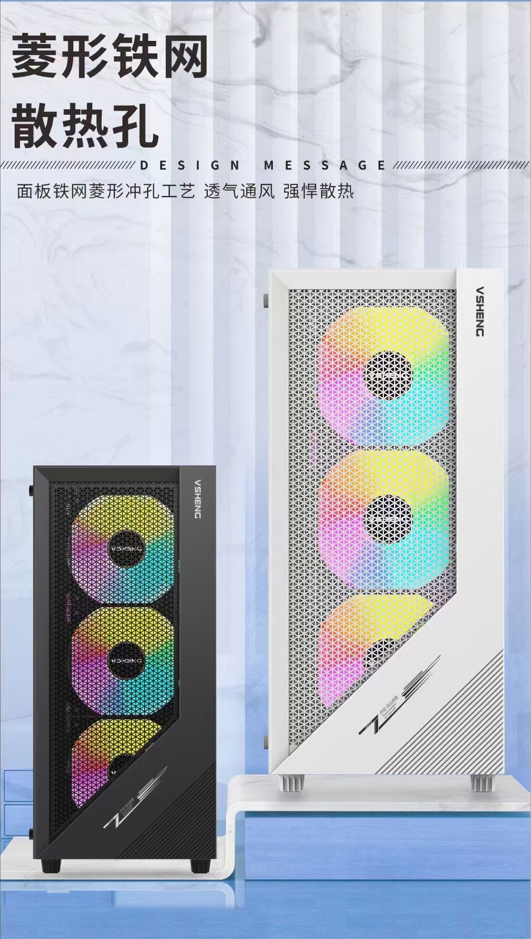국경 Lengfeng 1 절묘한 흰색 DIY 비즈니스 사무실 컴퓨터 스틸 메쉬 섀시 데스크탑 ATX 섀시 USB3.0스토어 가기