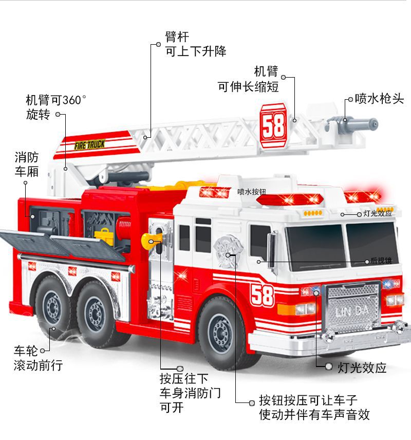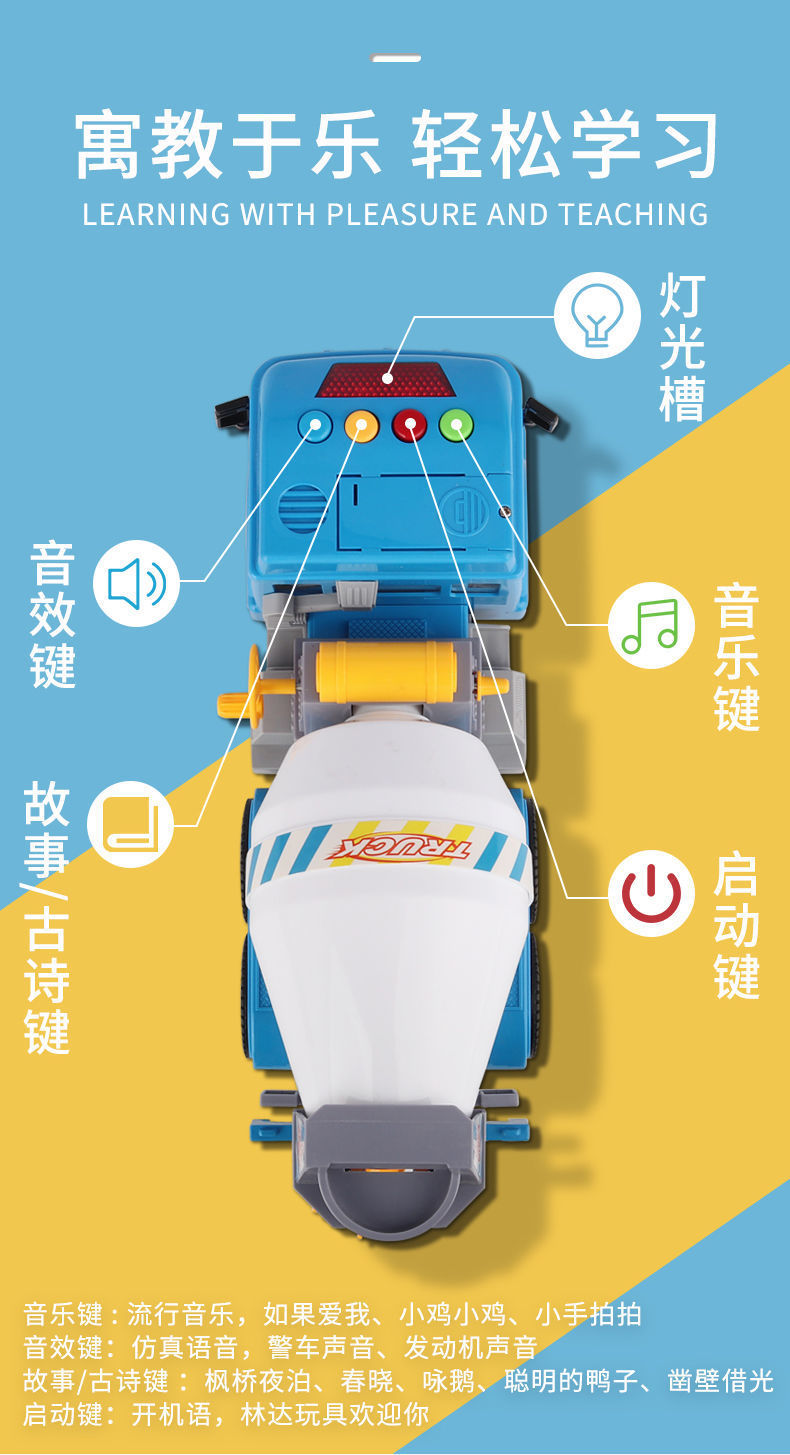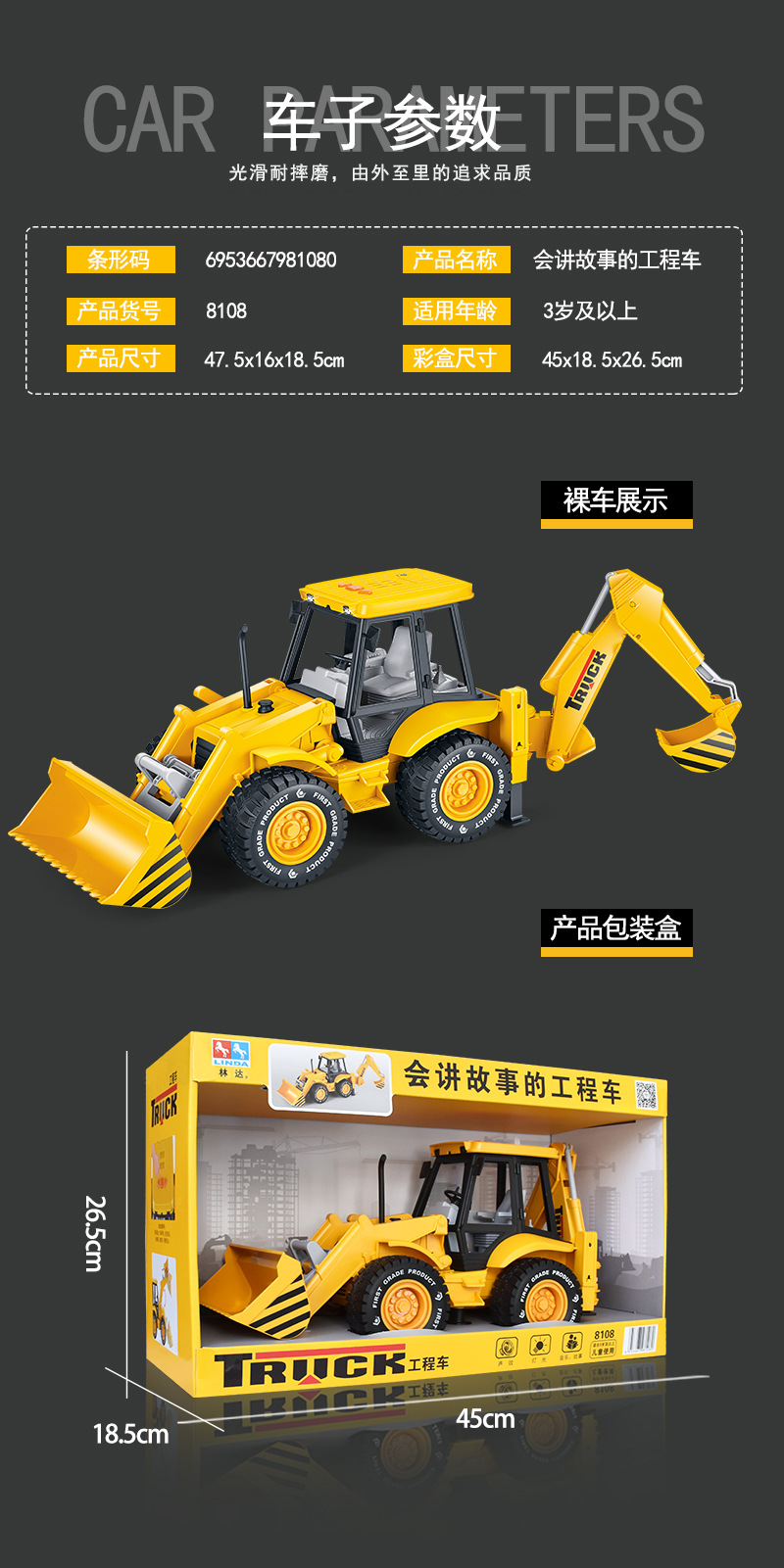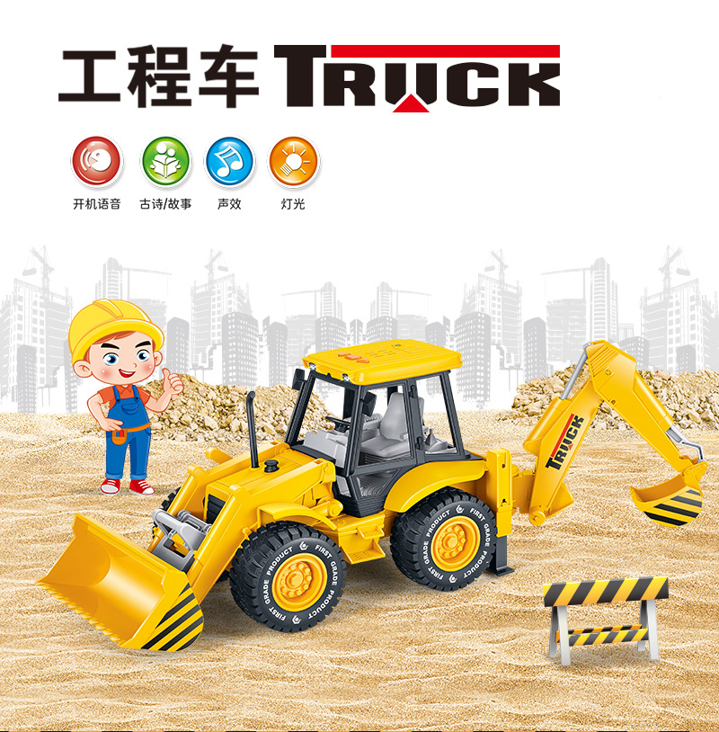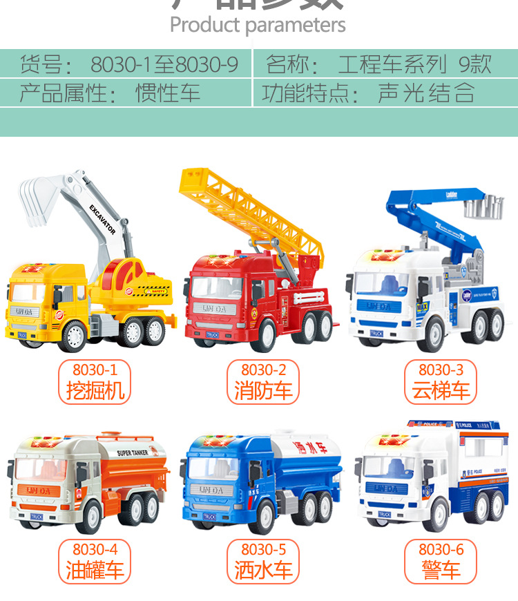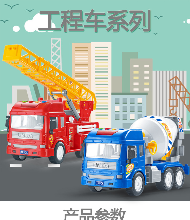 스토리텔링 엔지니어링 차량 세트, 음악 교육용 관성차, 구조차, 소방차, 경찰차, 남자아이 장난감차, 굴착기스토어 가기