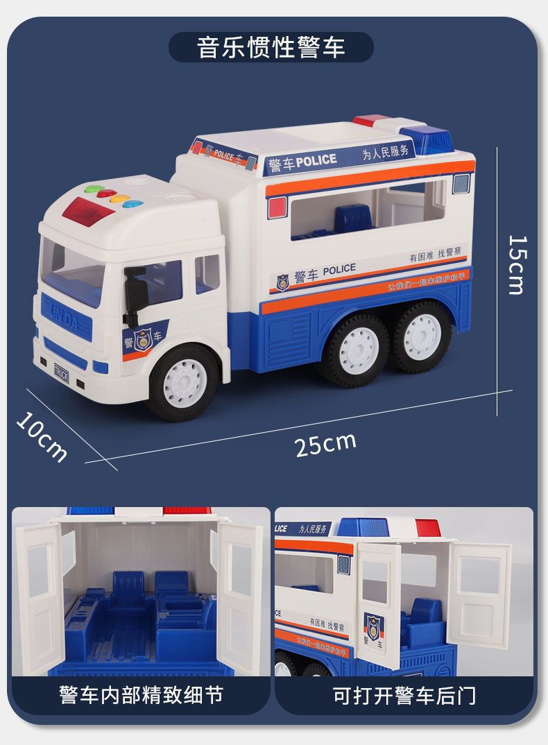 스토리텔링 엔지니어링 차량 세트, 음악 교육용 관성차, 구조차, 소방차, 경찰차, 남자아이 장난감차, 굴착기