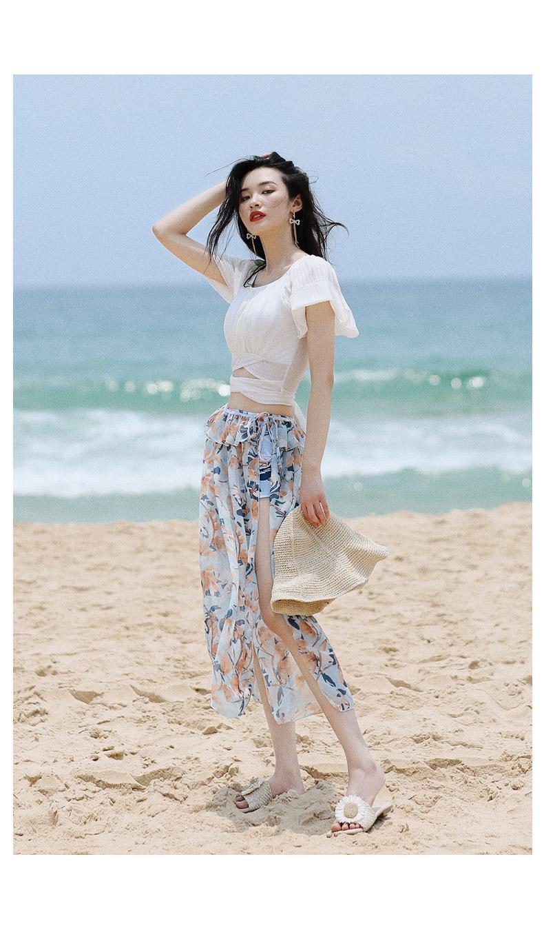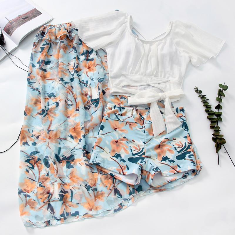 커플 수영복 해변 신혼 여행 여름 새로운 한국식 스플릿 스커트 비키니 3 피스 세트 남녀 수영복스토어 가기