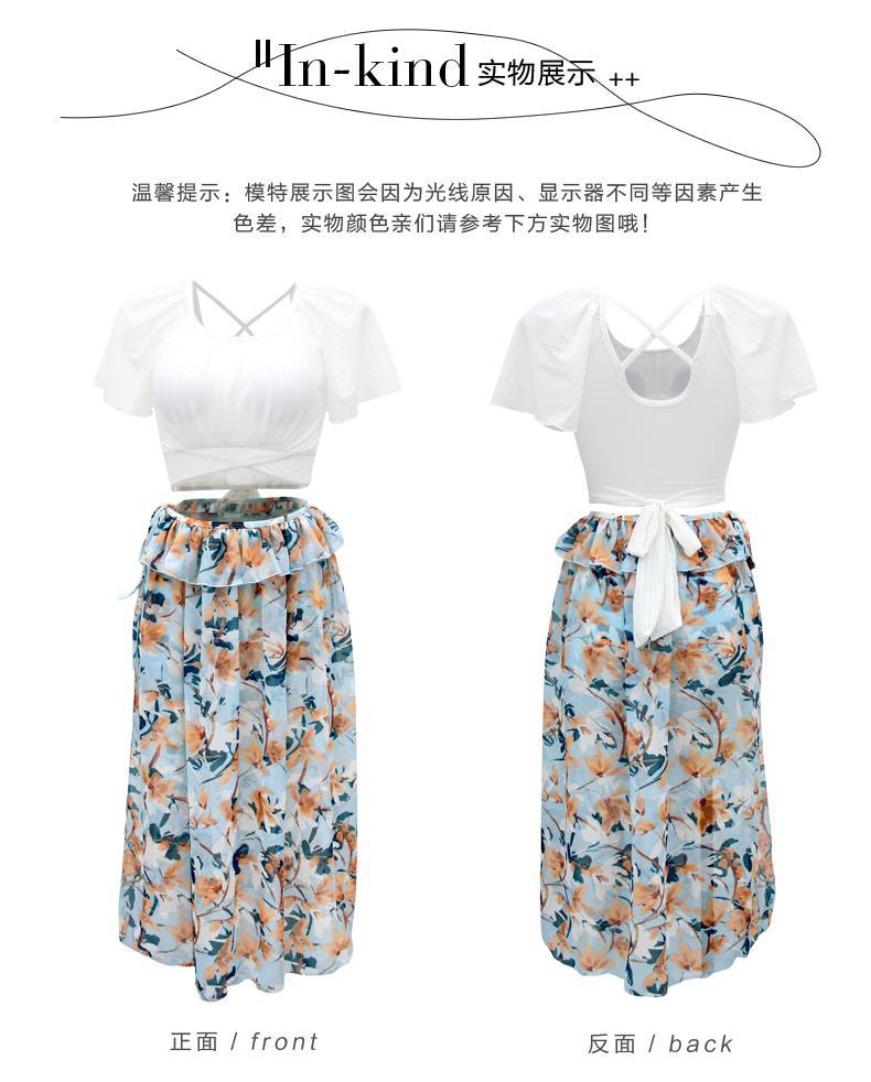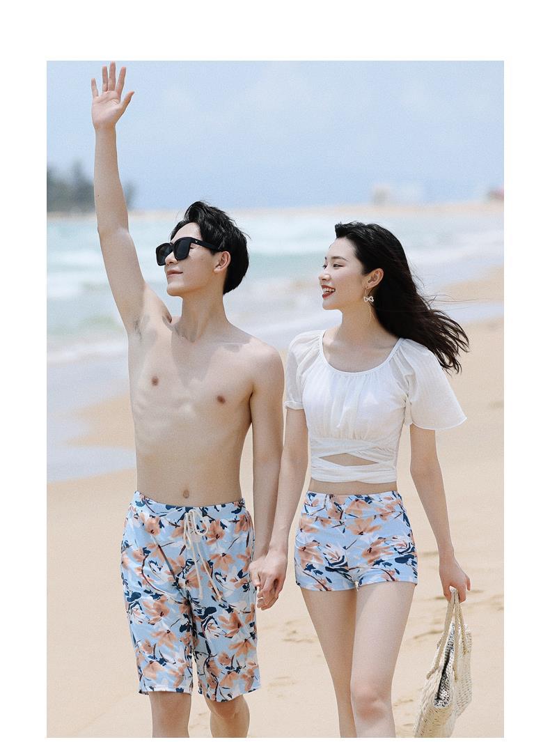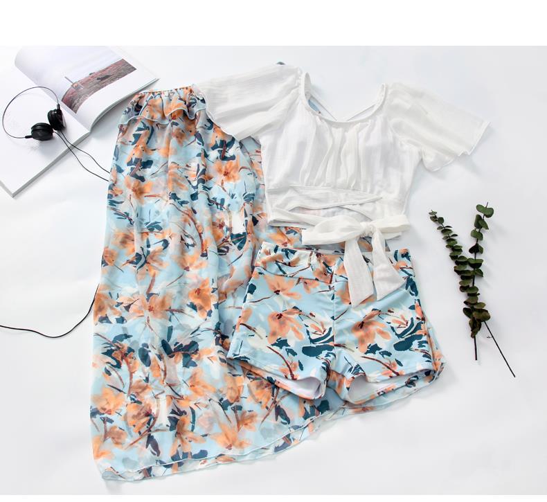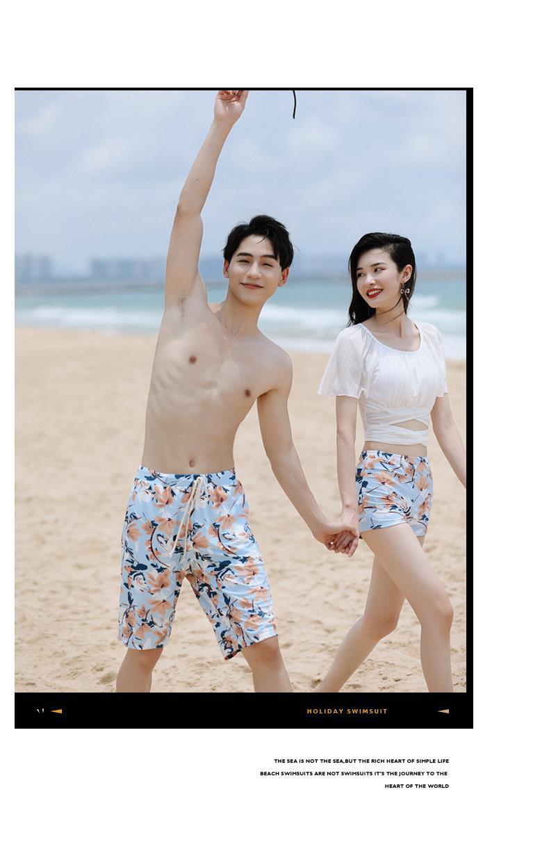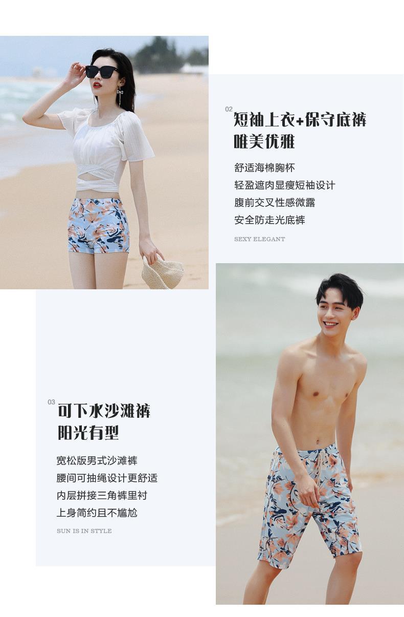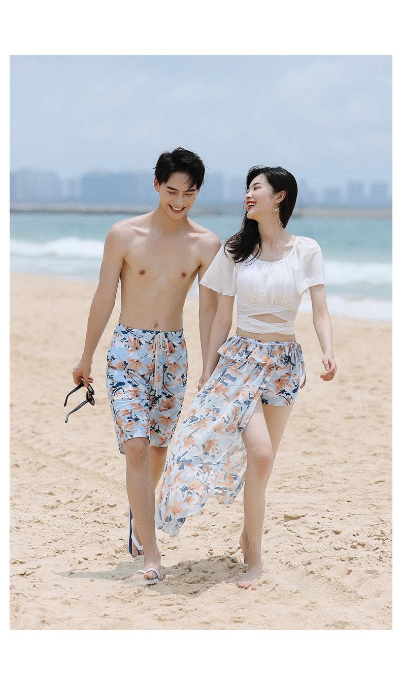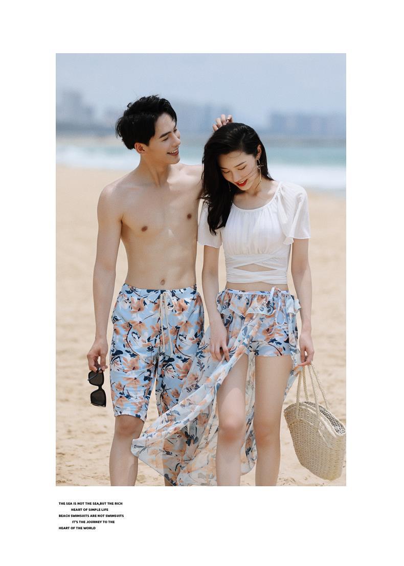 커플 수영복 해변 신혼 여행 여름 새로운 한국식 스플릿 스커트 비키니 3 피스 세트 남녀 수영복