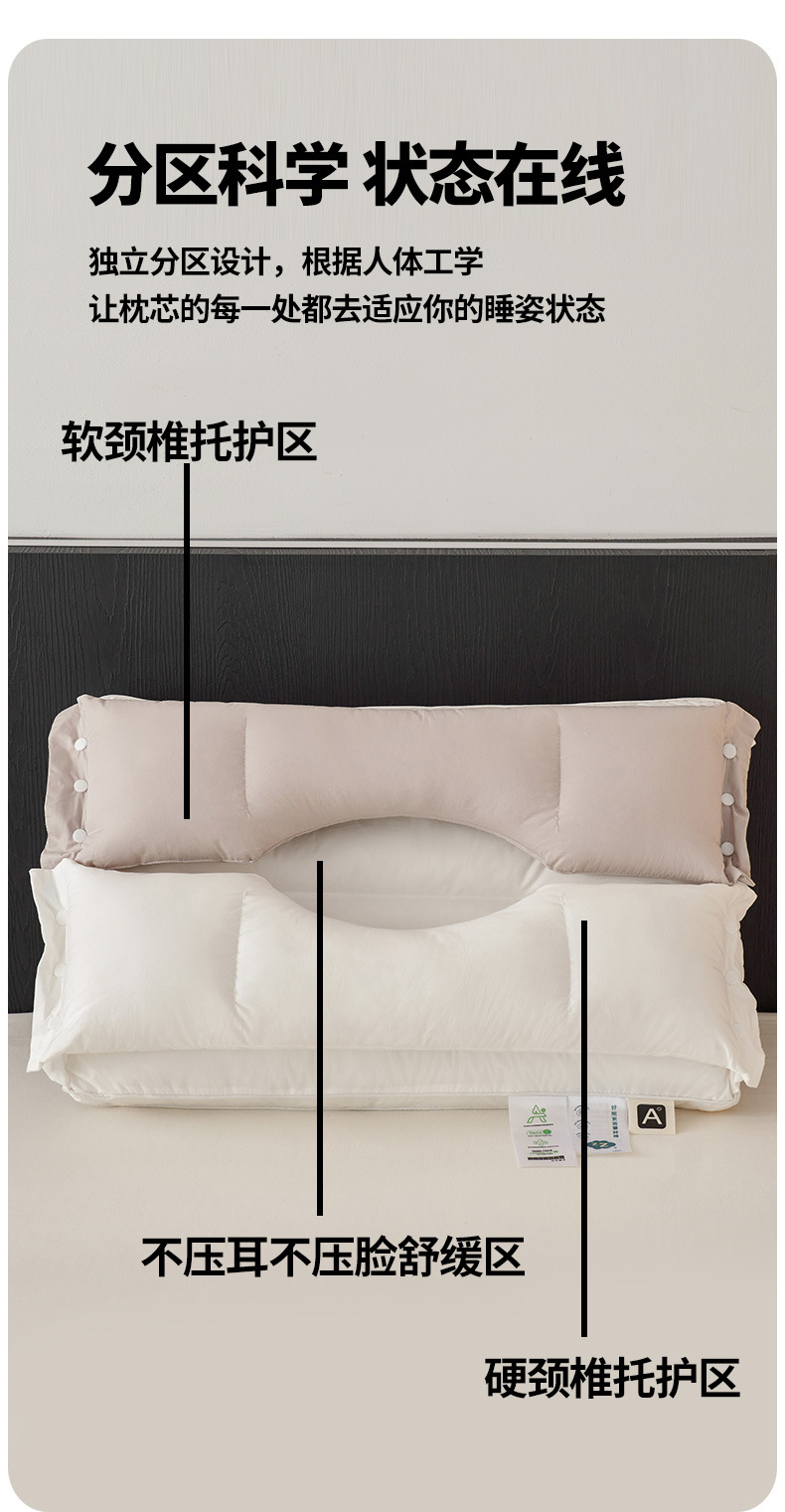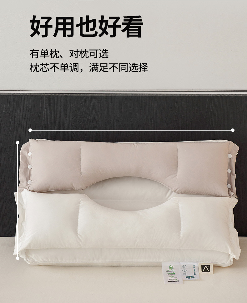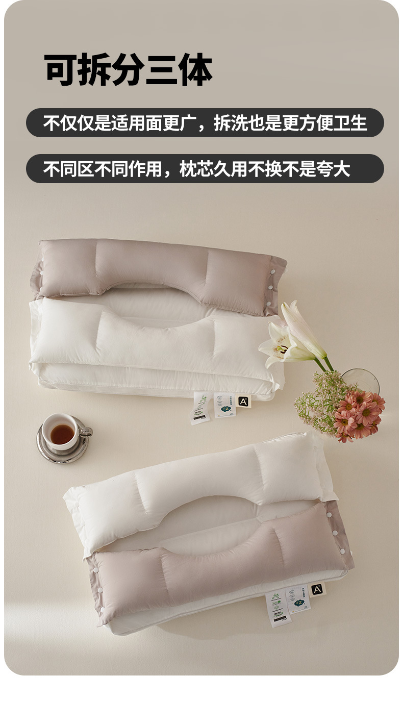 베개 기모 역추력 구역화 입체 베개 코어 3-in-1 싱글 탈착식 및 세탁 가능한 깃털 벨벳 베개 코어 베개스토어 가기