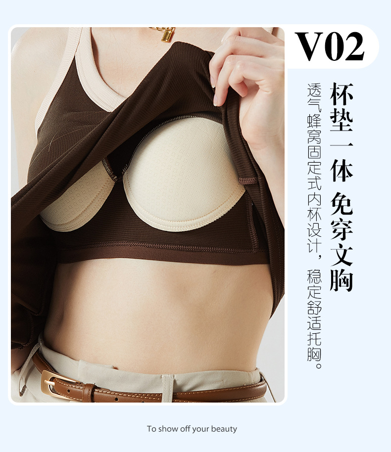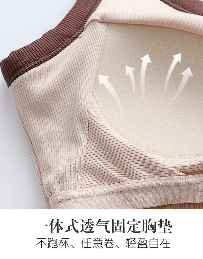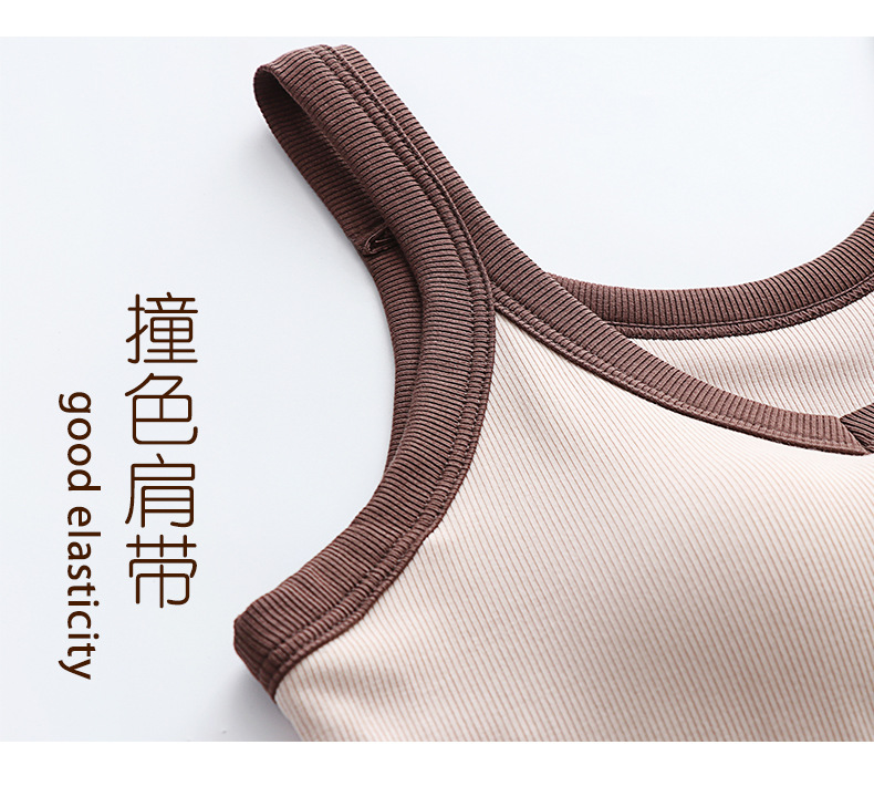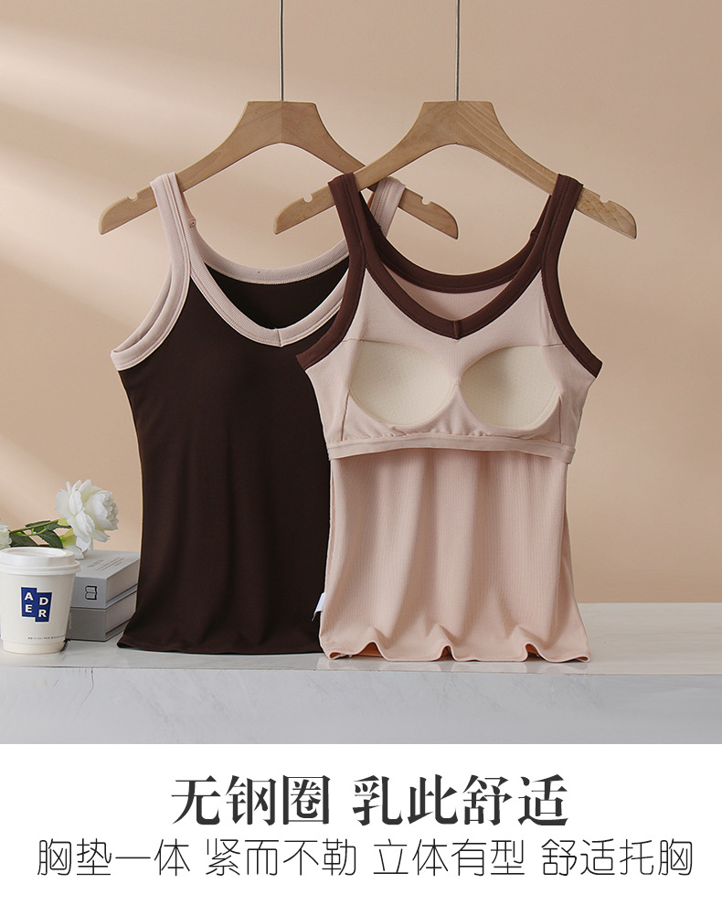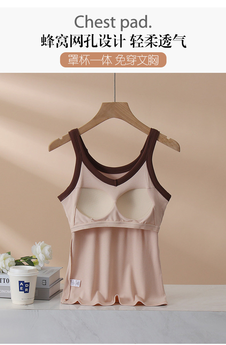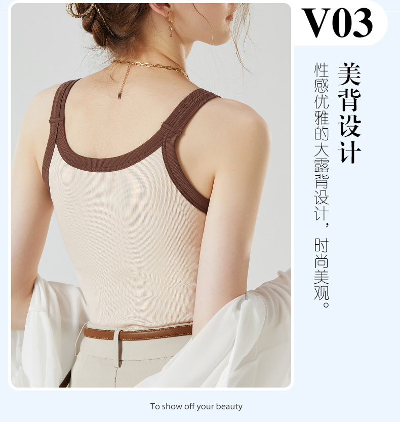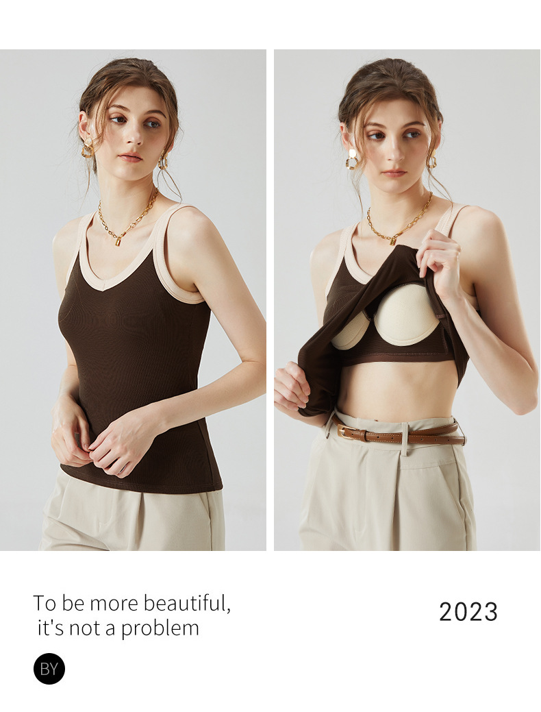 가슴 패드와 캐미솔 컵 일체형 컬러 대비 와이드 숄더 브이넥 민소매 베이스 셔츠 여성용 인터넷 연예인 이너베이스 셔츠