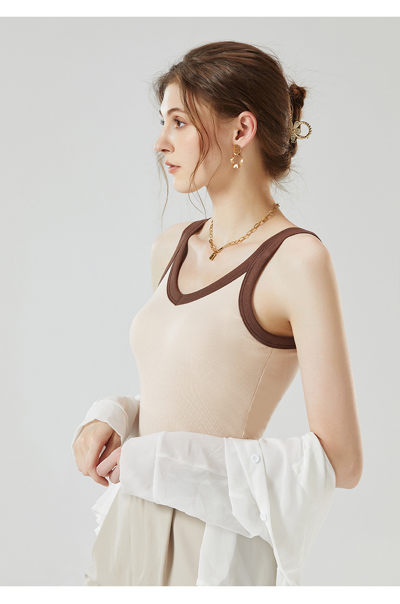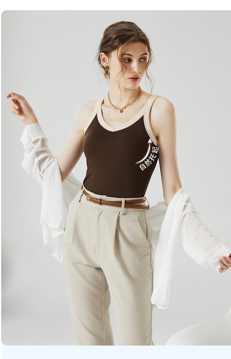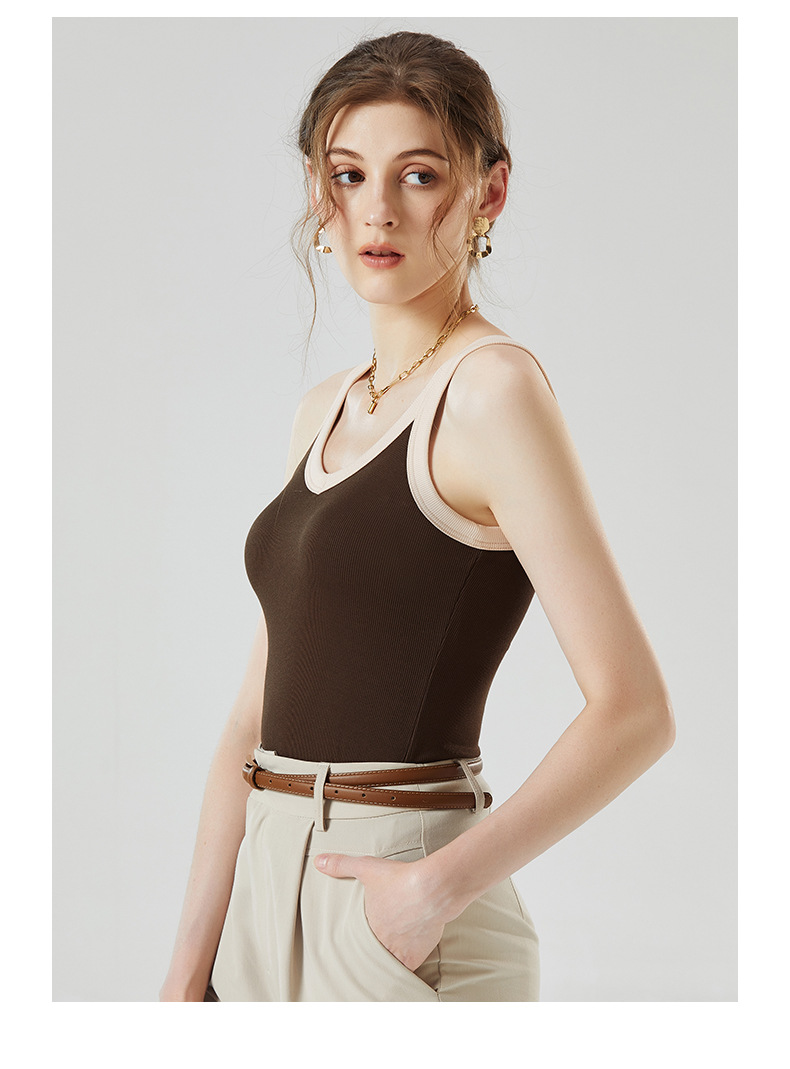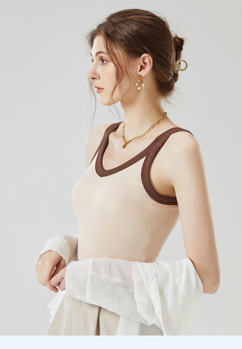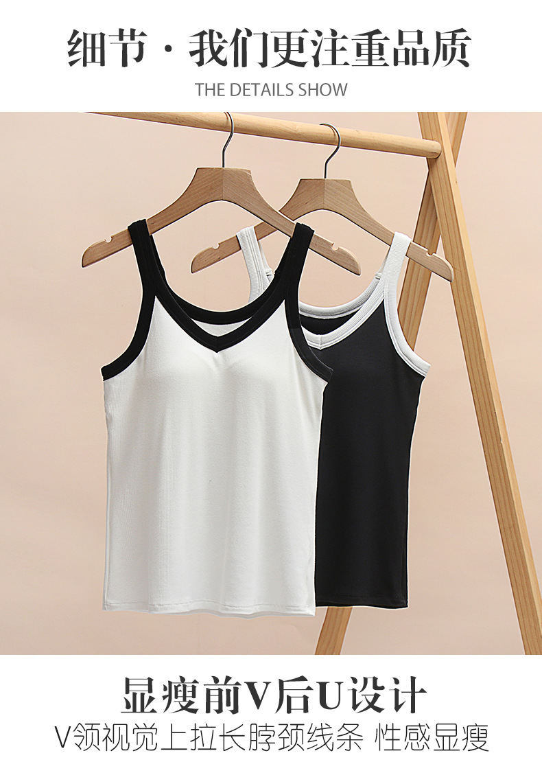가슴 패드와 캐미솔 컵 일체형 컬러 대비 와이드 숄더 브이넥 민소매 베이스 셔츠 여성용 인터넷 연예인 이너베이스 셔츠스토어 가기