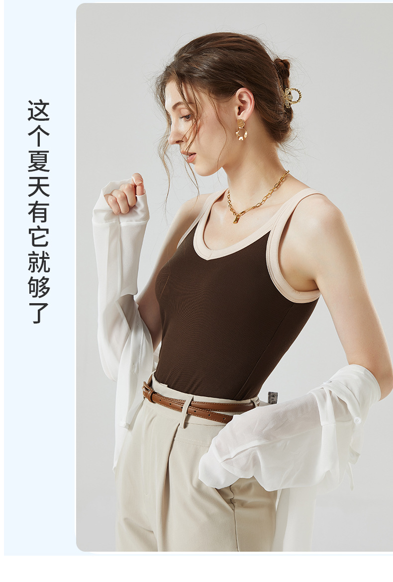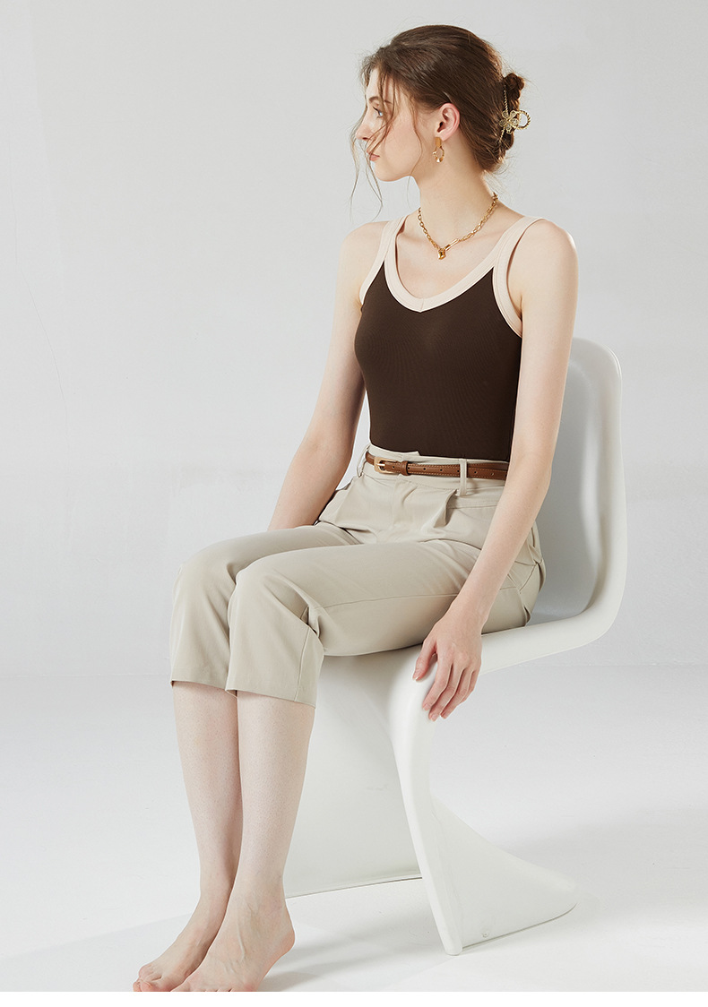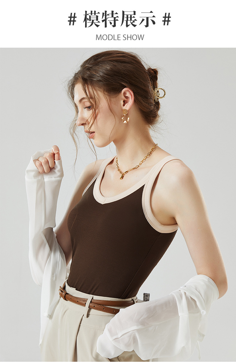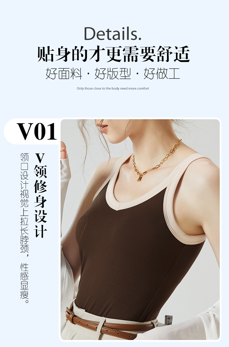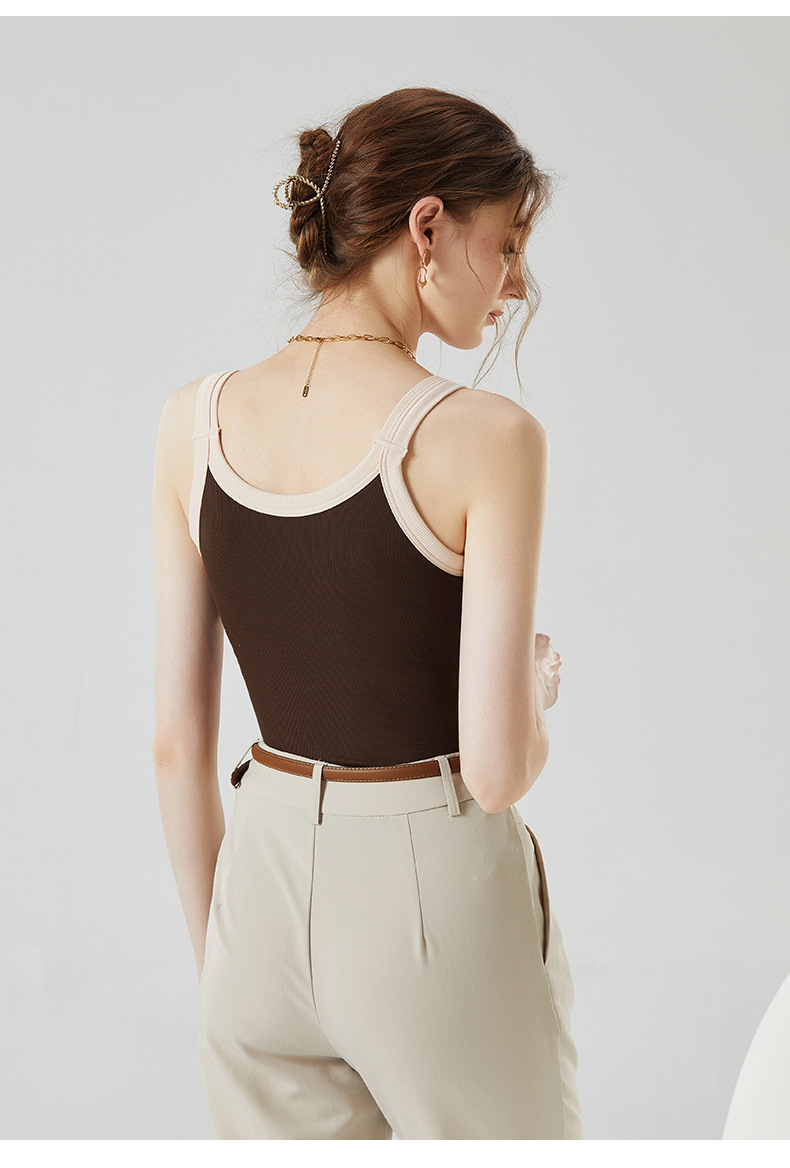 가슴 패드와 캐미솔 컵 일체형 컬러 대비 와이드 숄더 브이넥 민소매 베이스 셔츠 여성용 인터넷 연예인 이너베이스 셔츠스토어 가기