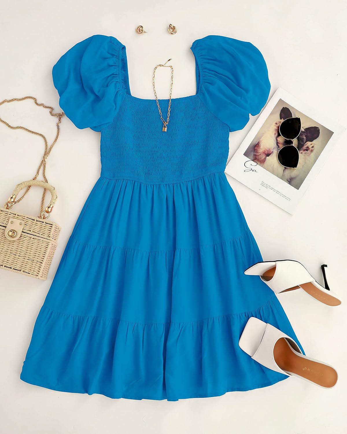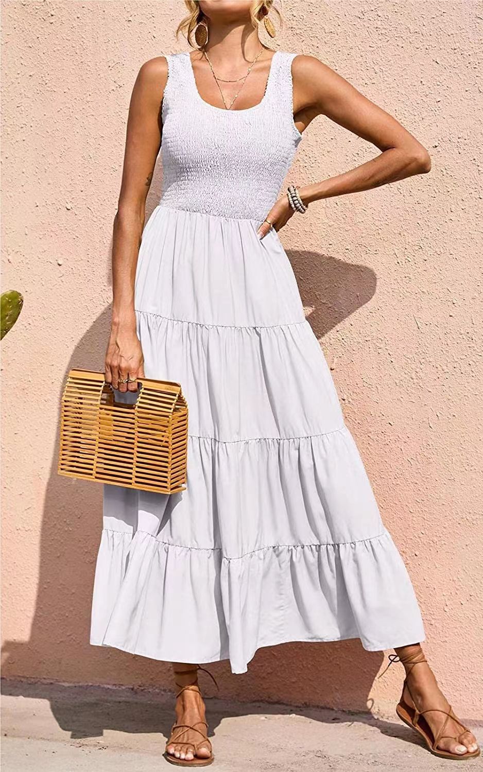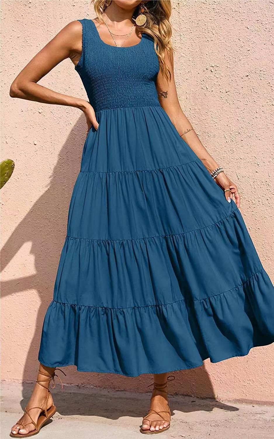 2023 봄 유럽과 미국 대외 무역 크로스 보더 여성의 원피스 아마존 멜빵 스커트 주름 바느질 모양의 대형 진자 원피스스토어 가기