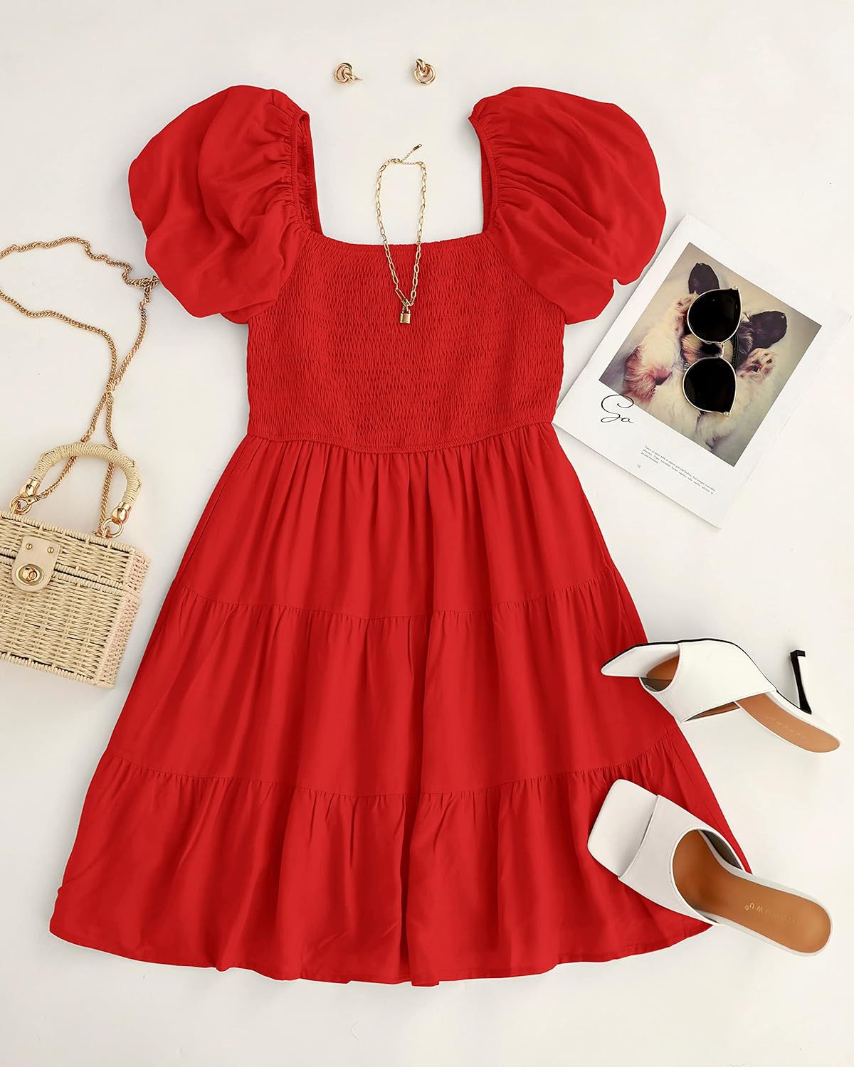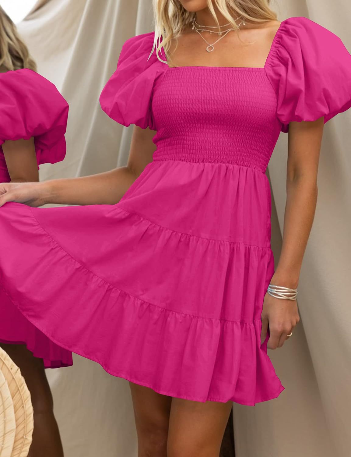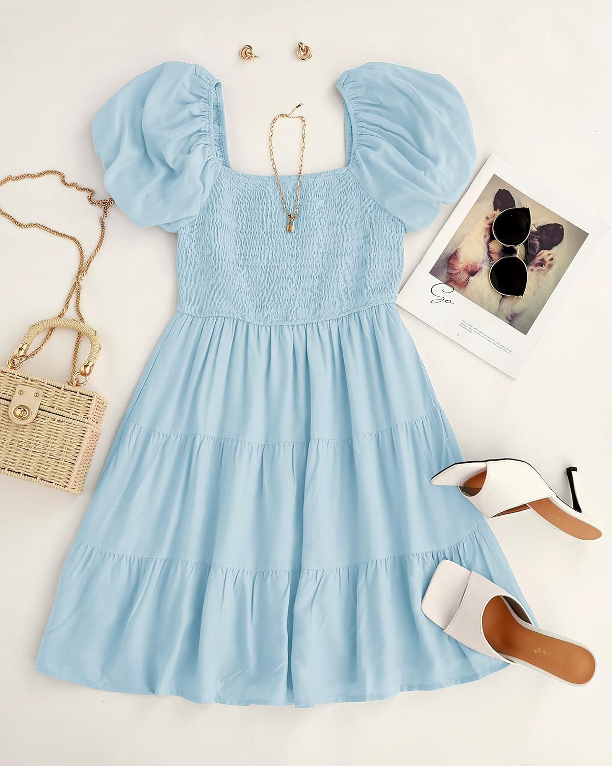 2023 봄 유럽과 미국 대외 무역 크로스 보더 여성의 원피스 아마존 멜빵 스커트 주름 바느질 모양의 대형 진자 원피스스토어 가기