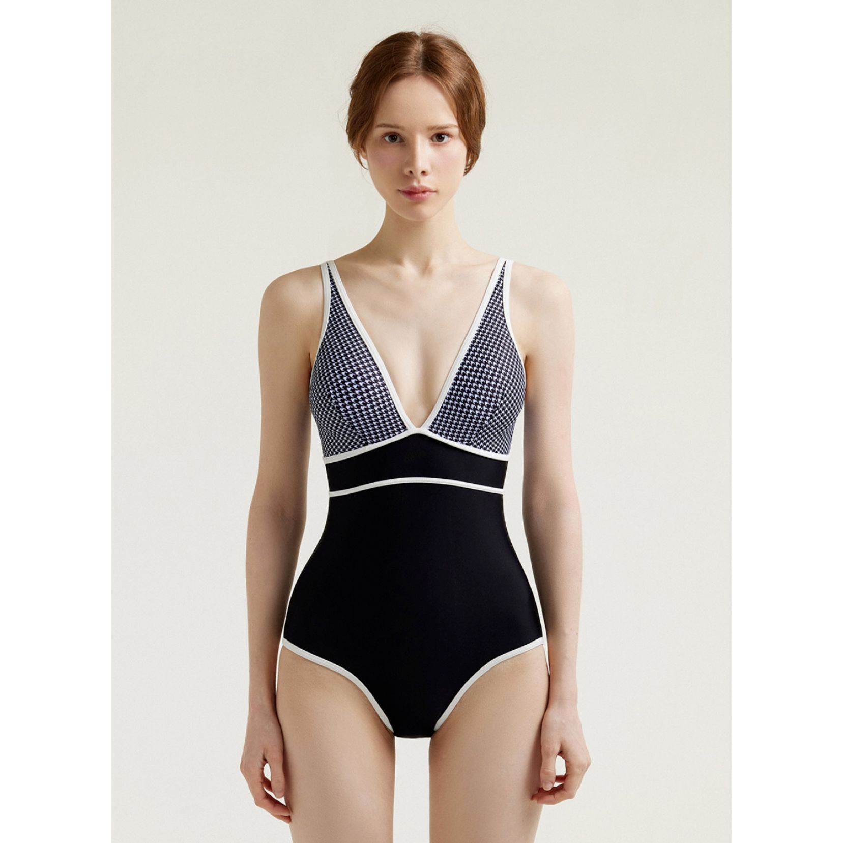도매 새로운 Houndstooth 흑백 원피스 비키니 수영복 여성 여름 섹시한 스트랩 슬림 배꼽 커버 수영복 여성스토어 가기