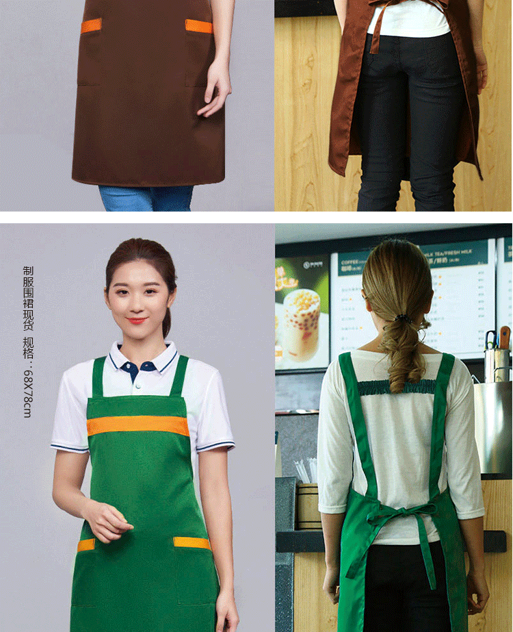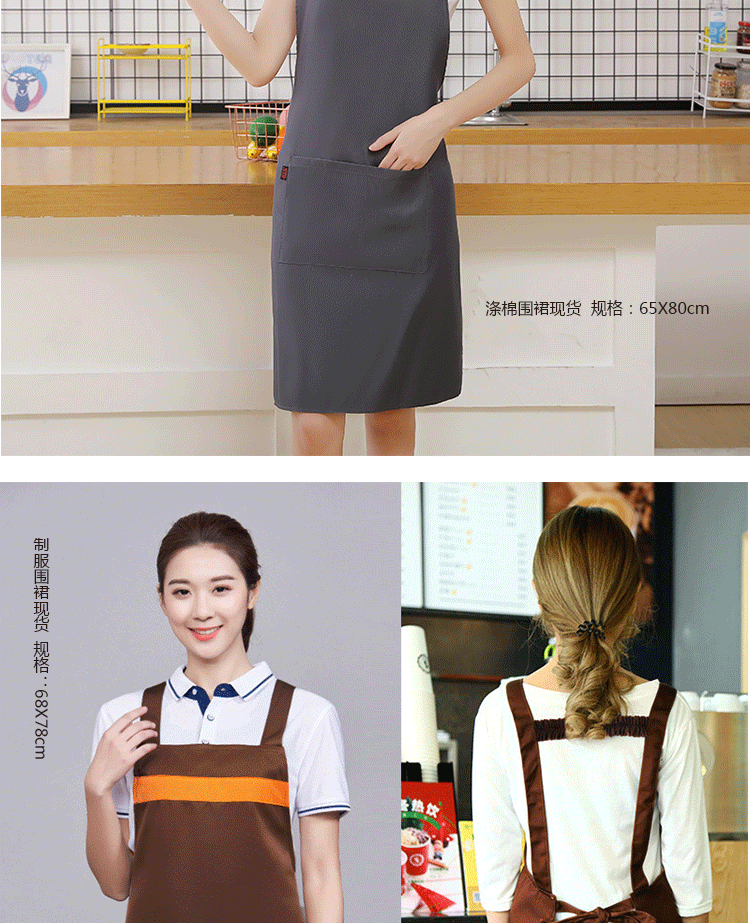 앞치마 맞춤형 작업복 로고 인쇄 여성 패션 방수 및 오일 방지 케이터링 슈퍼마켓 과일 가게 네일 암스토어 가기