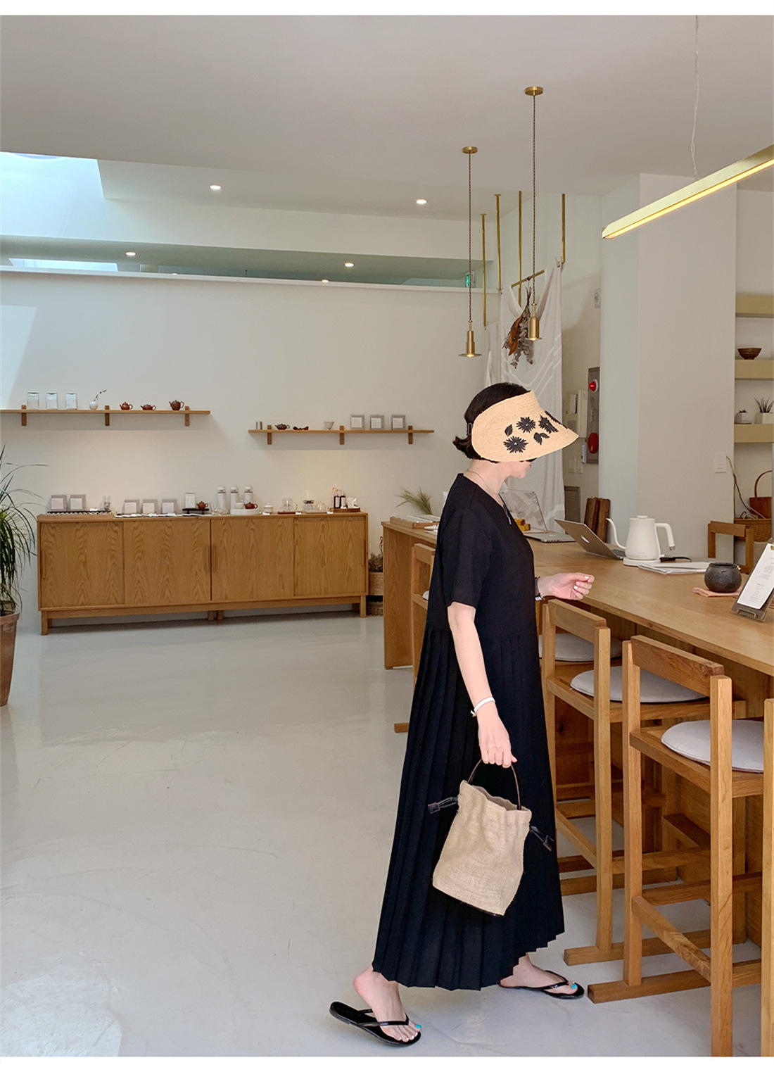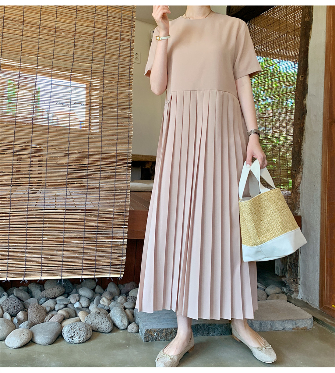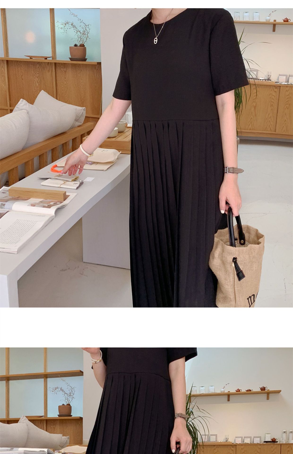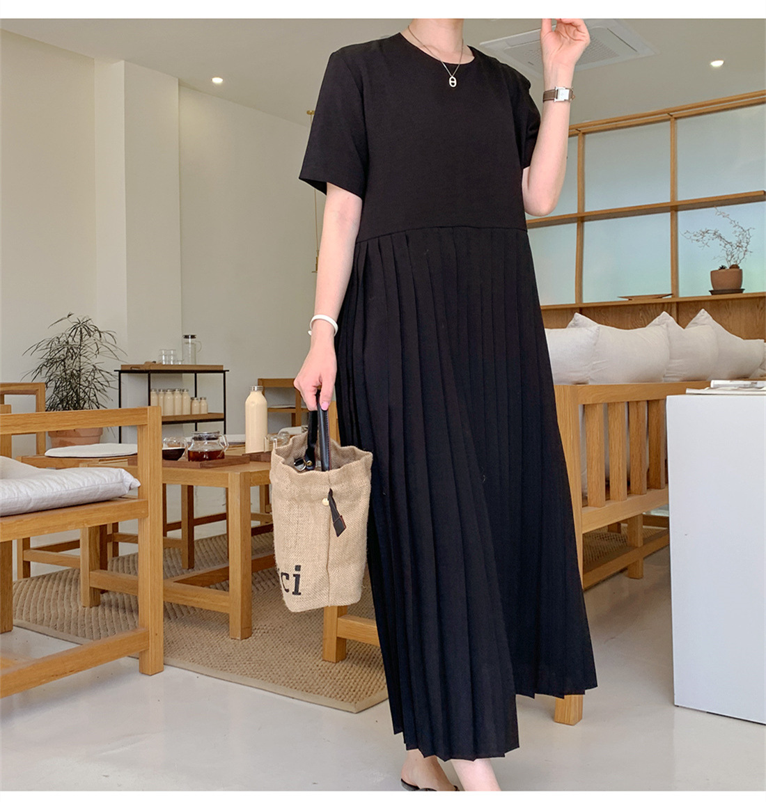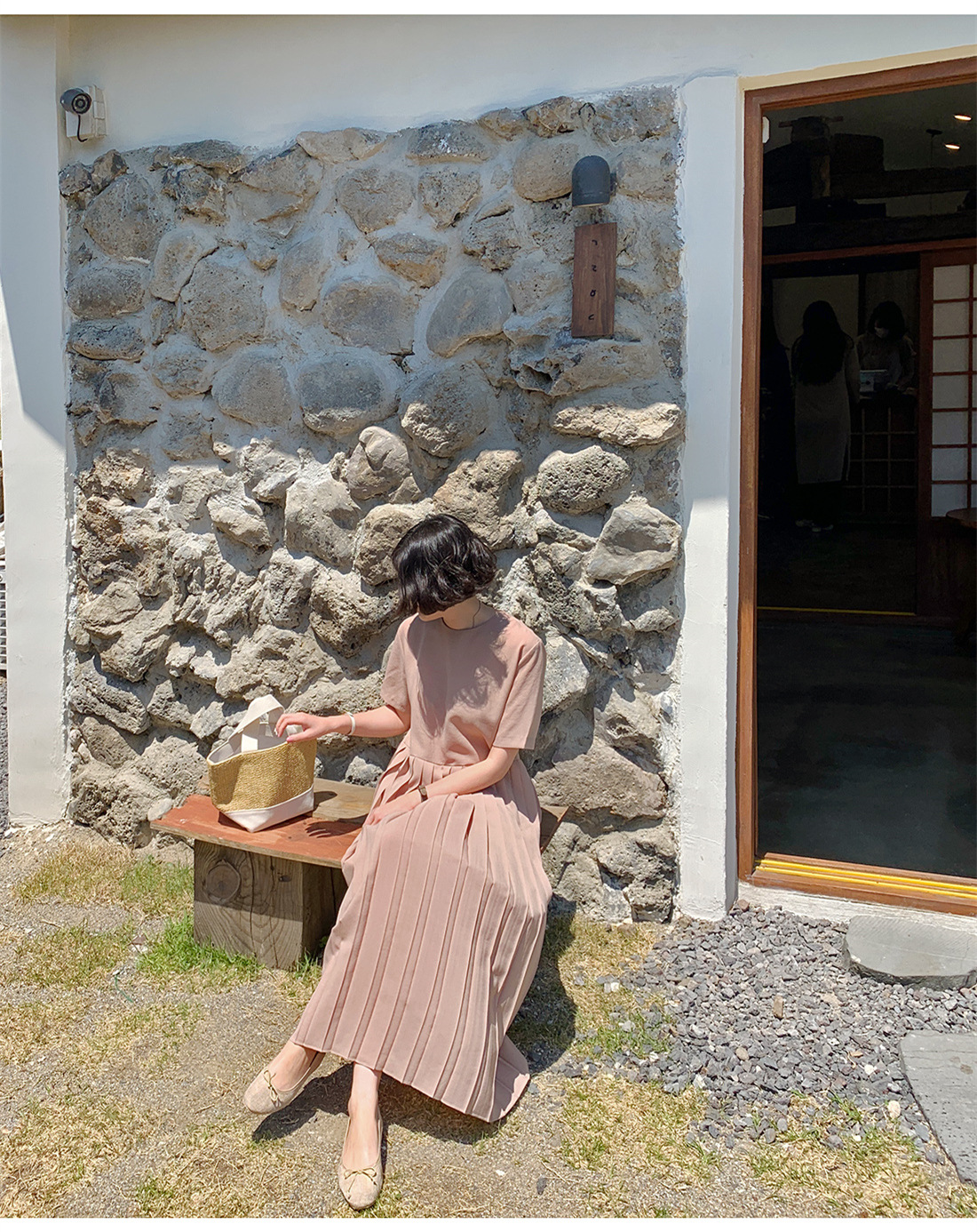 30207 # 여름 새로운 한국어 느슨한 슬림 반팔 쉬폰 주름 원피스 여성의 긴 기질 여성 원피스스토어 가기