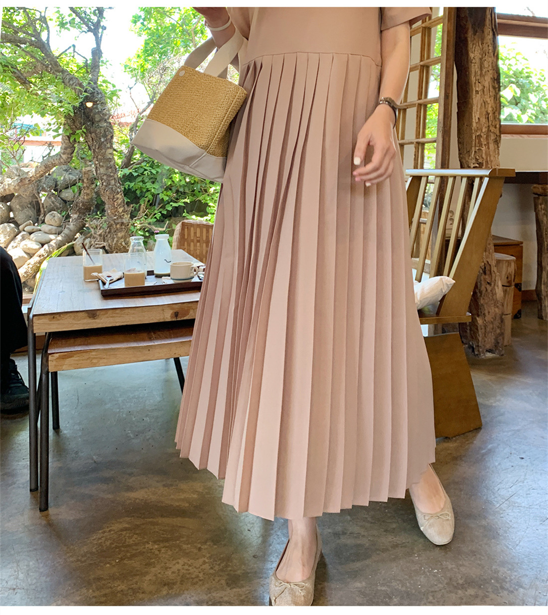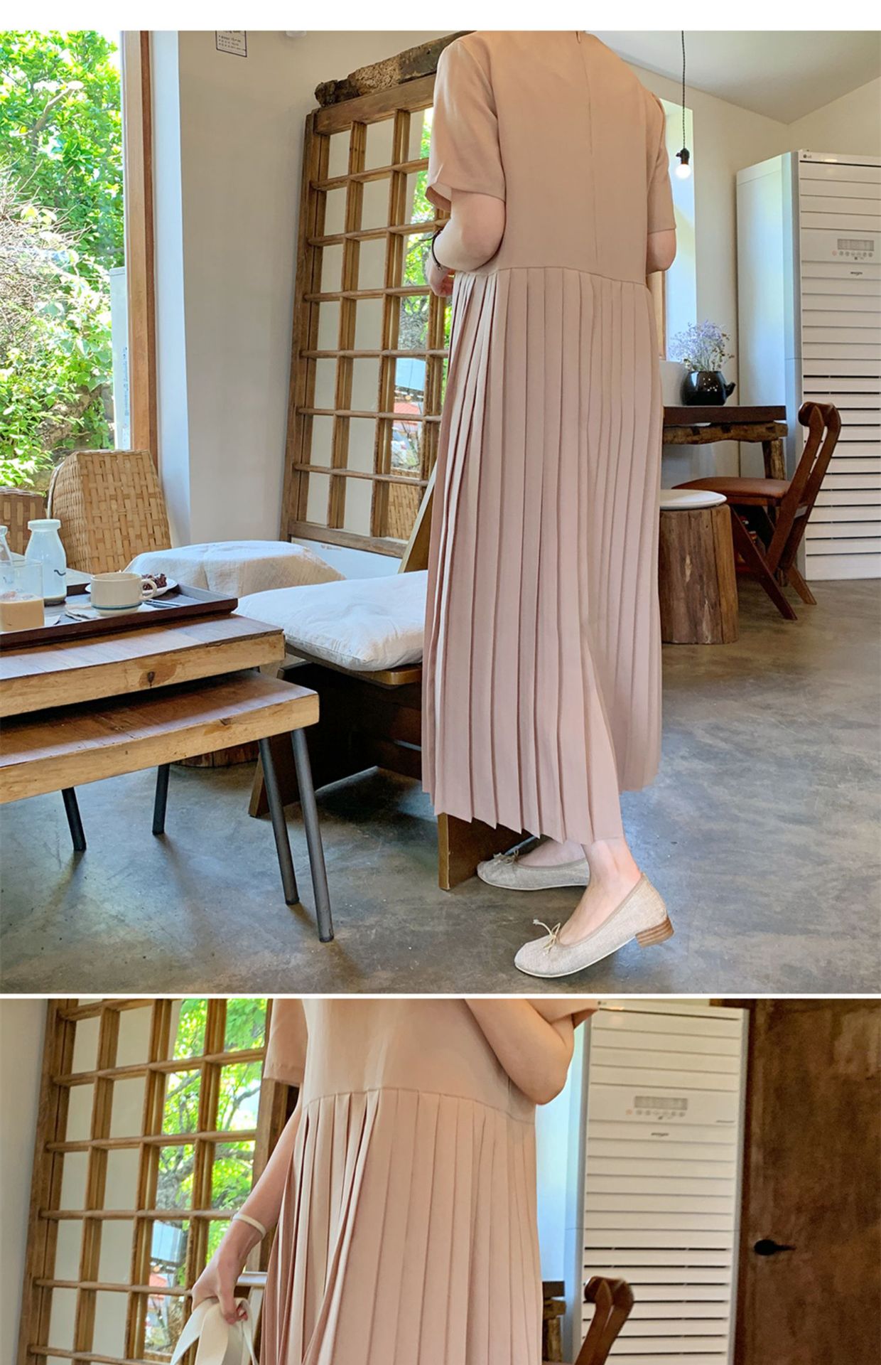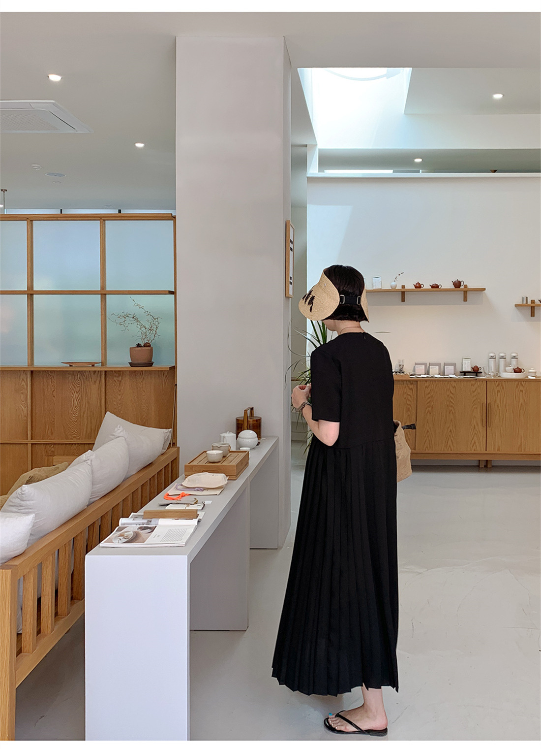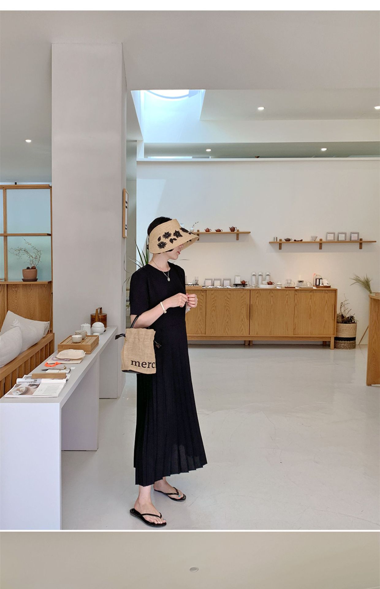 30207 # 여름 새로운 한국어 느슨한 슬림 반팔 쉬폰 주름 원피스 여성의 긴 기질 여성 원피스스토어 가기