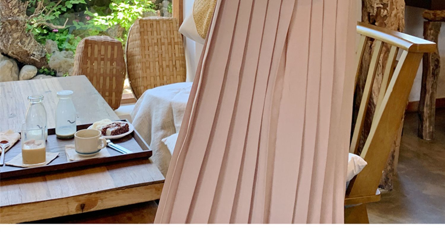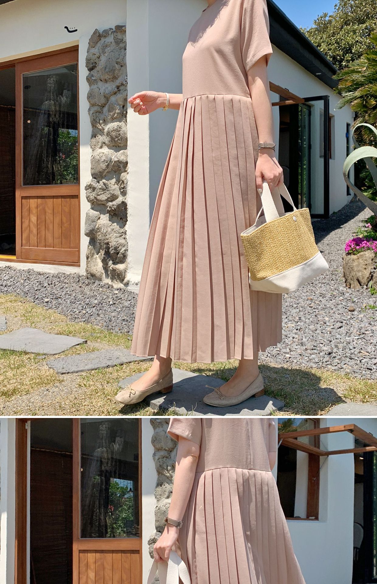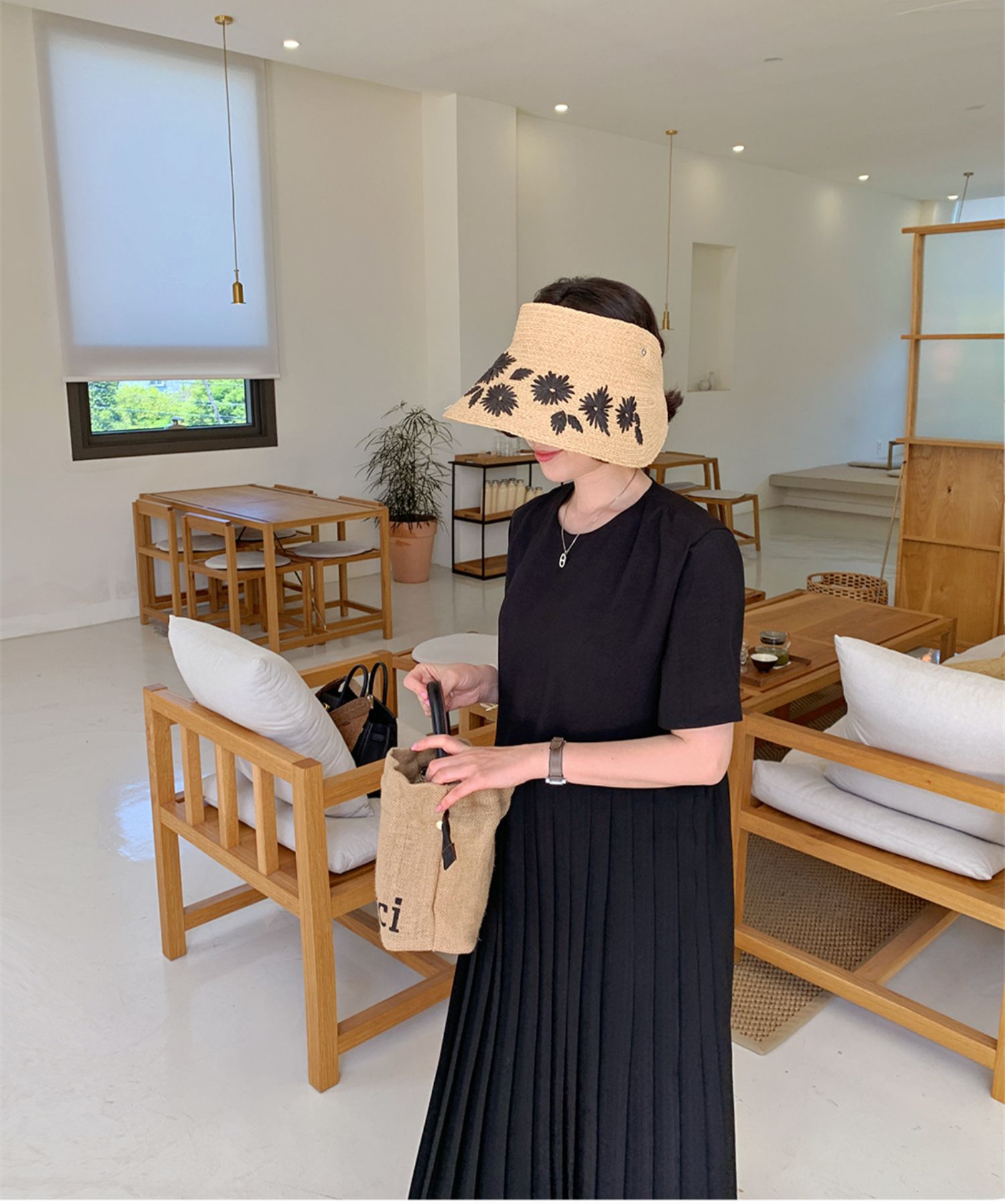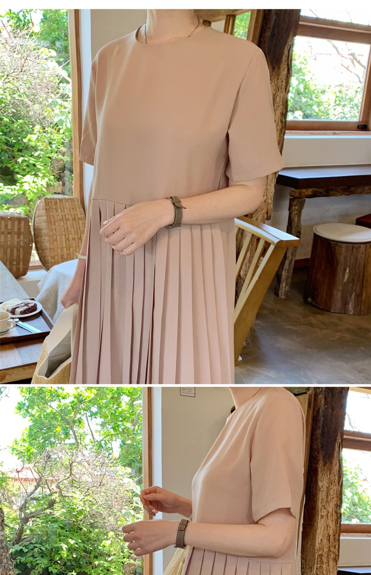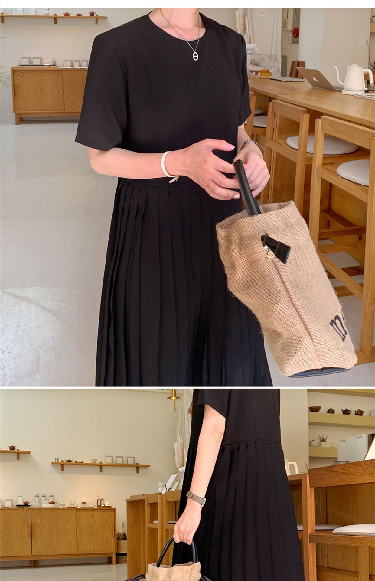 30207 # 여름 새로운 한국어 느슨한 슬림 반팔 쉬폰 주름 원피스 여성의 긴 기질 여성 원피스스토어 가기
