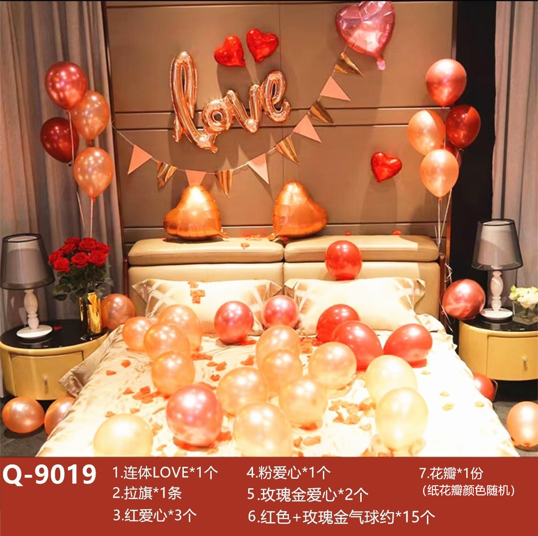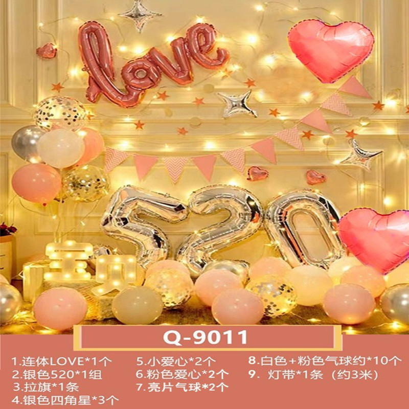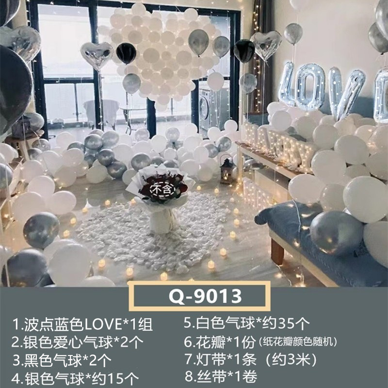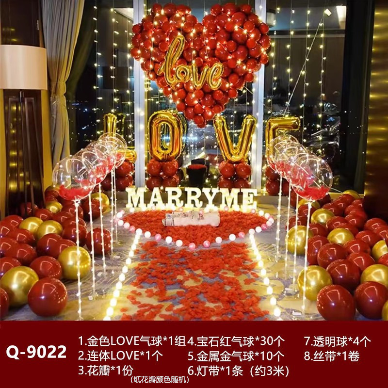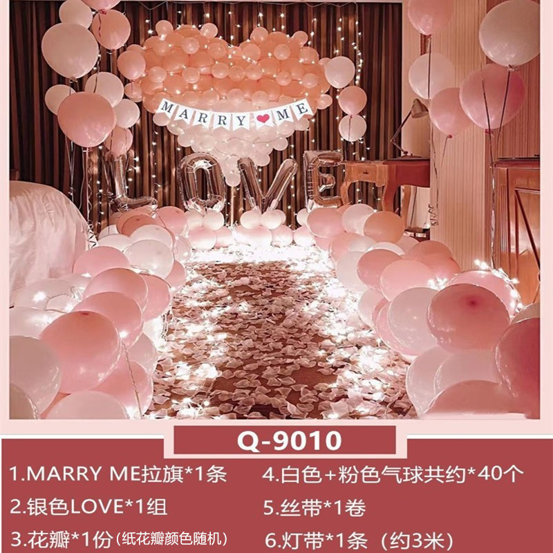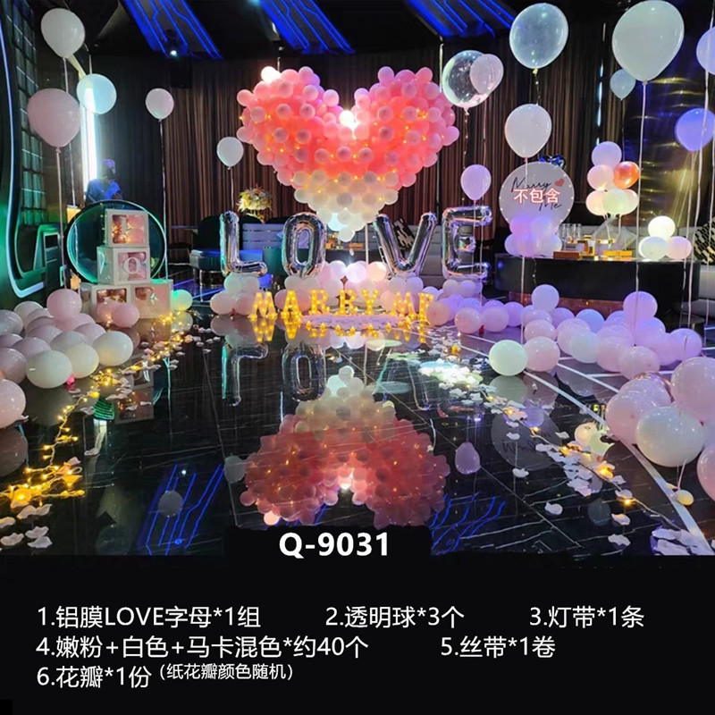 고백 제안 서프라이즈 배열 풍선 남성과 여성 친구 발렌타인 데이 로맨틱 배경 장식 장면 현충일 원피스 업스토어 가기