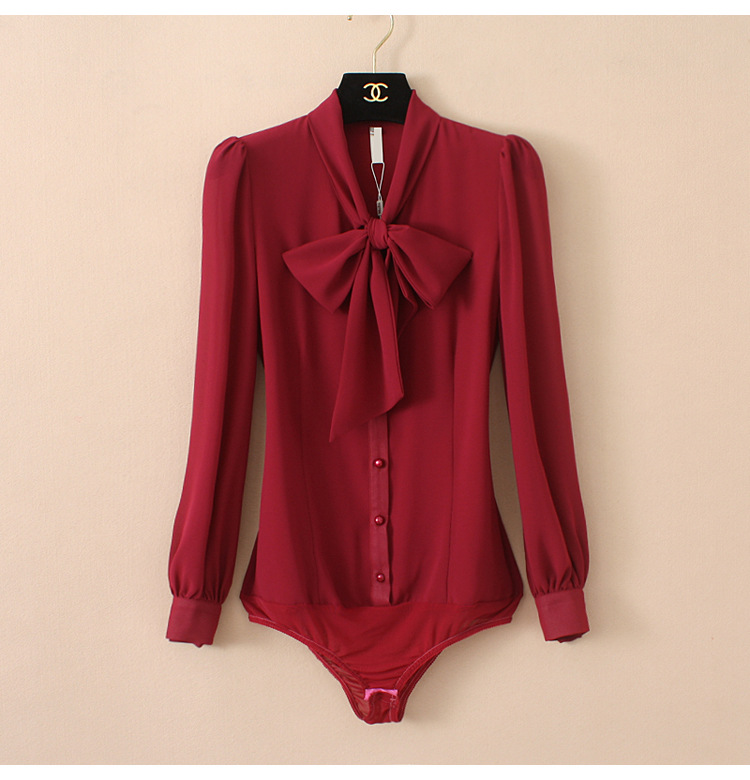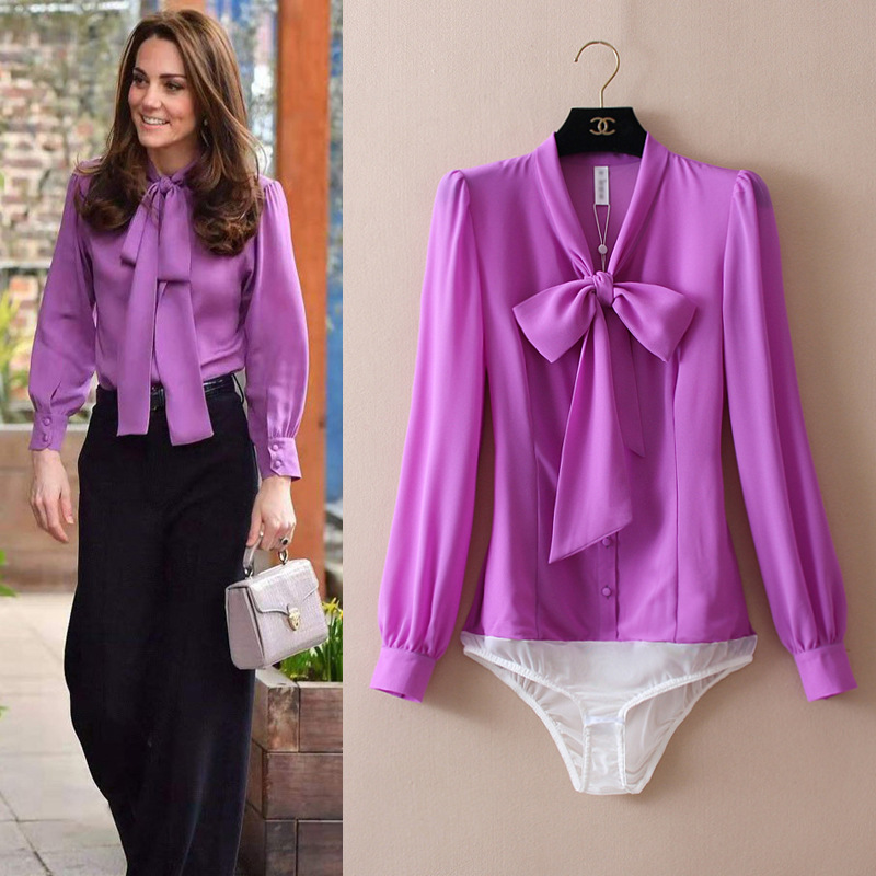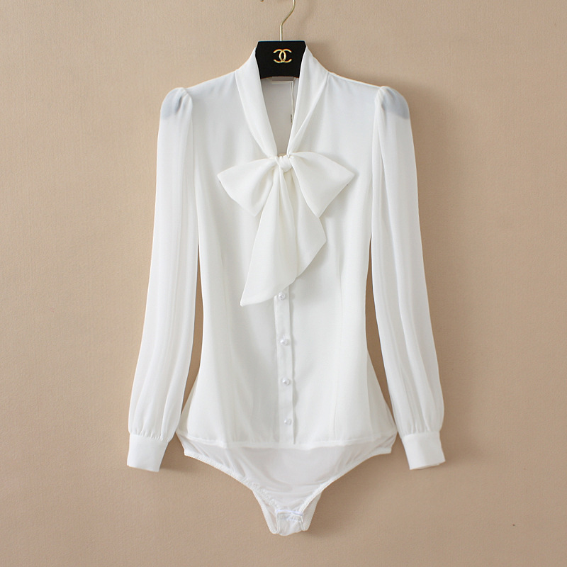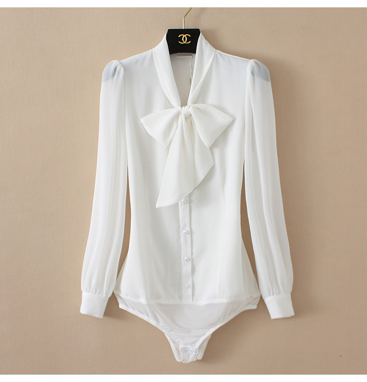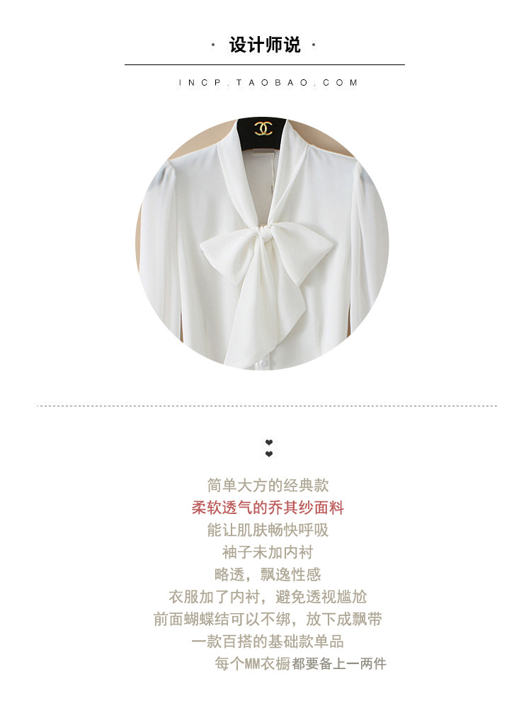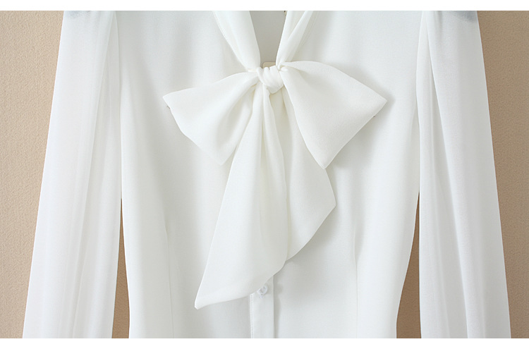 세련된 우아한 리본 활 브랜드 쉬폰 셔츠 여성 틈새 원피스 화이트 탑 가랑이 스프링 뉴스토어 가기