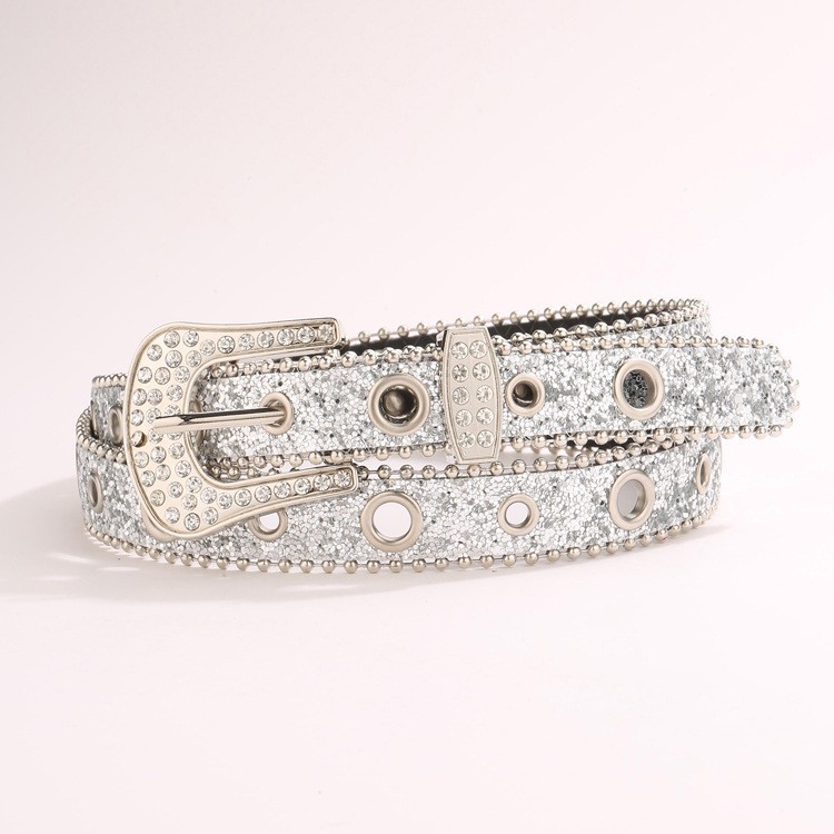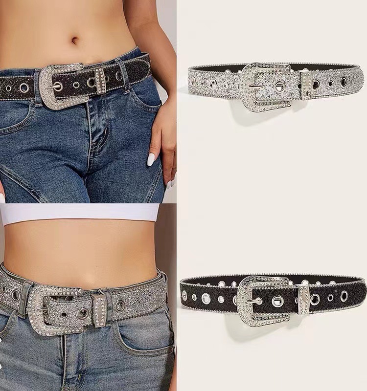 Ins 스타일의 모조 다이아몬드 벨트, 장식용 와이드 벨트, 유럽과 미국의 패셔너블한 맞춤형 스팽글 청바지 벨트, 다용도 금속 소재