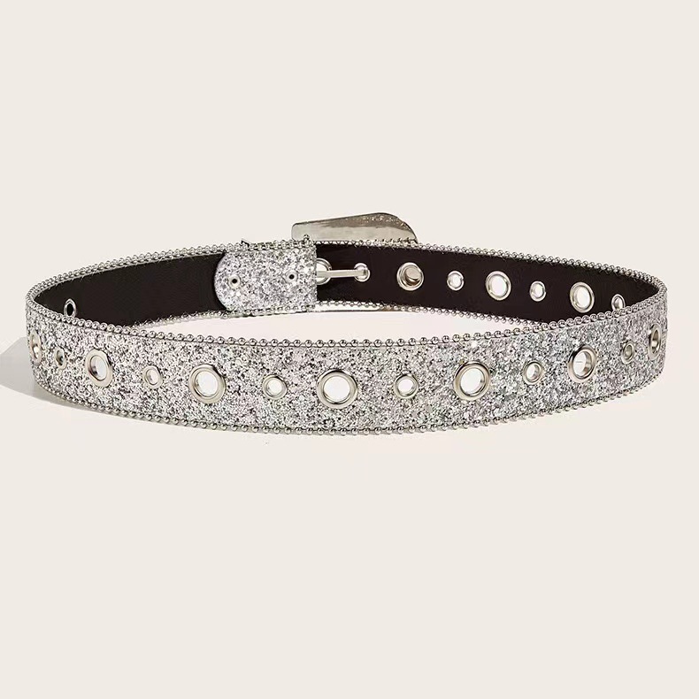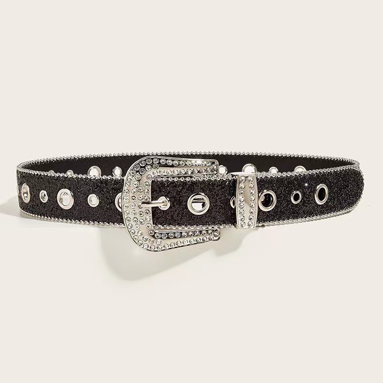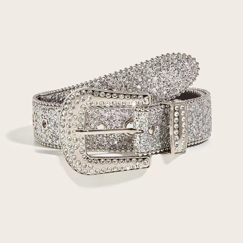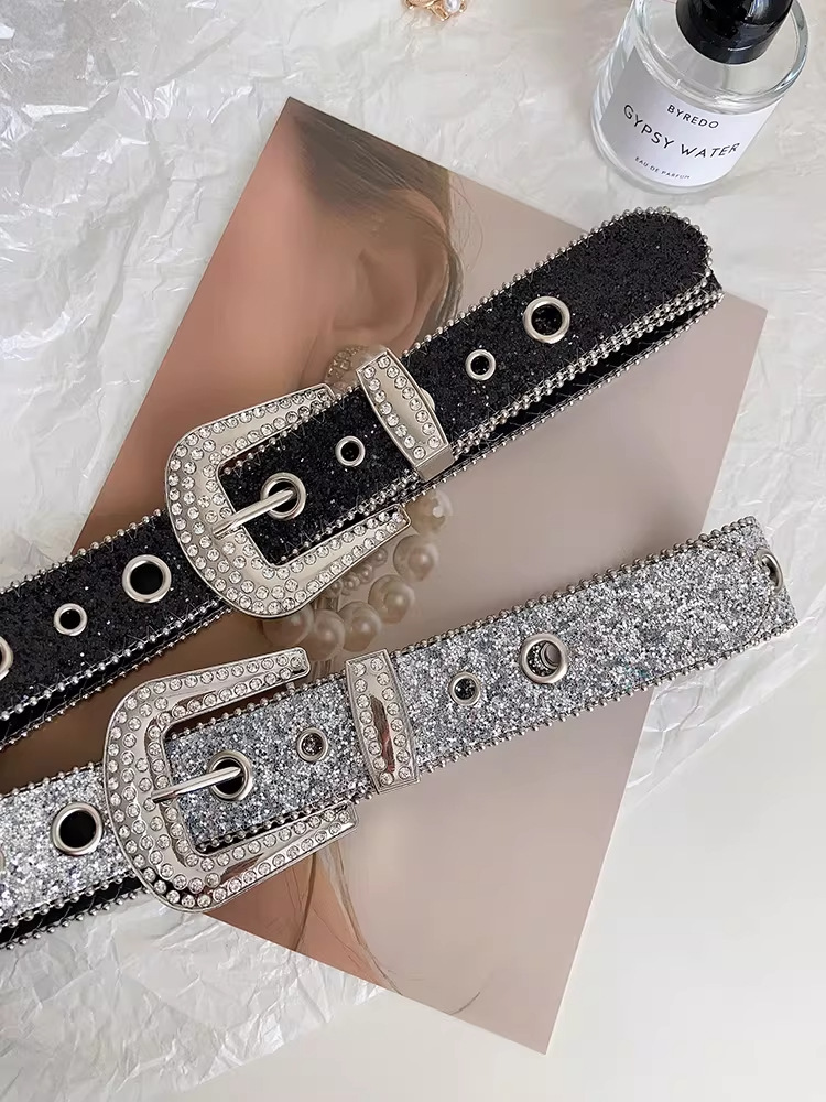 ins风水钻皮带宽腰带装饰欧美时尚个性亮片牛仔裤带百搭金属材质