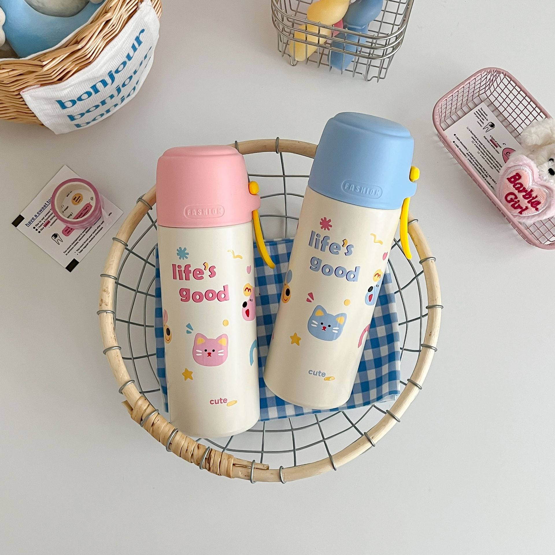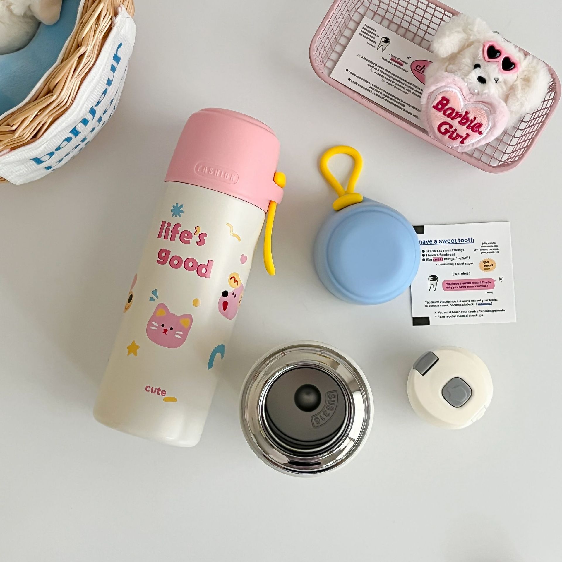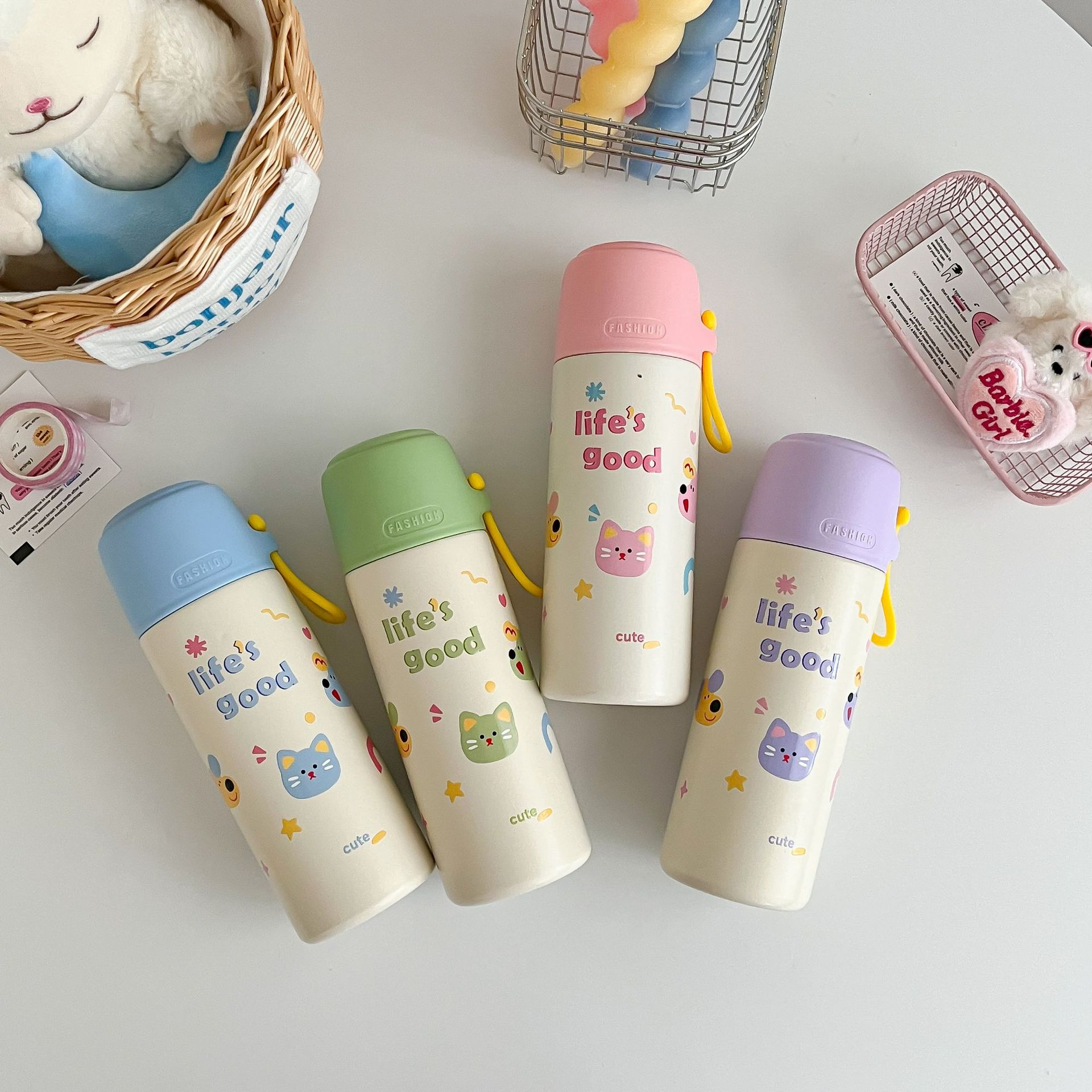 高颜值316便携手提卡通男女学生大容量泡茶水杯不锈钢真空保温杯