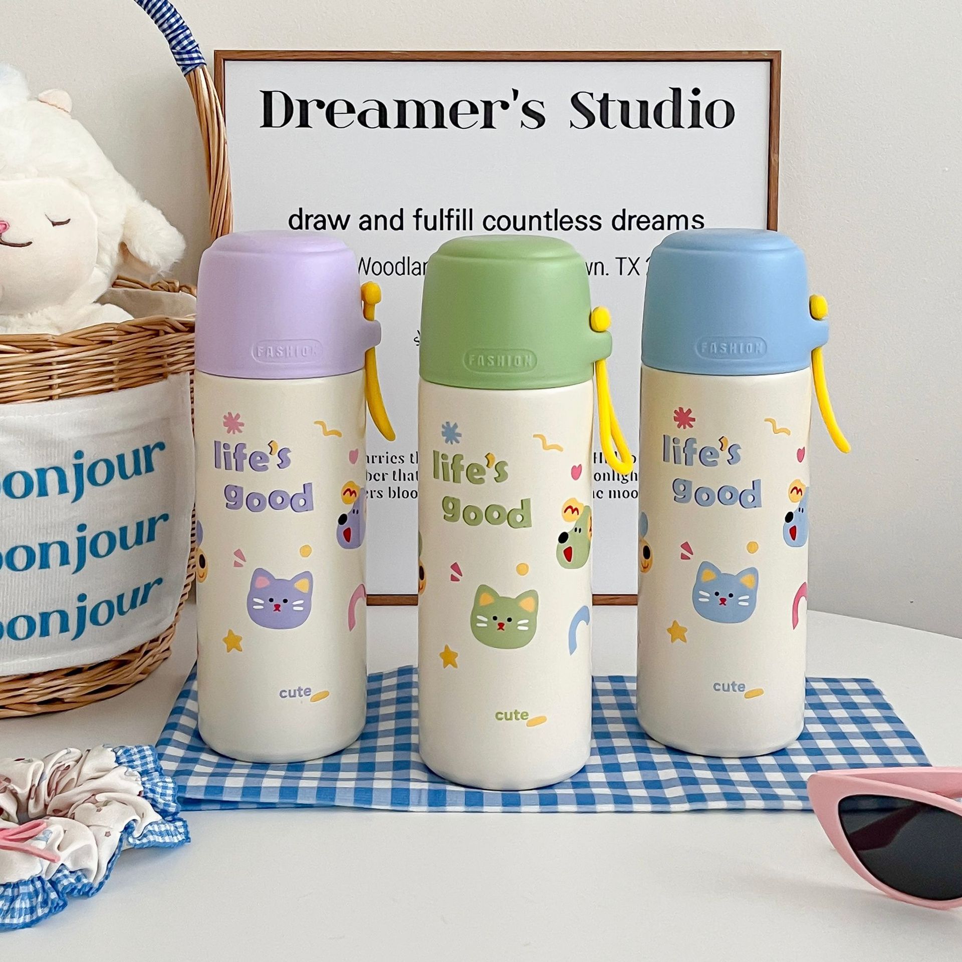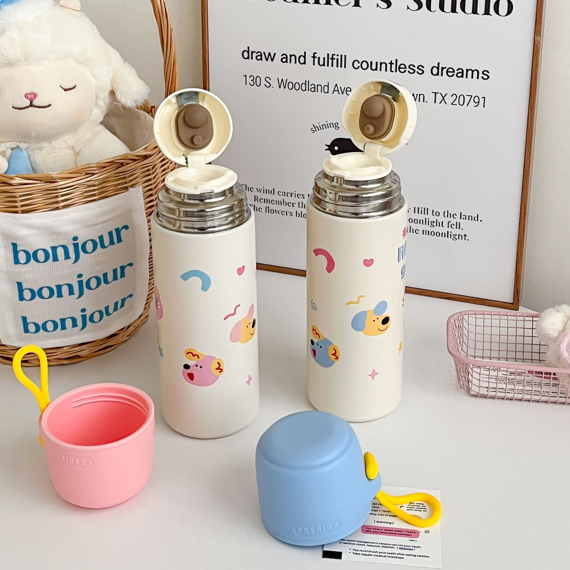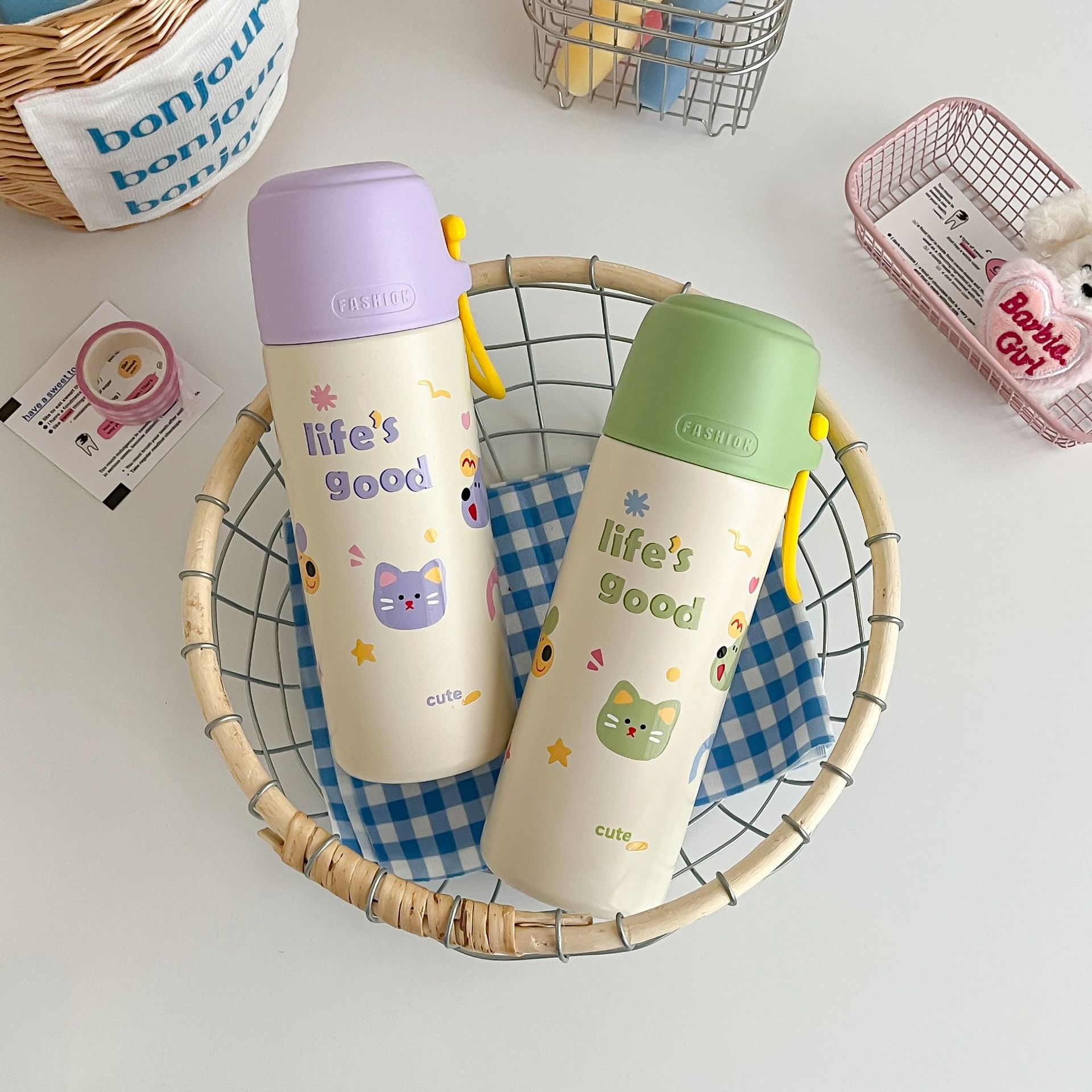 高颜值316便携手提卡通男女学生大容量泡茶水杯不锈钢真空保温杯