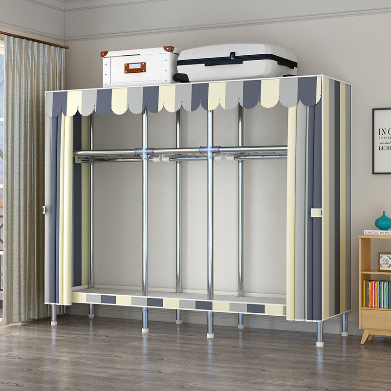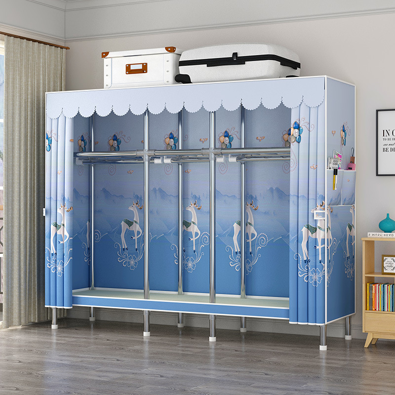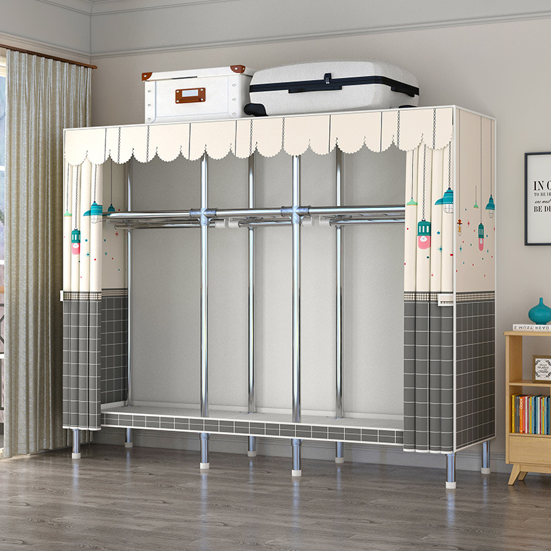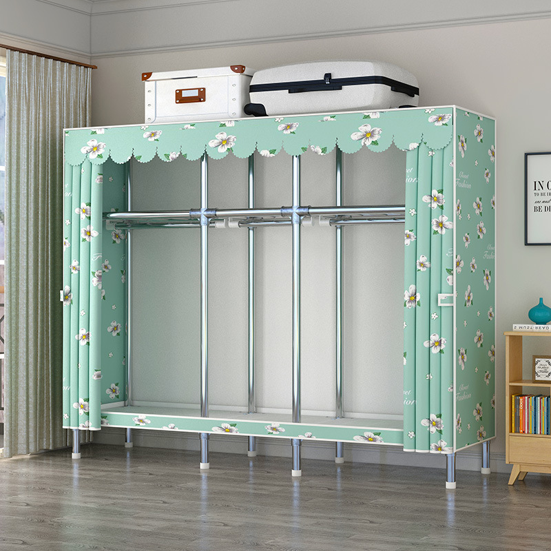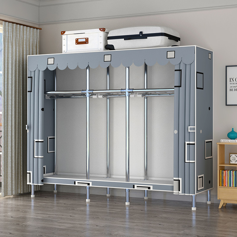 간단한 옷장 강관 두꺼운 강화 합금 인터페이스 천 옷장 간단한 경제적 인 조립 보관 옷장