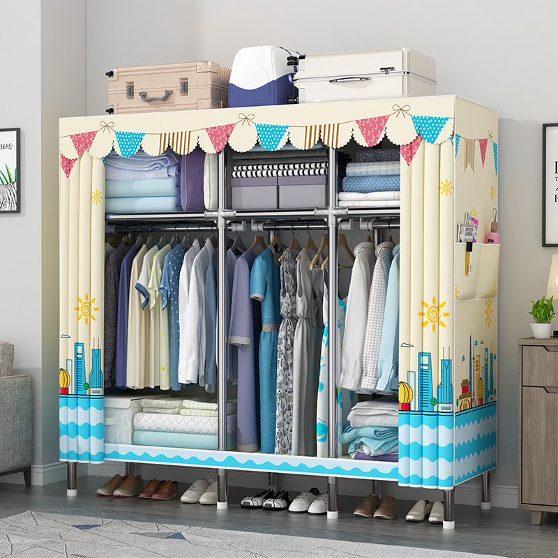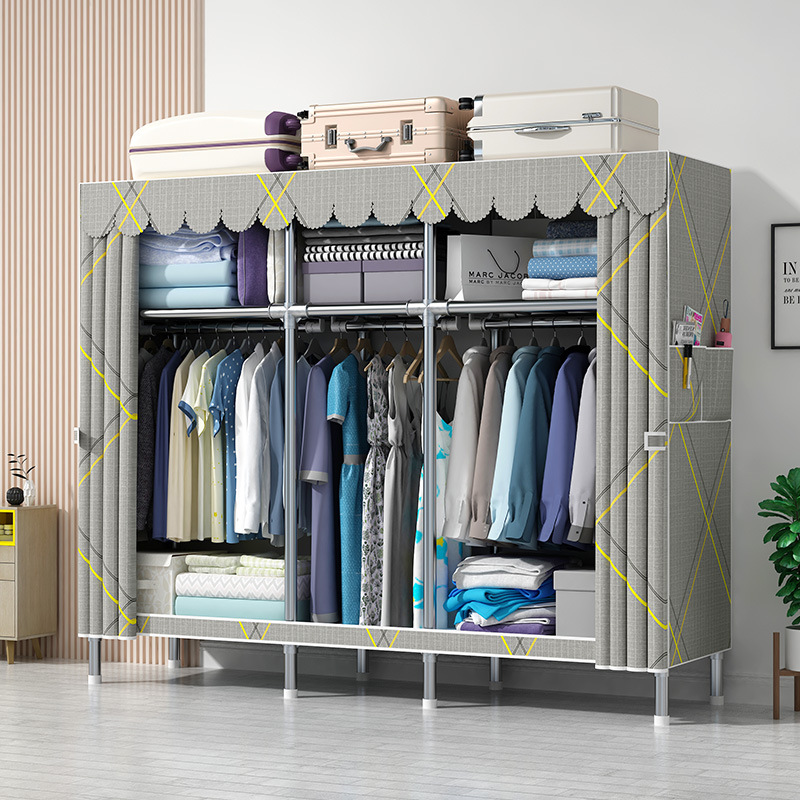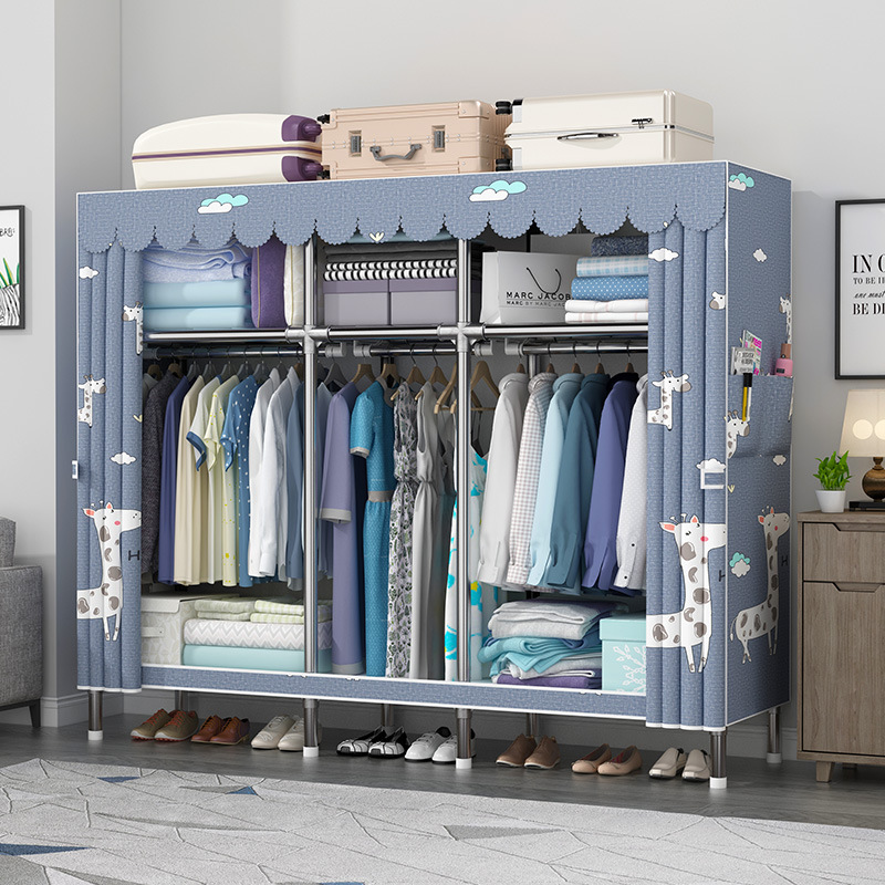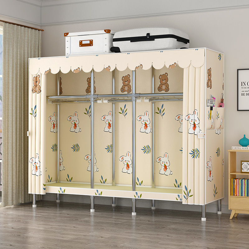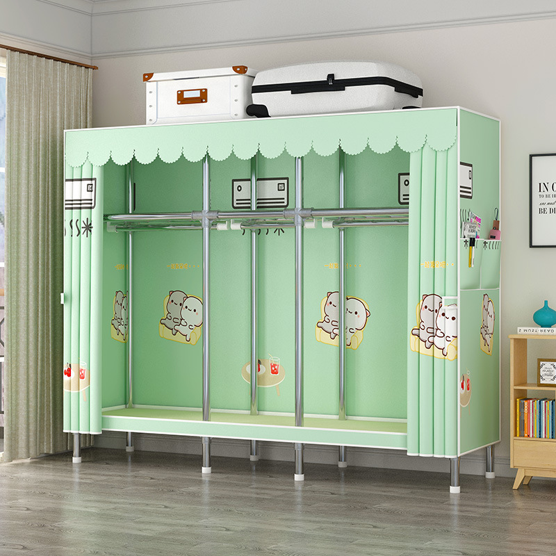 간단한 옷장 강관 두꺼운 강화 합금 인터페이스 천 옷장 간단한 경제적 인 조립 보관 옷장
