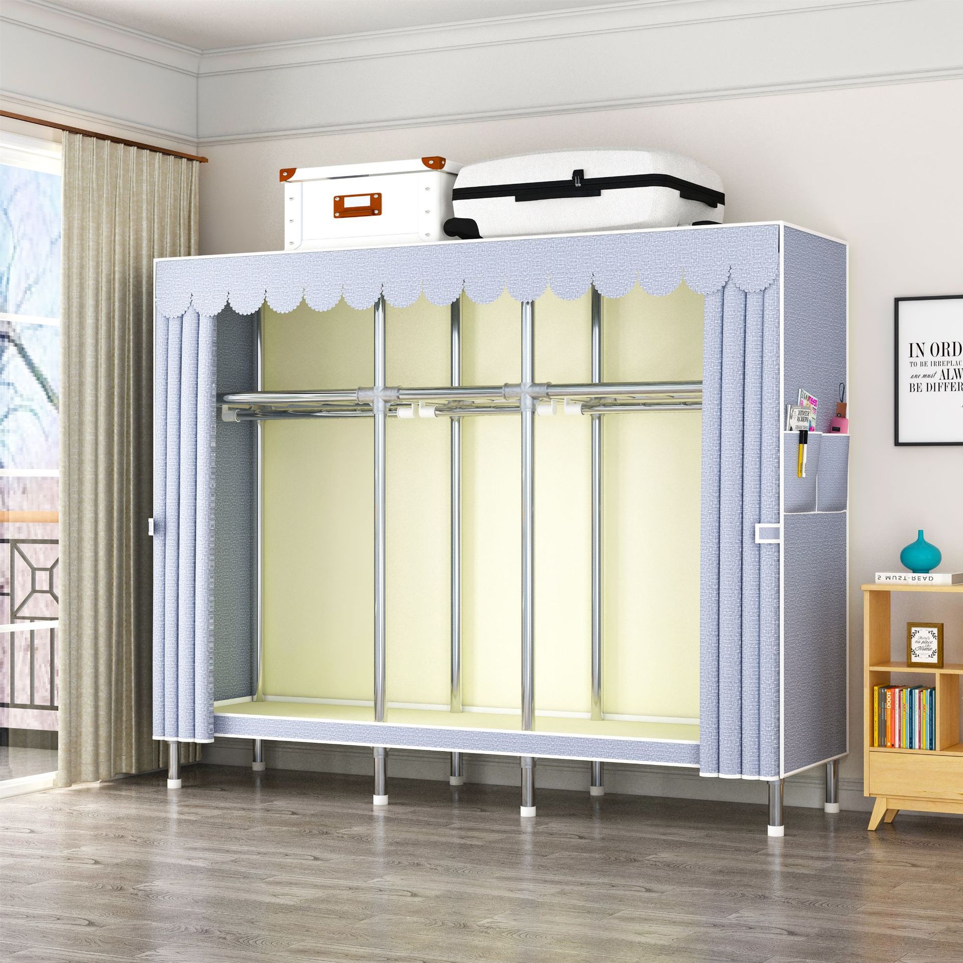 간단한 옷장 강관 두꺼운 강화 합금 인터페이스 천 옷장 간단한 경제적 인 조립 보관 옷장스토어 가기
