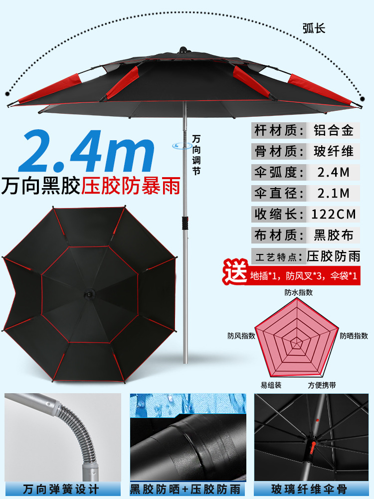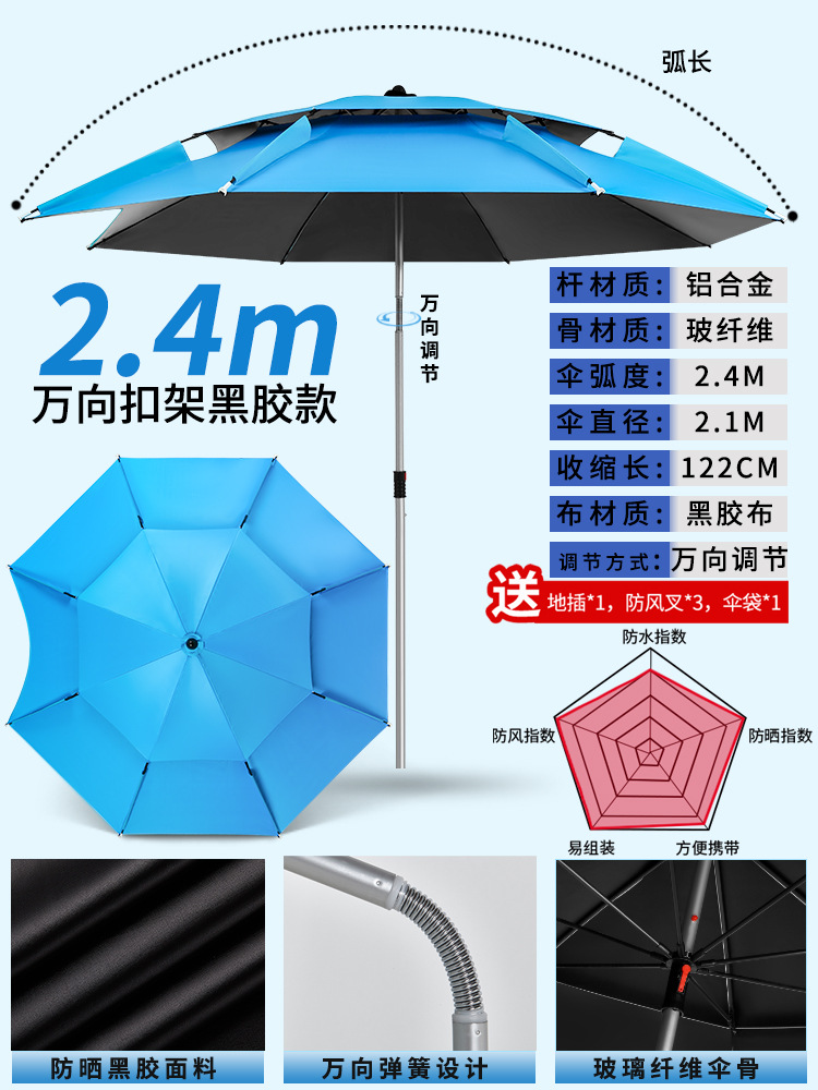 공장 도매 스테인레스 2.4m 방수 낚시 우산 이중 강화 유니버설 낚시 우산 야외 지팡이 우산스토어 가기