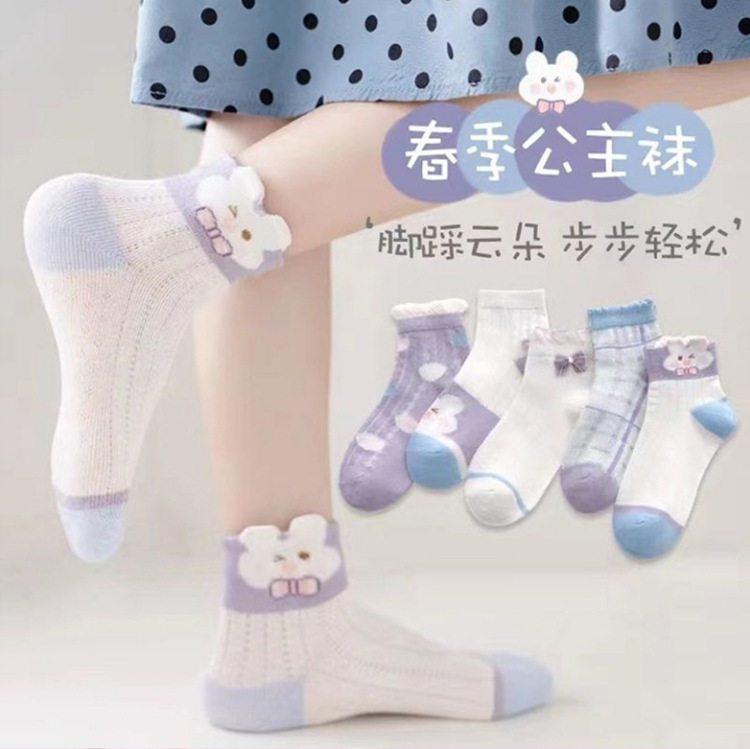 메쉬 면 양말 바닥 양말 토끼 레이스 양말 도매 아기 스타킹 봄과 여름 아기 양말 소녀 어린이 양말