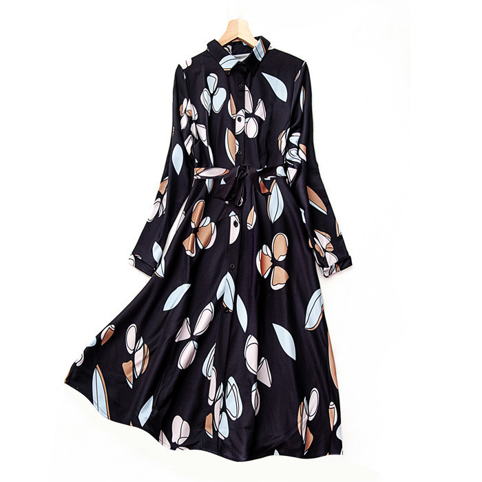 플러스 사이즈 여자의 원피스 여름 새로운 빈티지 모조 쉬폰 인쇄 셔츠 원피스 통통녀 허리 느슨한 고기 덮음 원피스스토어 가기