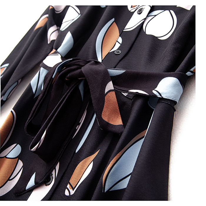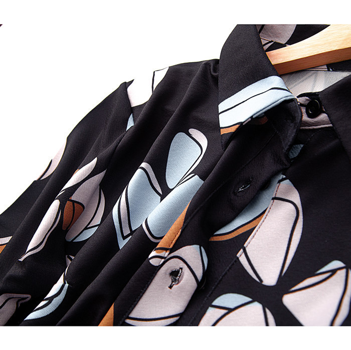 플러스 사이즈 여자의 원피스 여름 새로운 빈티지 모조 쉬폰 인쇄 셔츠 원피스 통통녀 허리 느슨한 고기 덮음 원피스