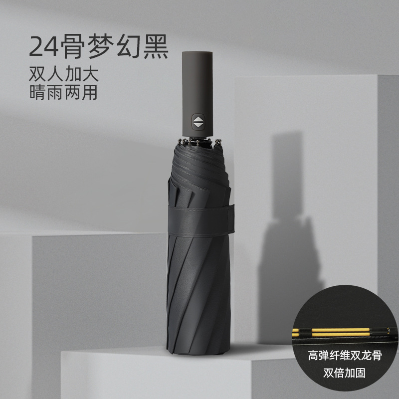 • 확대 더블 24 본 자동 써니 우산-드림 블랙 (더블 드래곤 본)