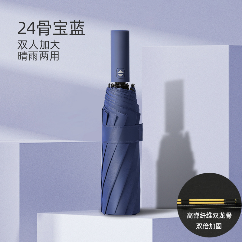 • 확대 더블 24 본 자동 써니 우산-로얄 블루 (더블 드래곤 본)