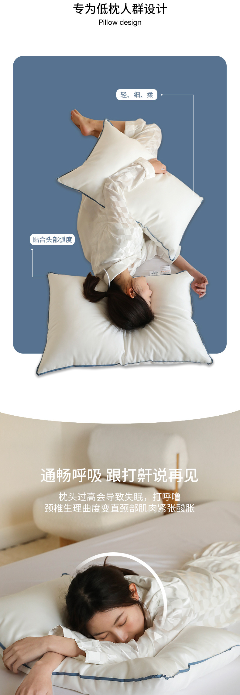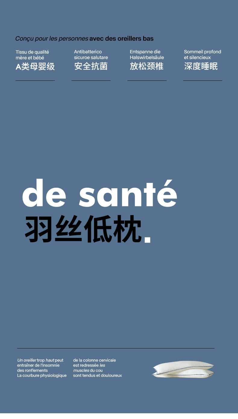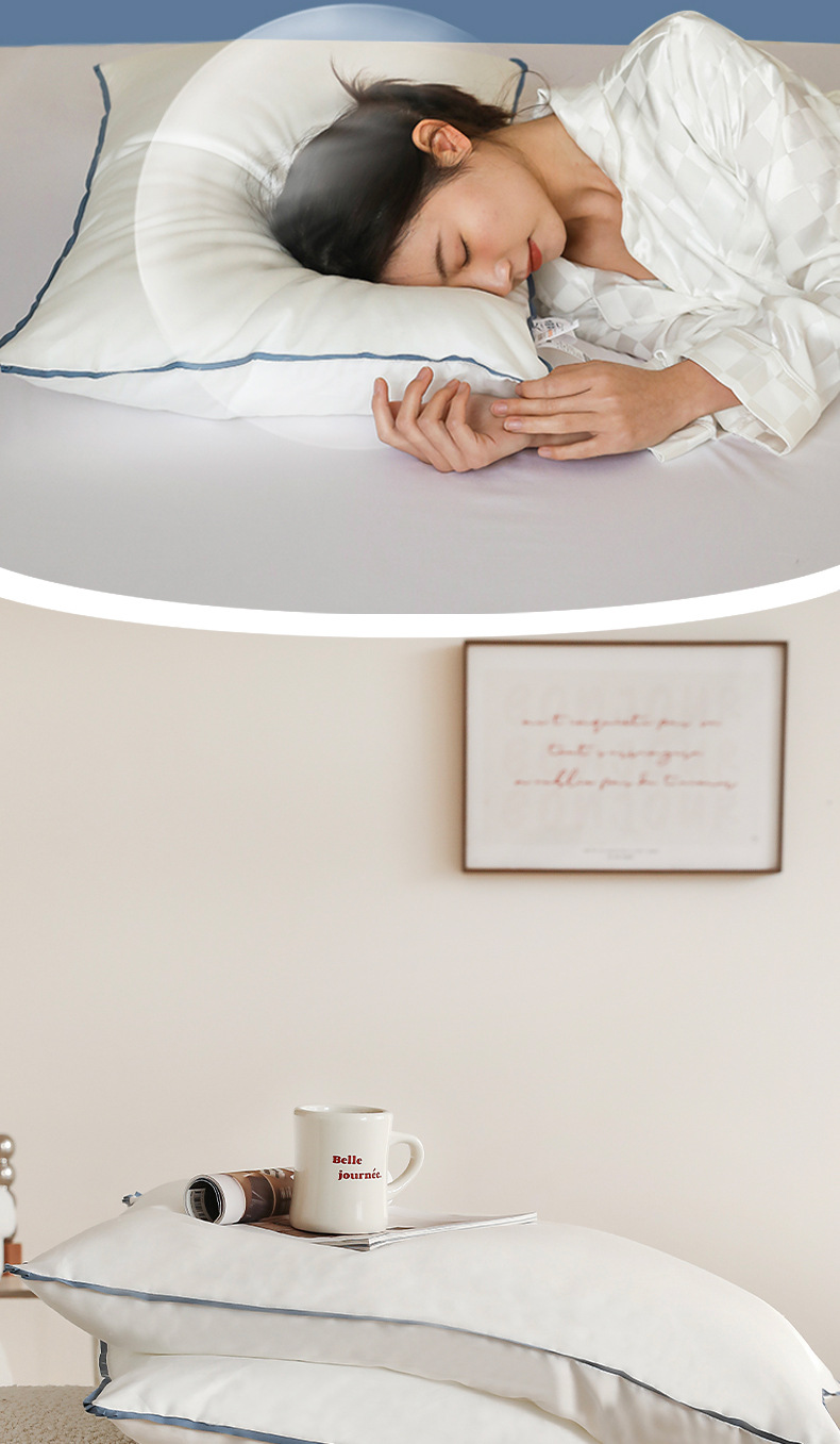 • 깃털 실크 로우 베개 (블루 에지)