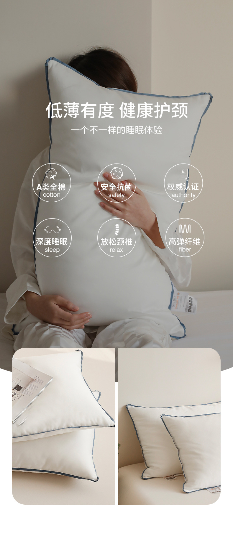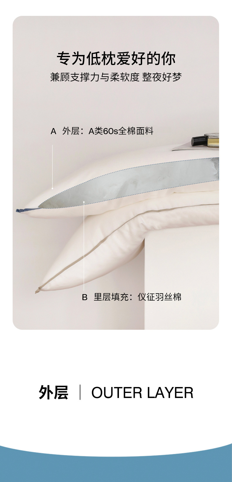 뉴 클래스 A 60 면 깃털 실크 코튼 로우 베개 어린이 섬유 베개 호텔 단색 베개 제조 업체 도매