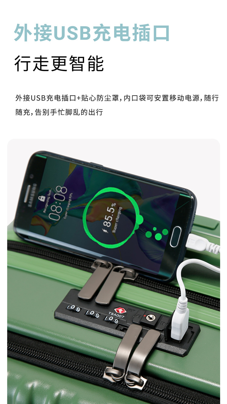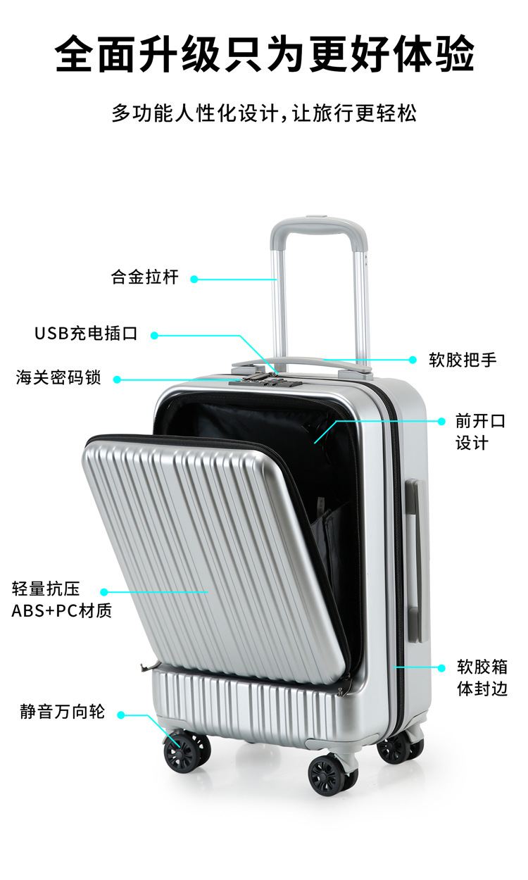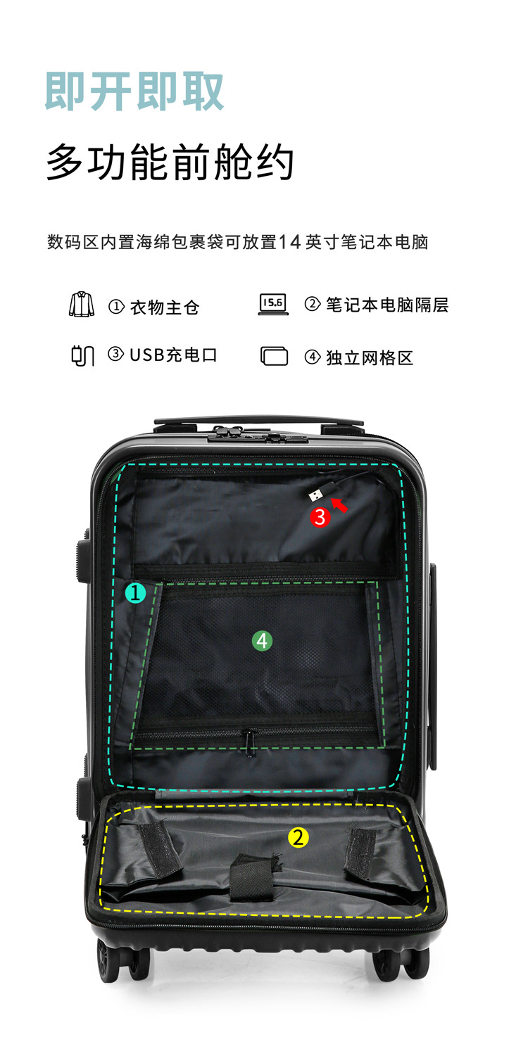 전면 오픈 커버 20 인치 보딩 박스 USB 충전 수하물 비즈니스 범용 휠 트롤리 케이스 남녀공용 지퍼 박스스토어 가기
