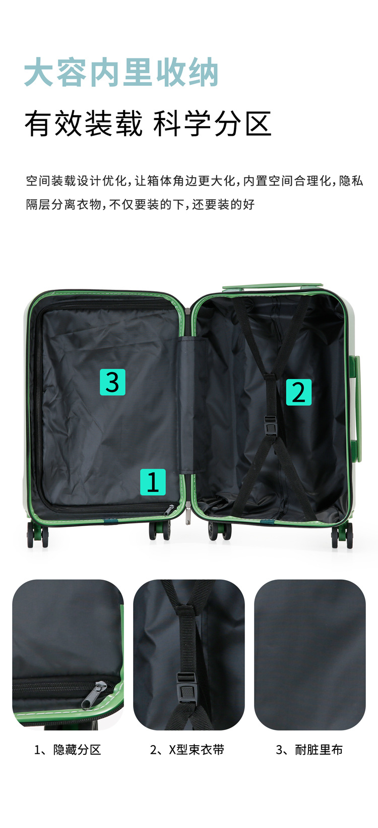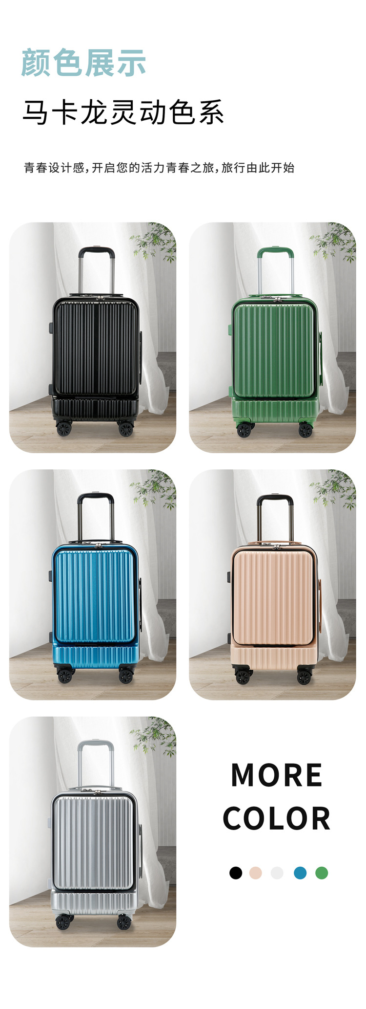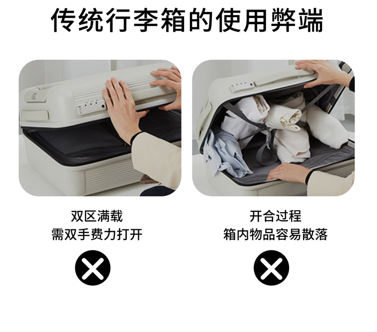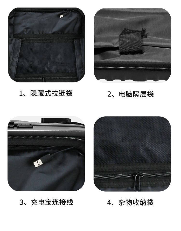 전면 오픈 커버 20 인치 보딩 박스 USB 충전 수하물 비즈니스 범용 휠 트롤리 케이스 남녀공용 지퍼 박스스토어 가기
