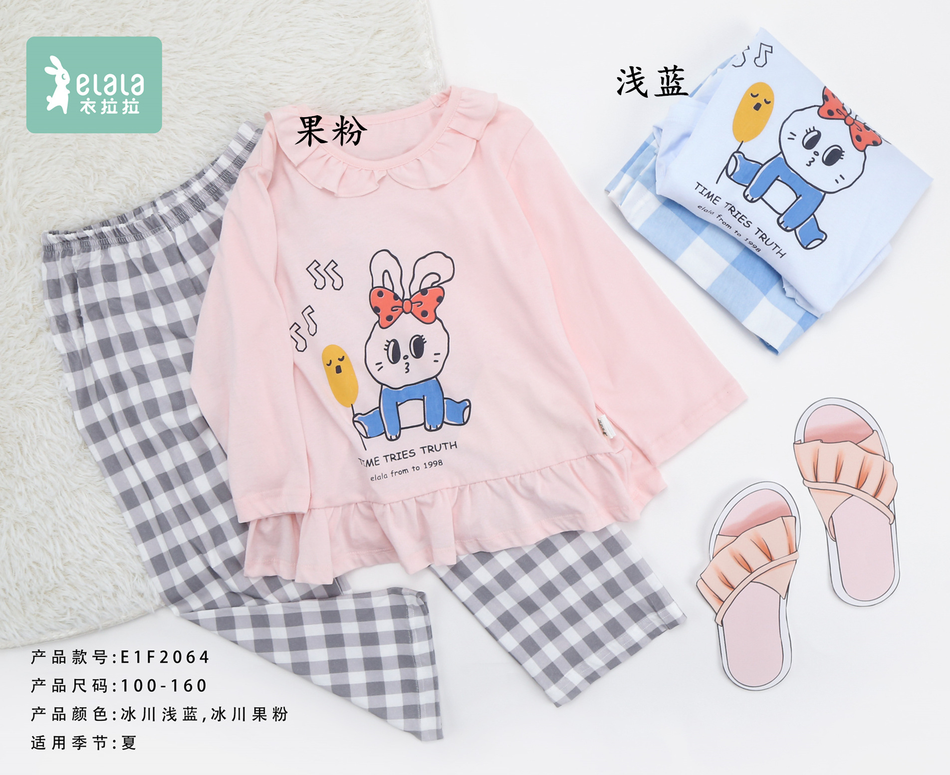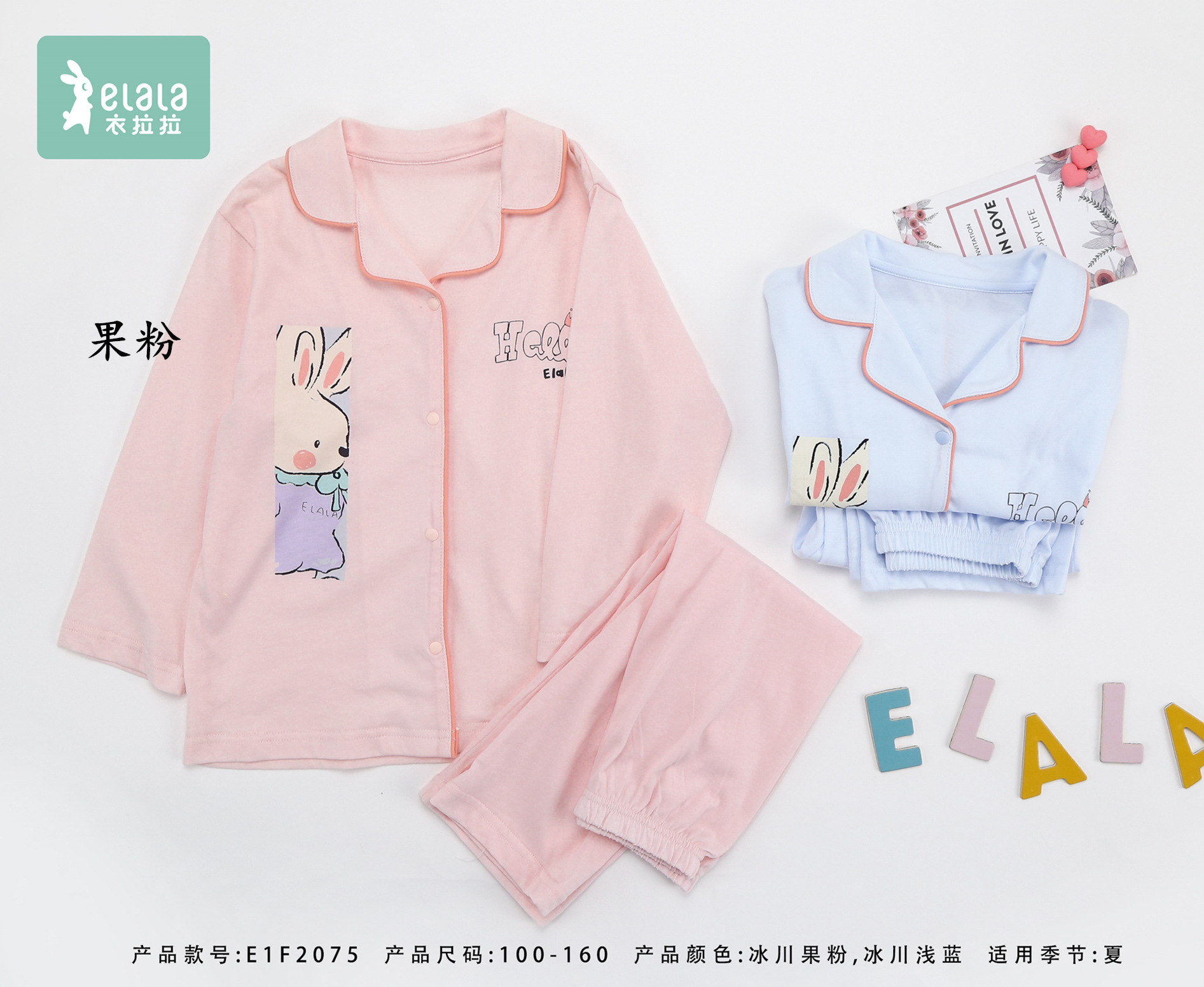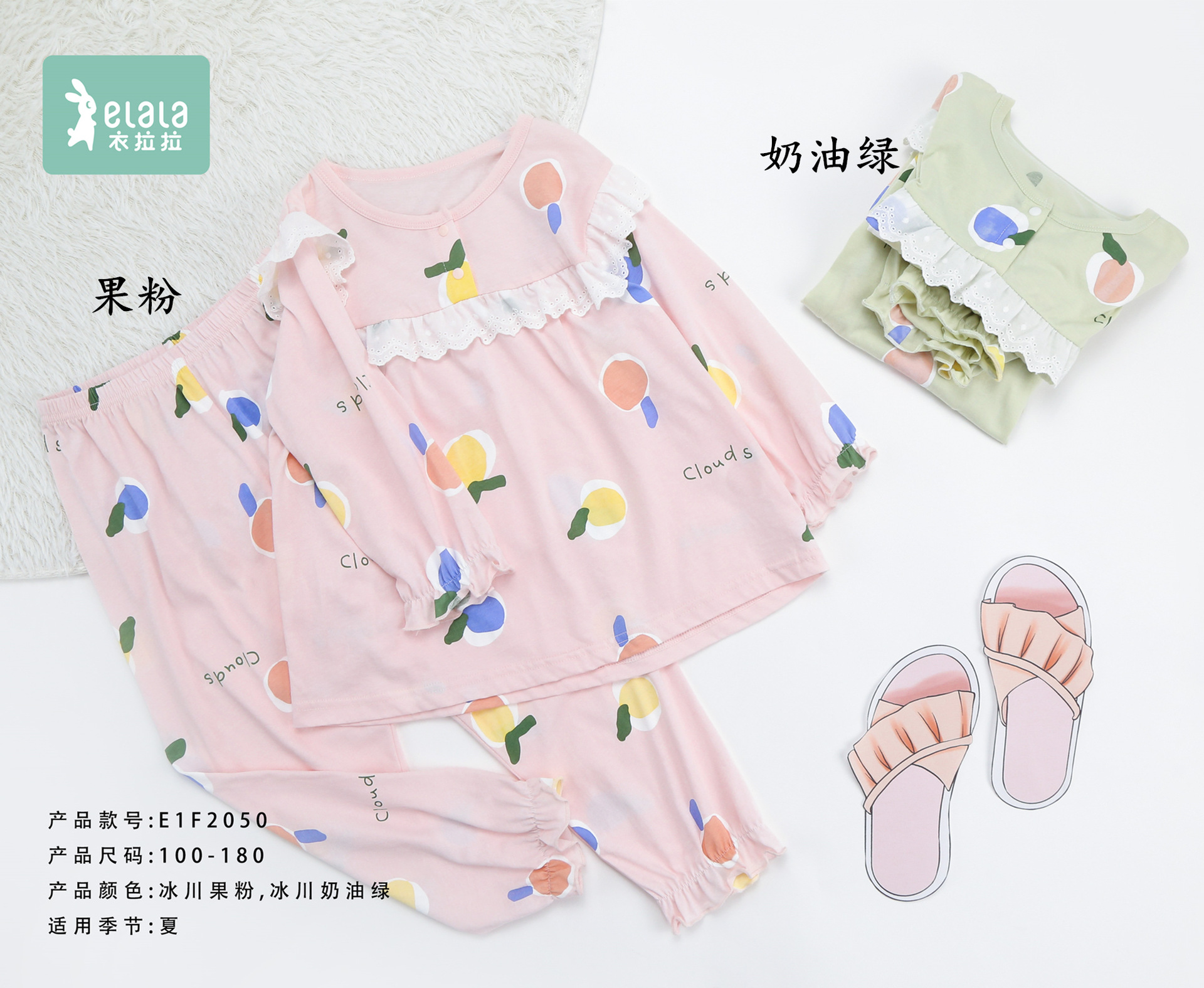 옷 Lala 22 여름 소녀 면 긴 소매 잠옷 세트 어린이 봄과 여름 얇은 집 옷 부드러운 아이들스토어 가기