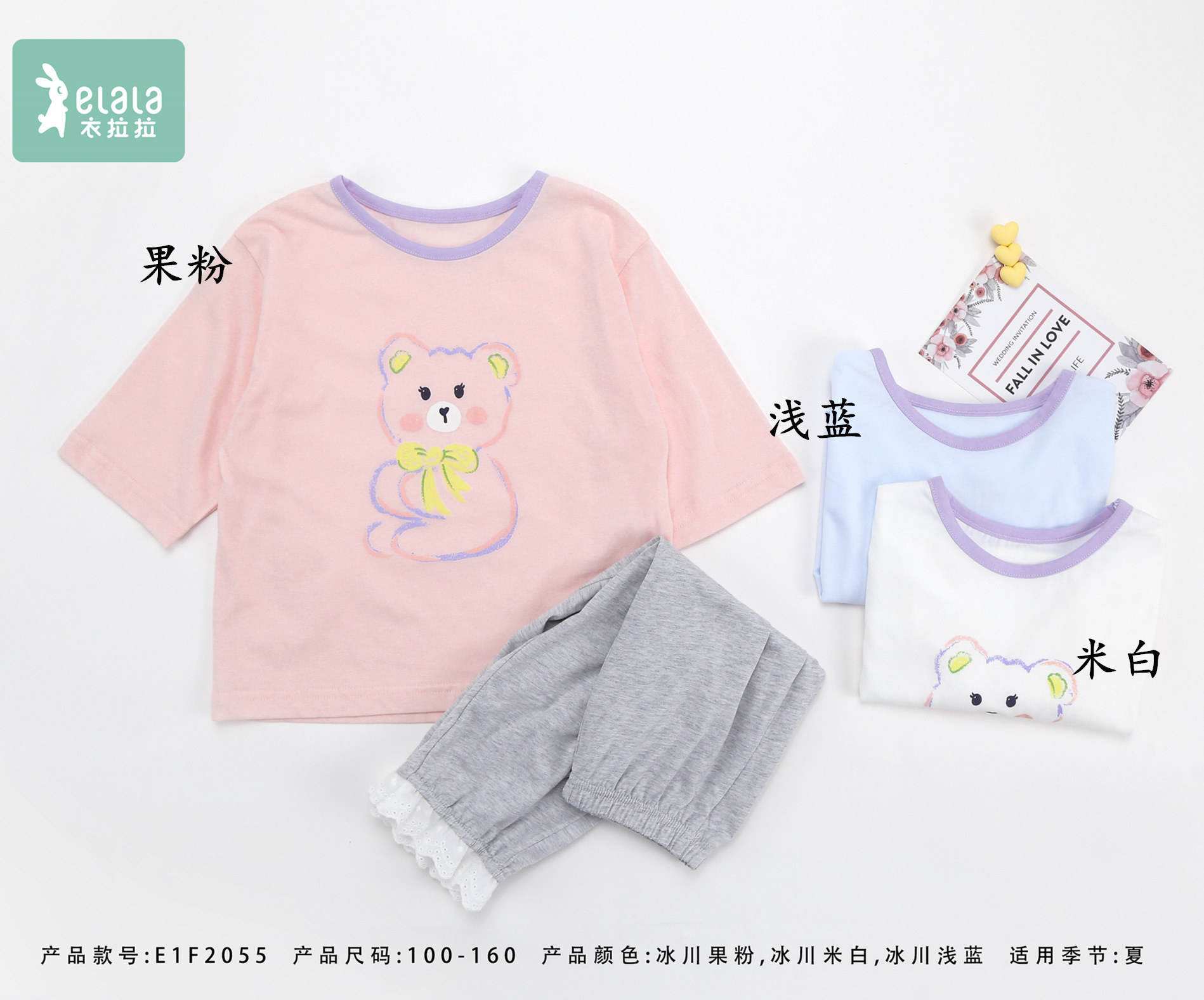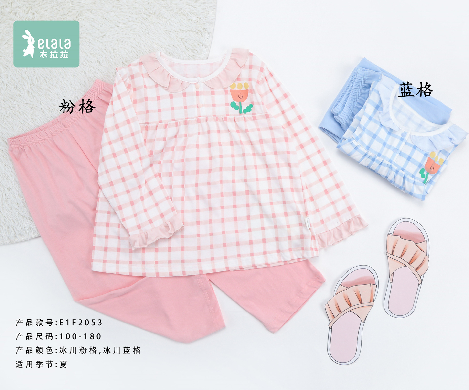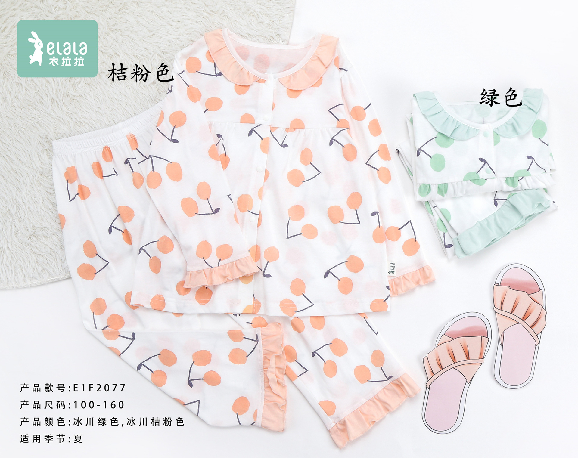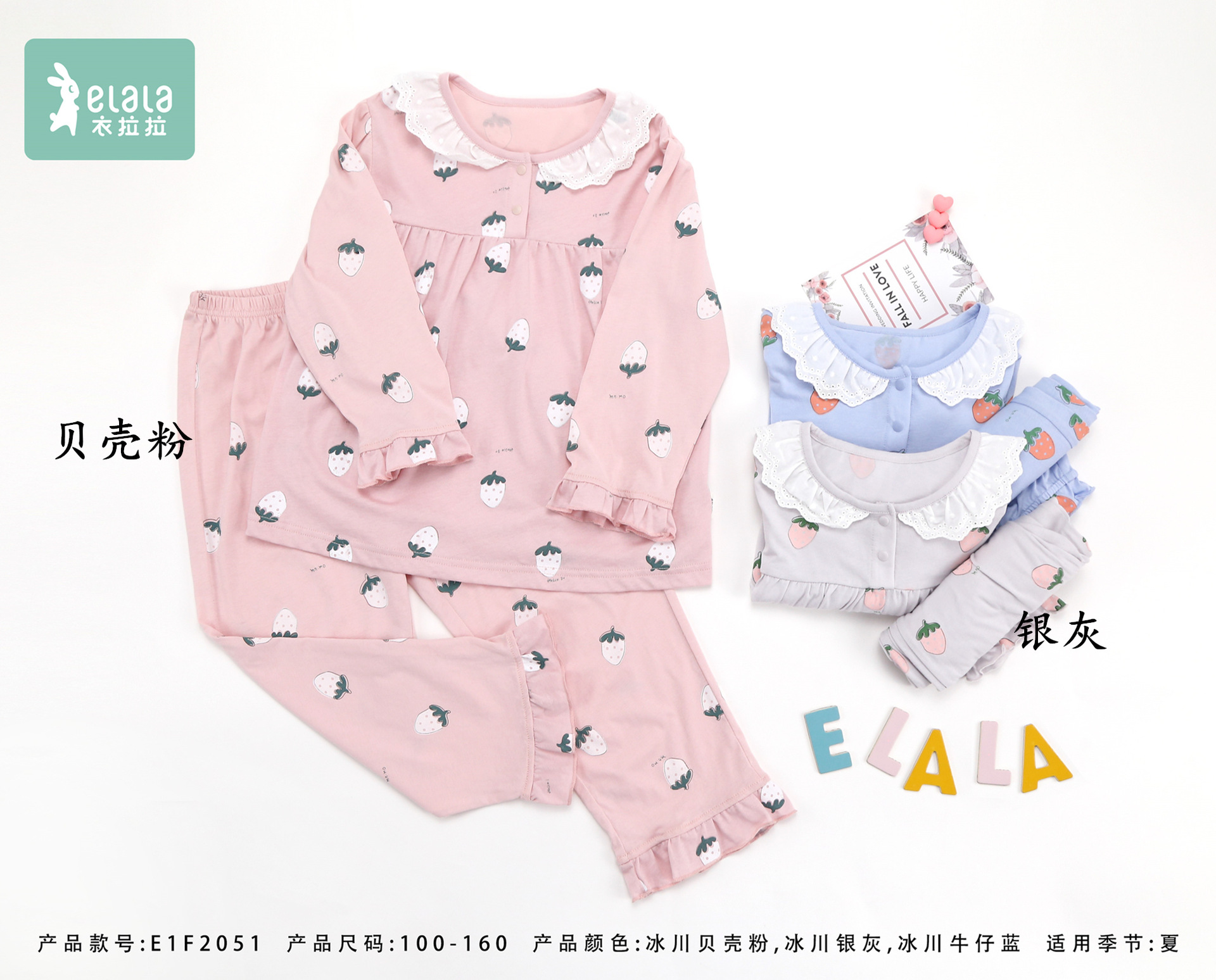 옷 Lala 22 여름 소녀 면 긴 소매 잠옷 세트 어린이 봄과 여름 얇은 집 옷 부드러운 아이들스토어 가기