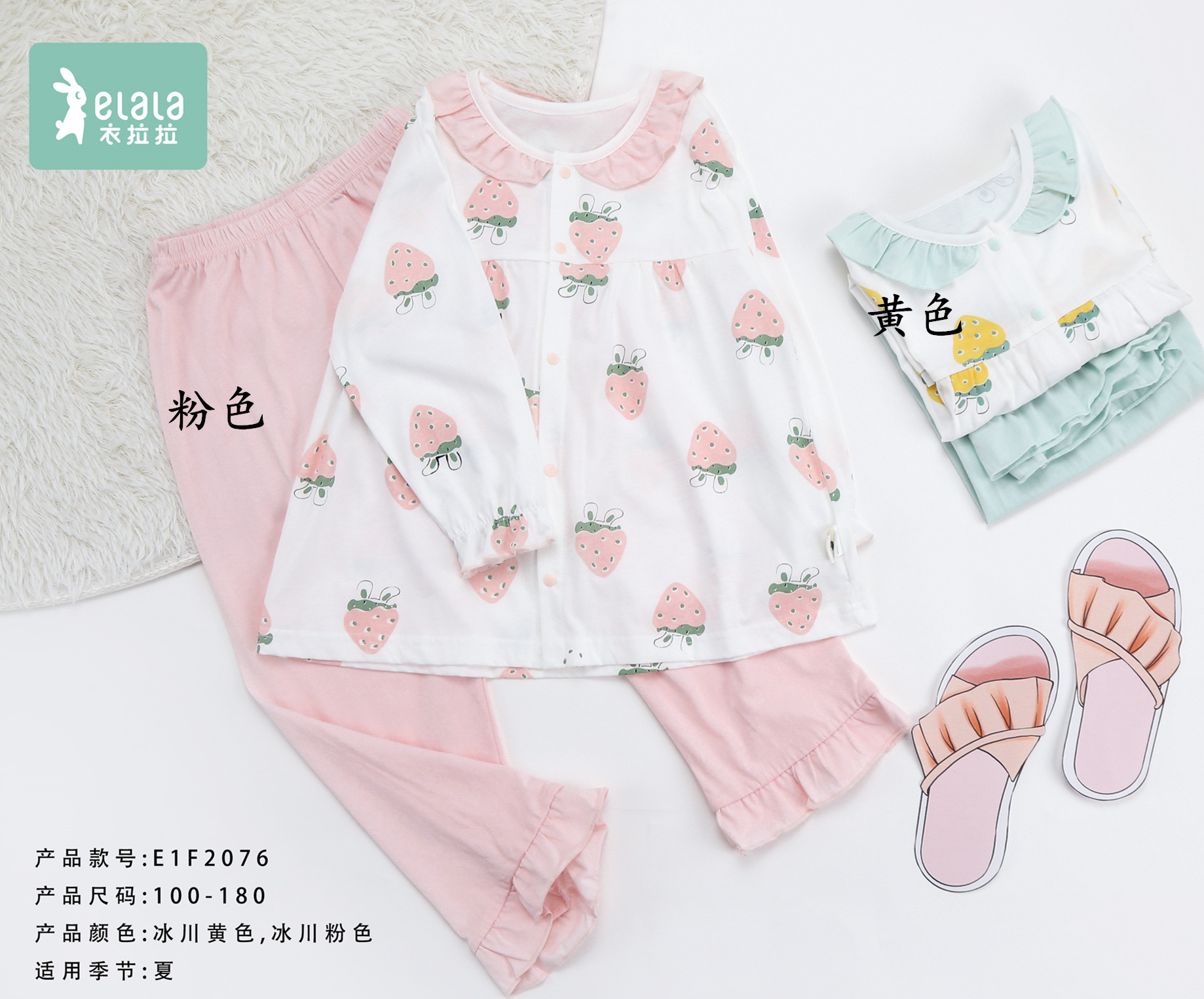 옷 Lala 22 여름 소녀 면 긴 소매 잠옷 세트 어린이 봄과 여름 얇은 집 옷 부드러운 아이들