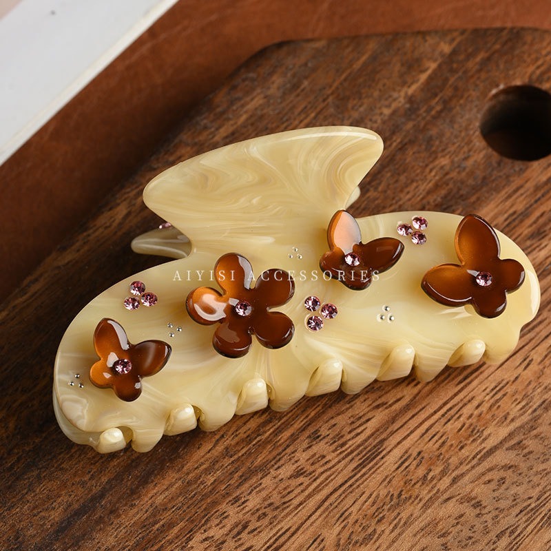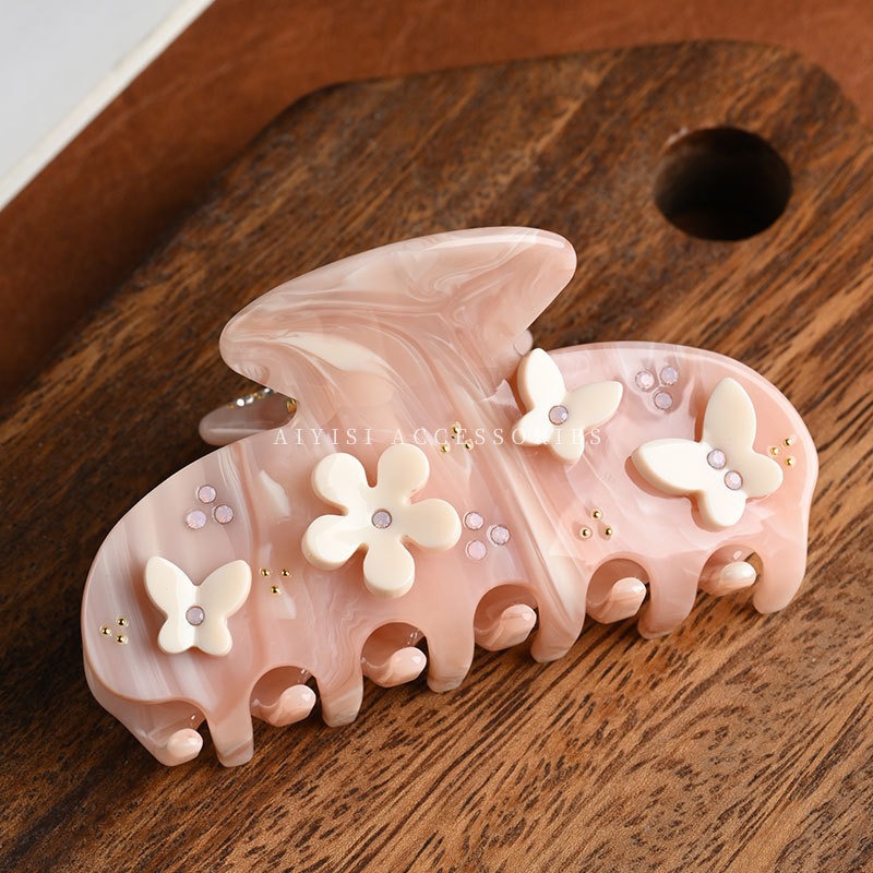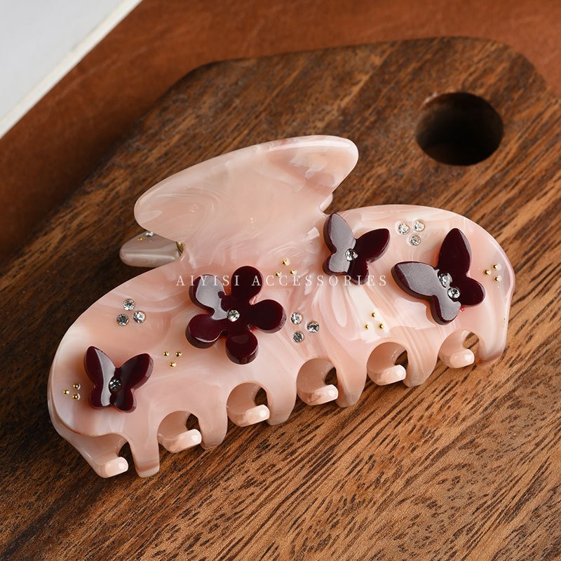 한국 스타일의 다이아몬드 장식 아세테이트 헤어핀, 나비꽃 아세테이트 집게핀, 독특한 디자인의 헤어핀, 샤크클립 헤어 액세서리