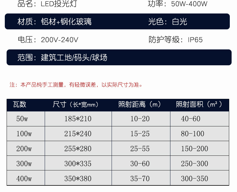 브록 LED 글로리 강력 투광등 방수 야외 조명등 고출력 200W 투광등