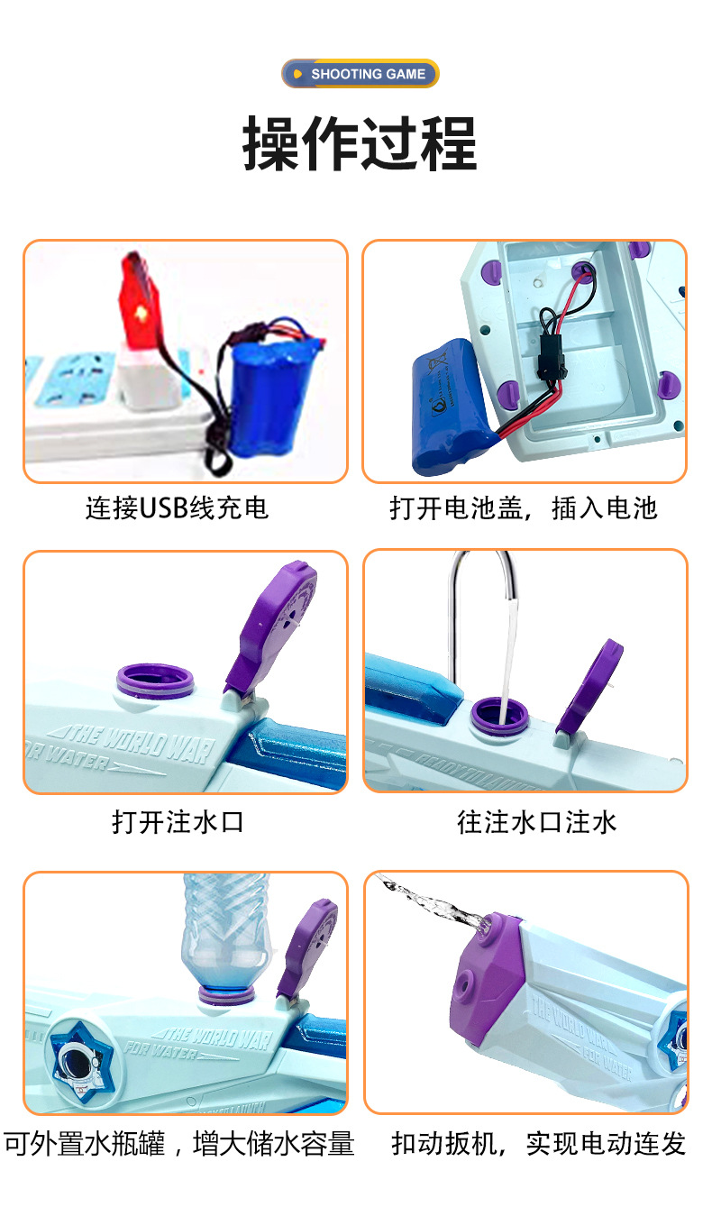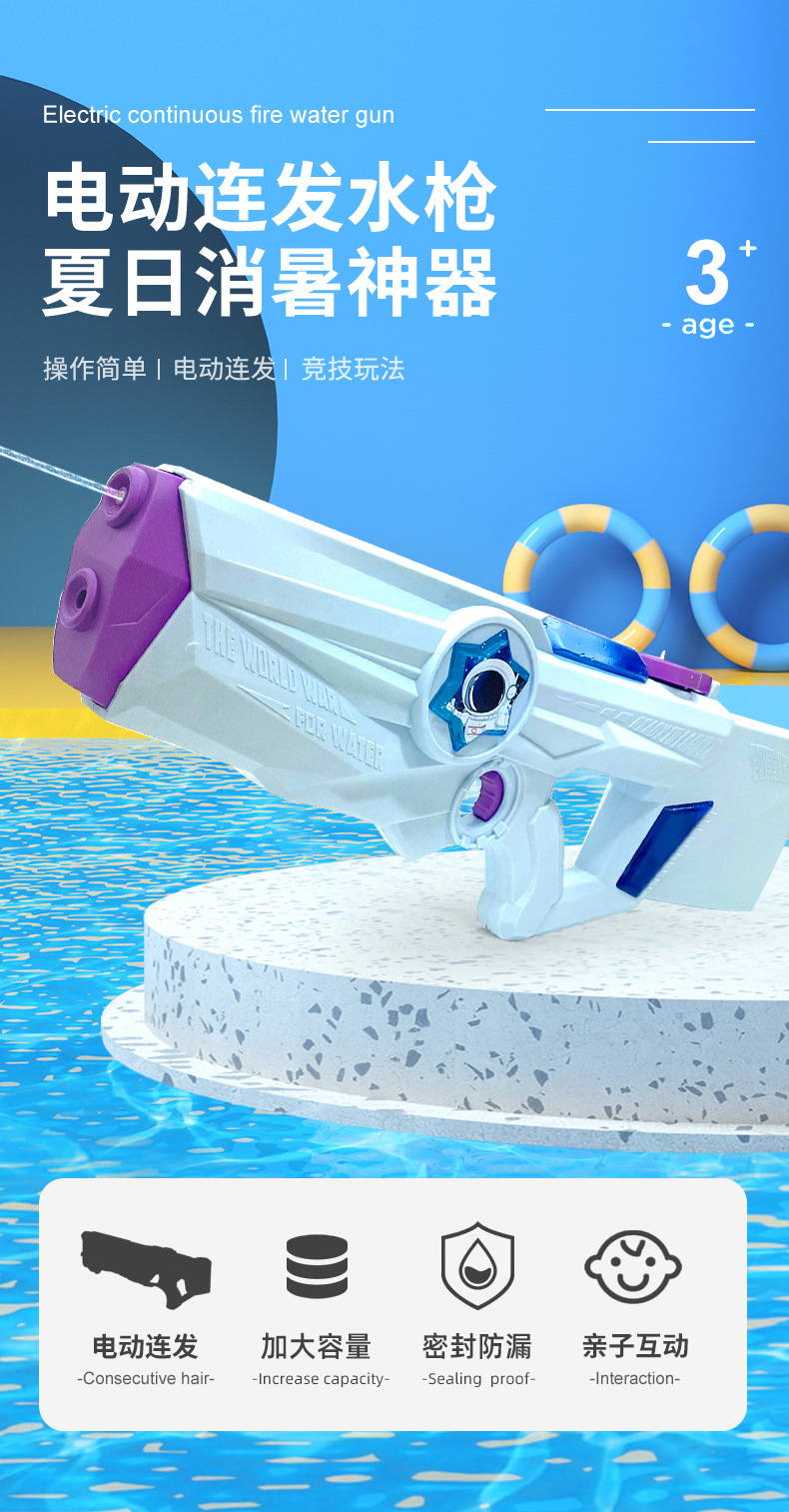 2025년 신형 자동 흡수 전동 연사 물총 대용량 해변 수영장 어린이 물놀이 장난감