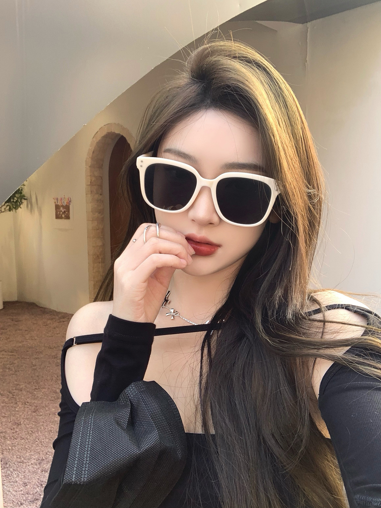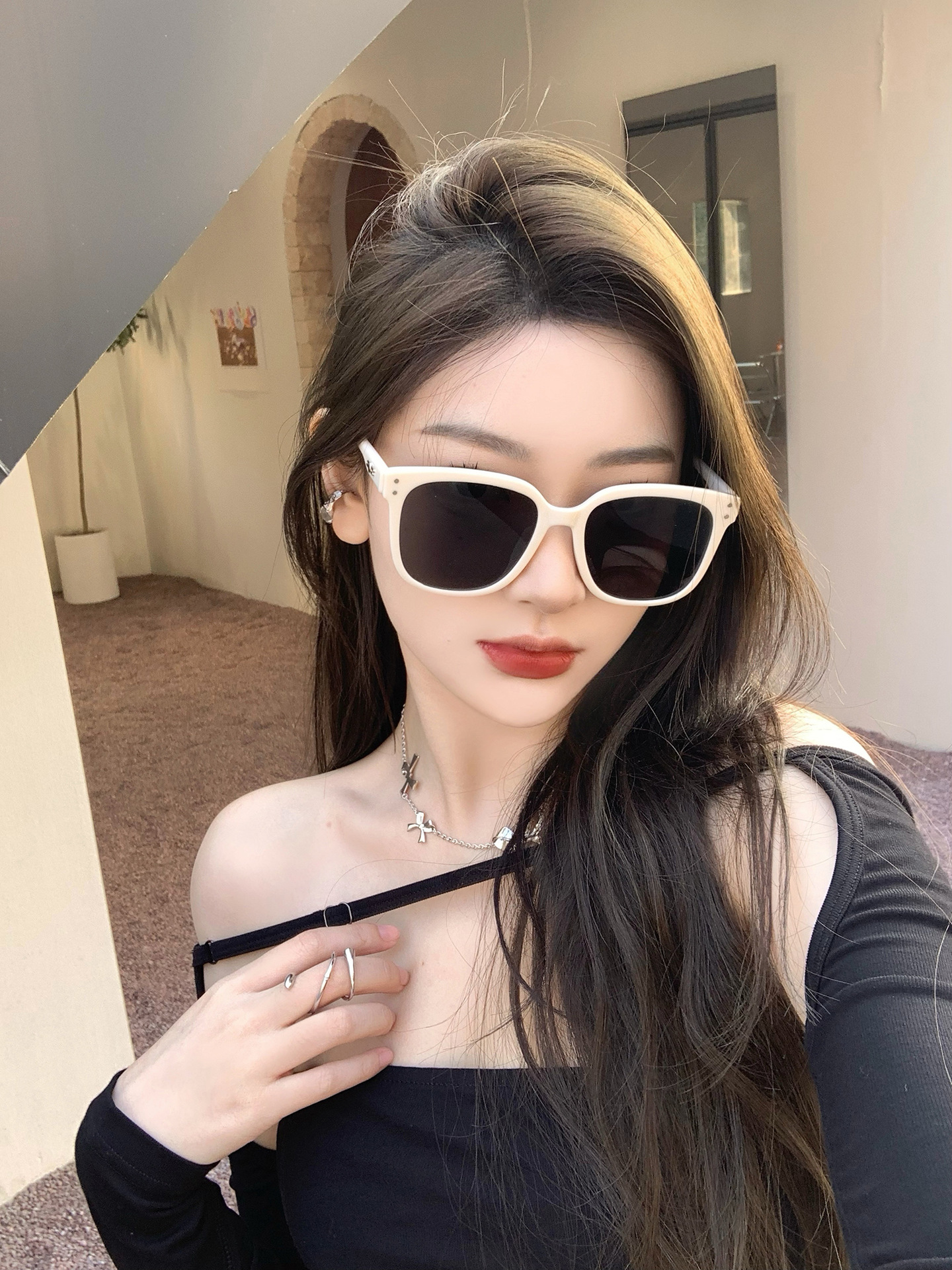 선글라스 여성용 하이 엔드 센스 Instagram 스타일 빅 페이스 슬리밍 선글라스 여성용 여름 2022 새로운 자외선 차단 하이 엔드 센스 틈새스토어 가기