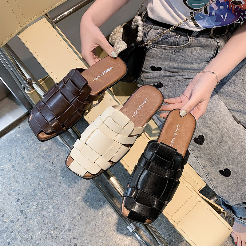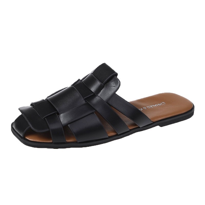 우아한 Baotou 하프 슬리퍼 여성의 유행 겉옷 2021 봄 새로운 in 플랫 힐 트렌디 중공 뮬러 신발 여성용