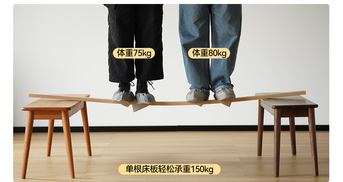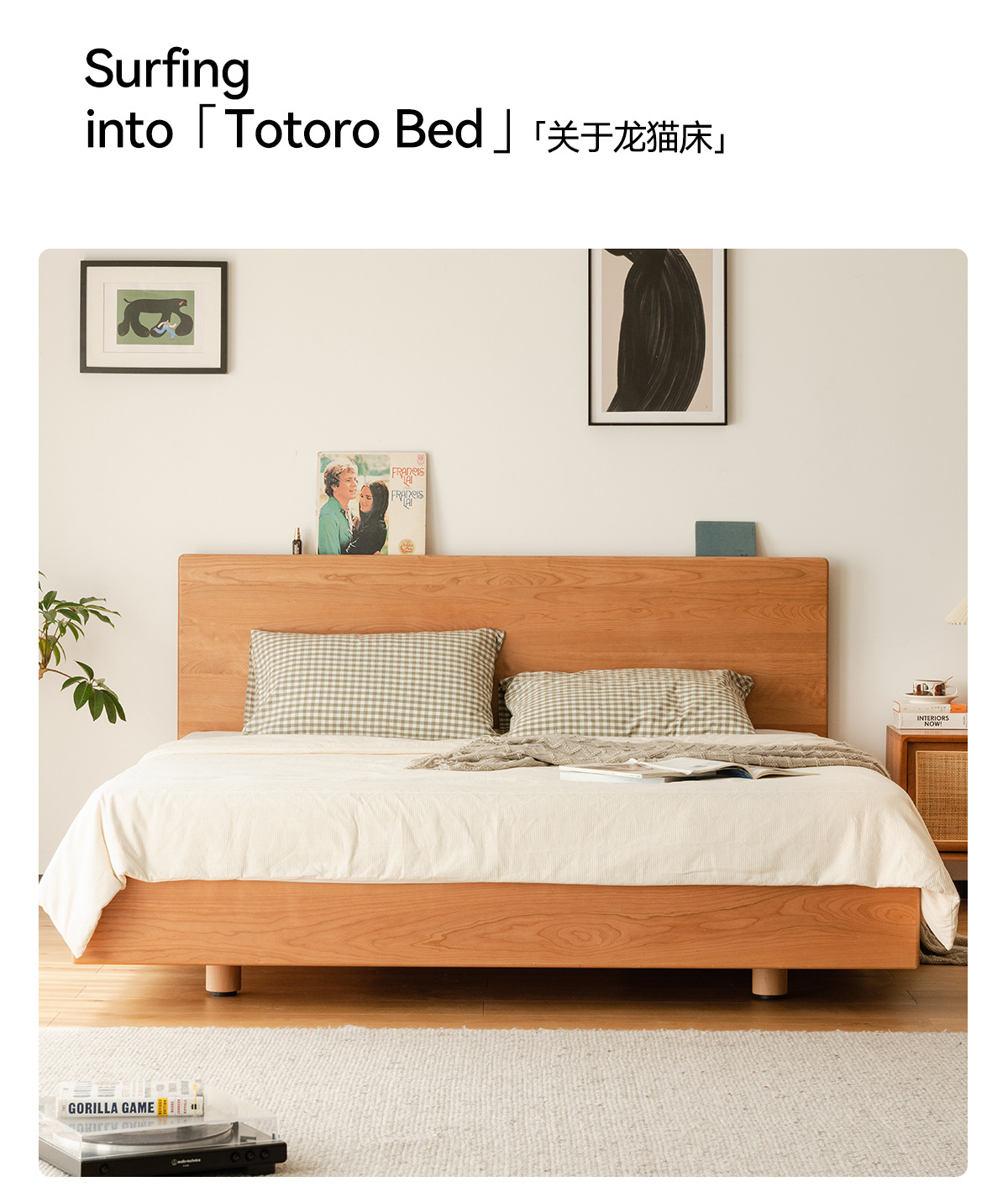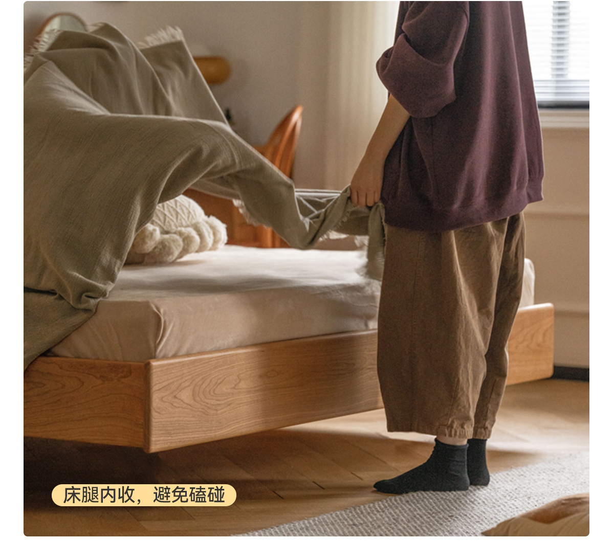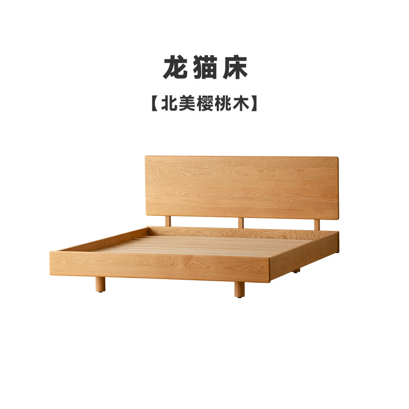 홍양 가구 북유럽 단단한 나무 침대 심플 1.5 m 싱글 체리 우드 일본 통나무 1.8 m 더블 서스펜션 침대스토어 가기