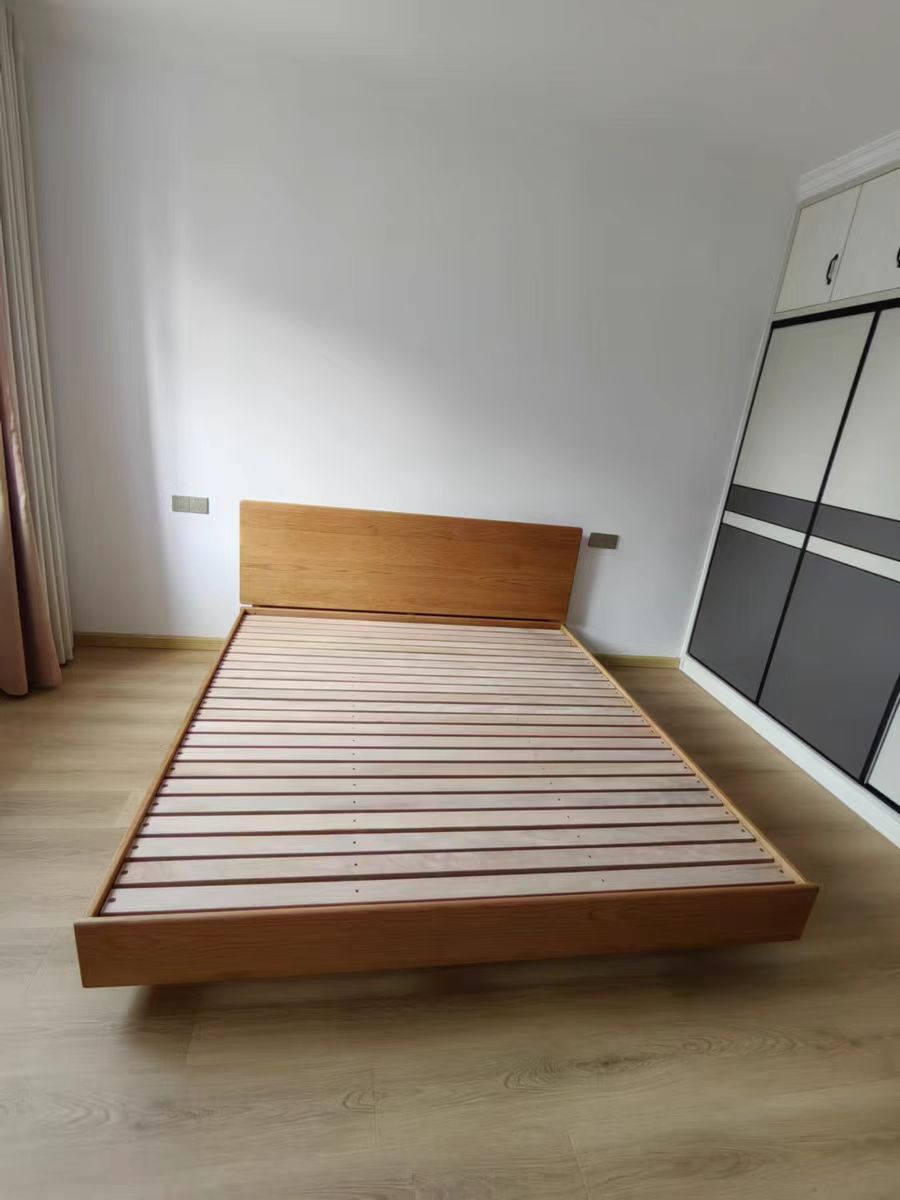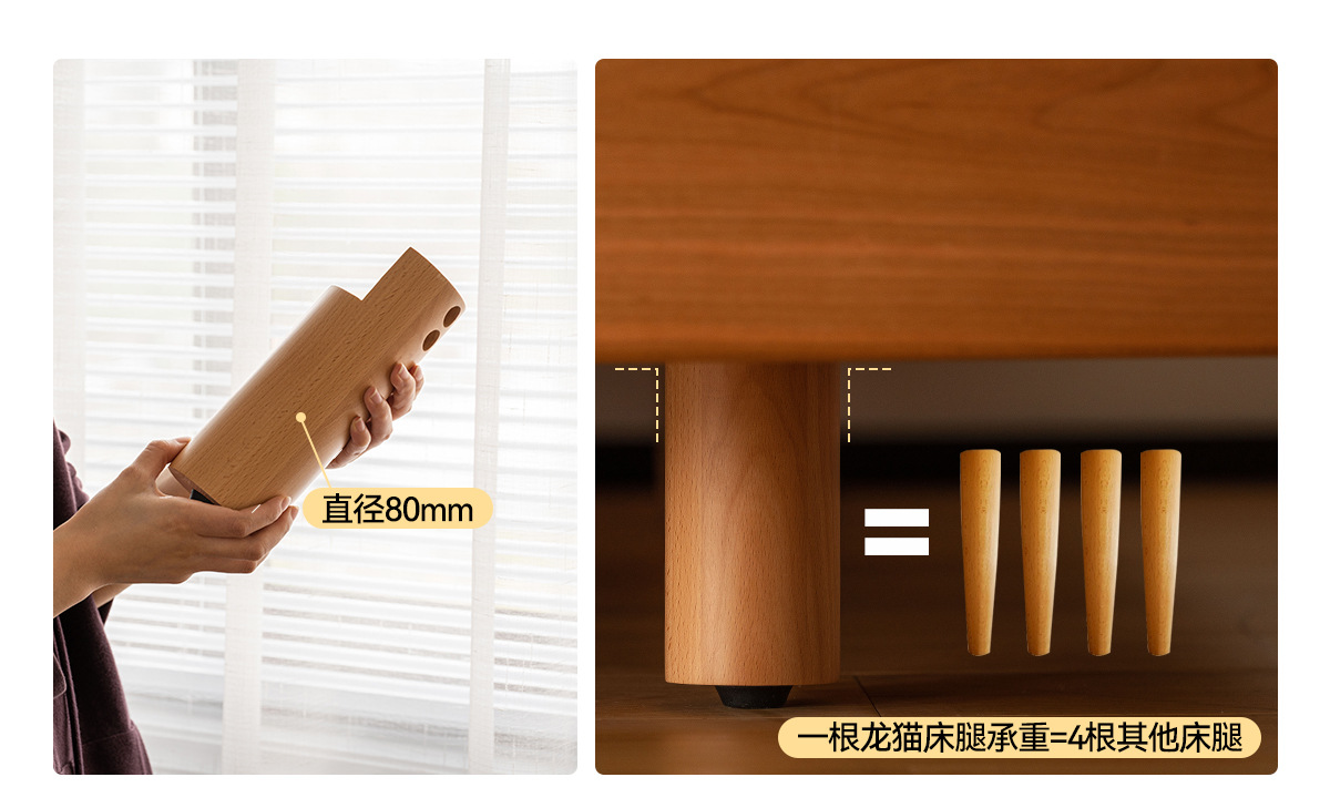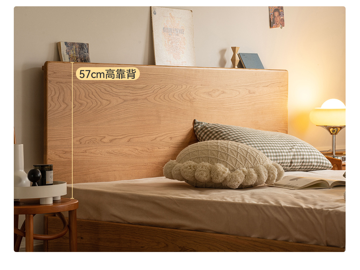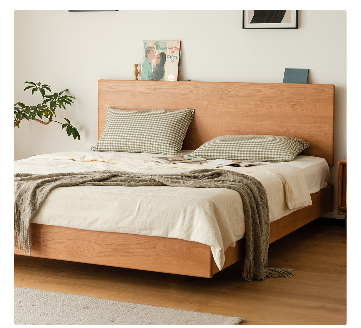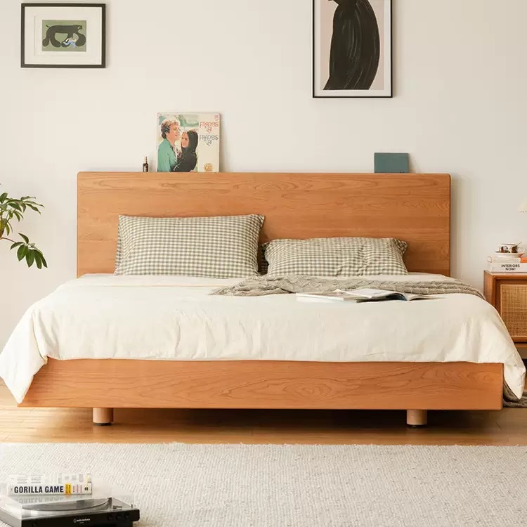 홍양 가구 북유럽 단단한 나무 침대 심플 1.5 m 싱글 체리 우드 일본 통나무 1.8 m 더블 서스펜션 침대